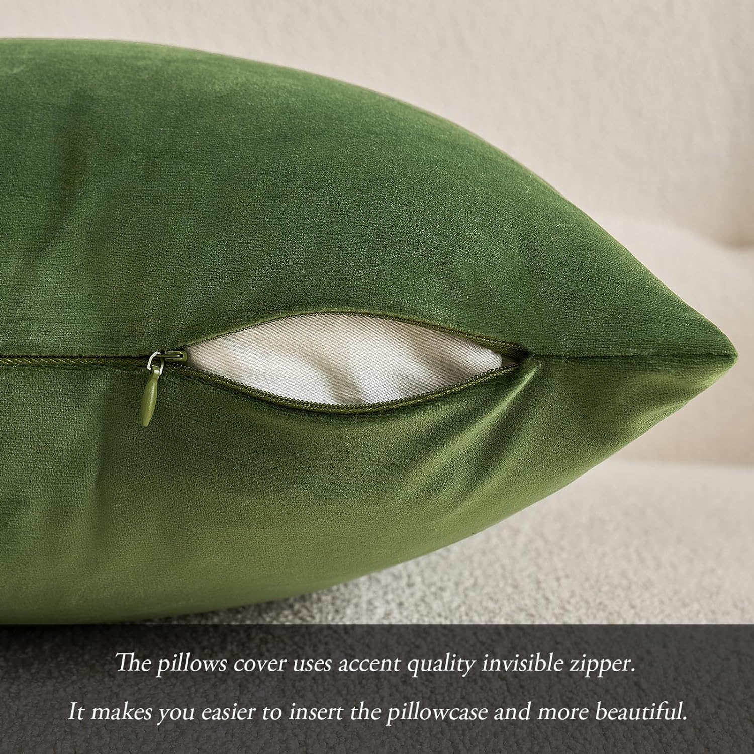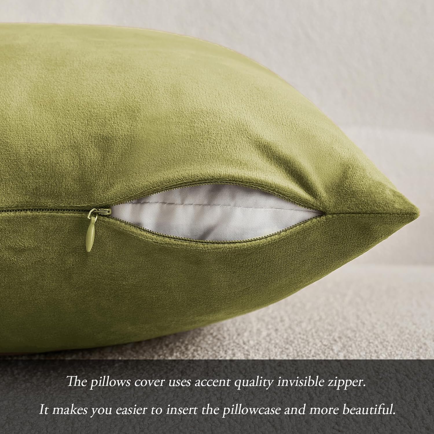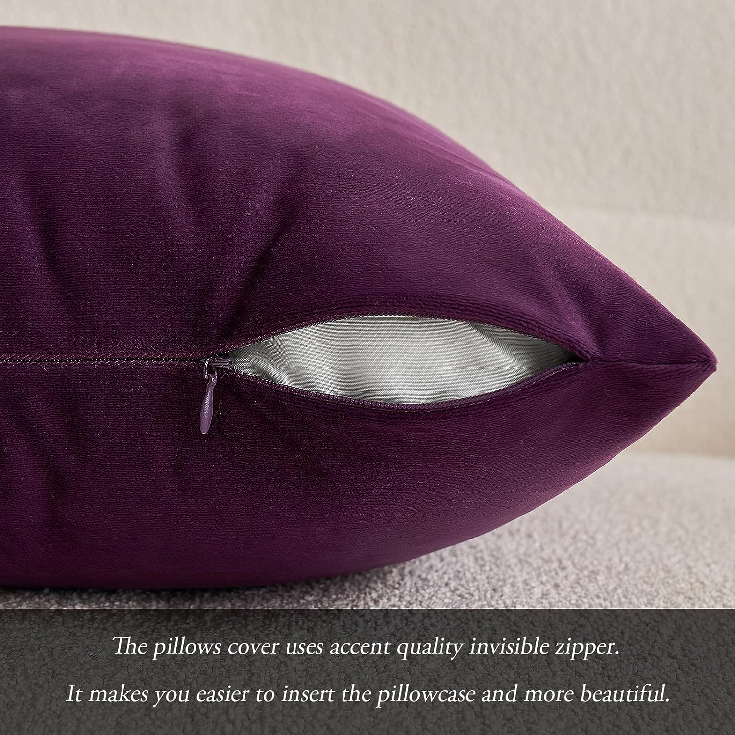 - Material: Velvet. Very soft and skin-friendly. Zipper is hidden and works smoothly. Both attractive and practical.