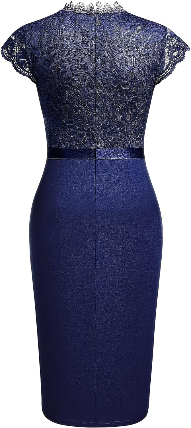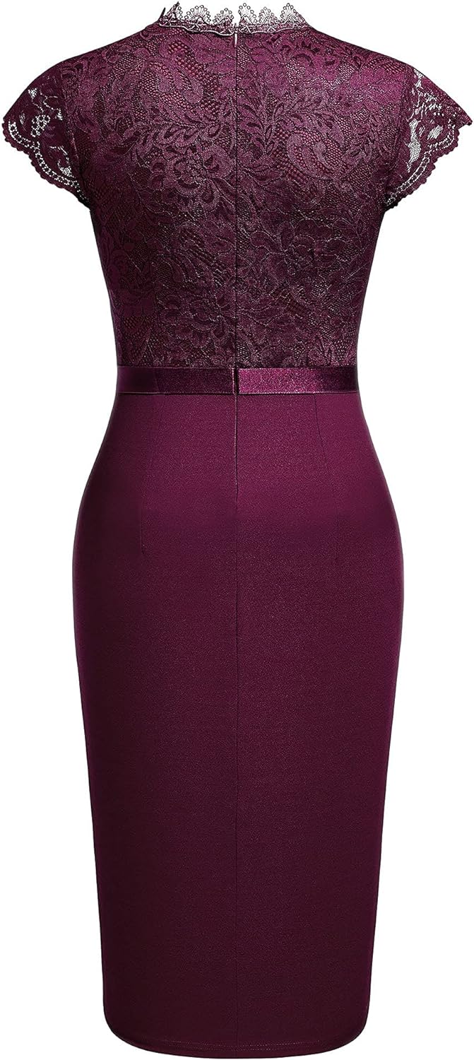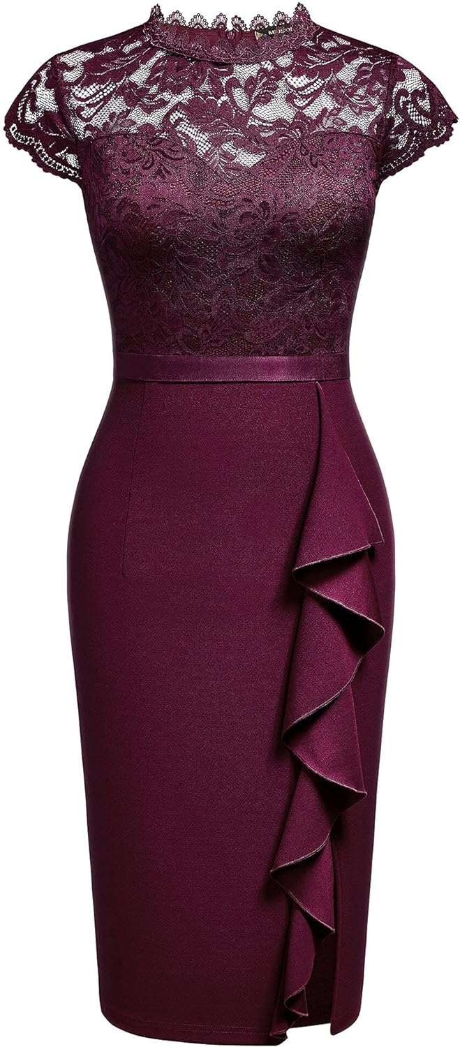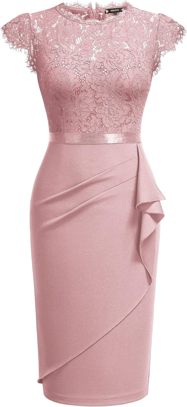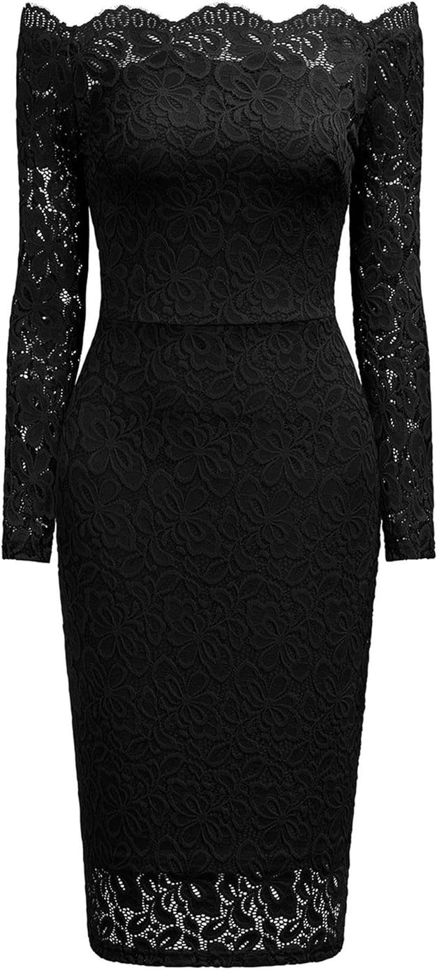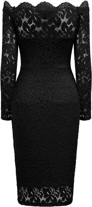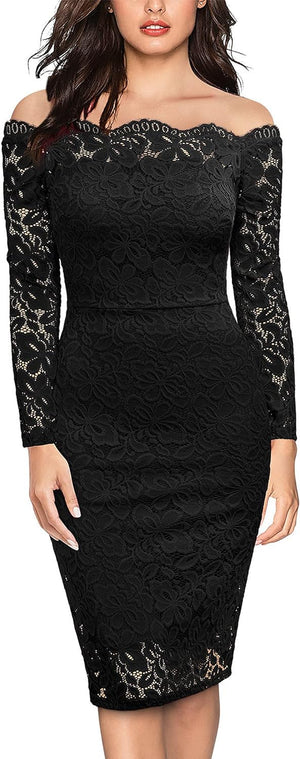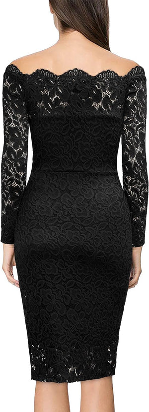 Miusol Womens Vintage Off Shoulder Flare Lace Slim Cocktail Pencil Dress
