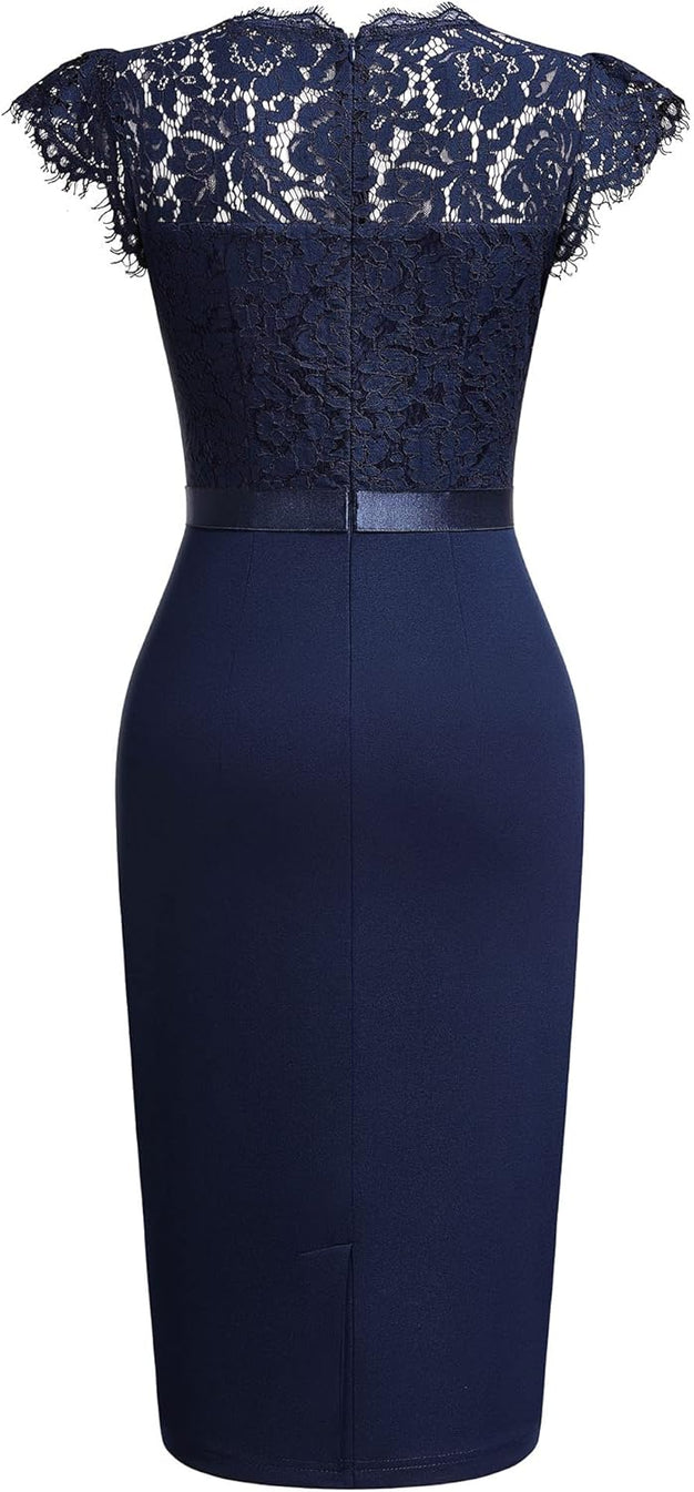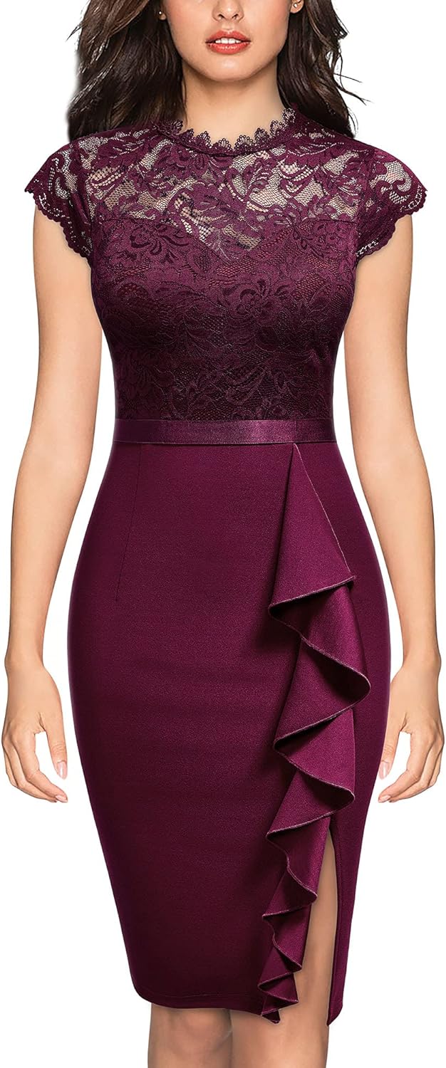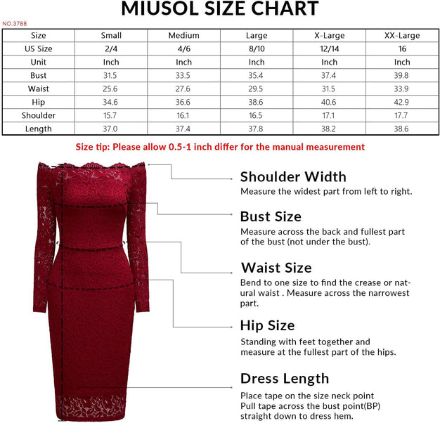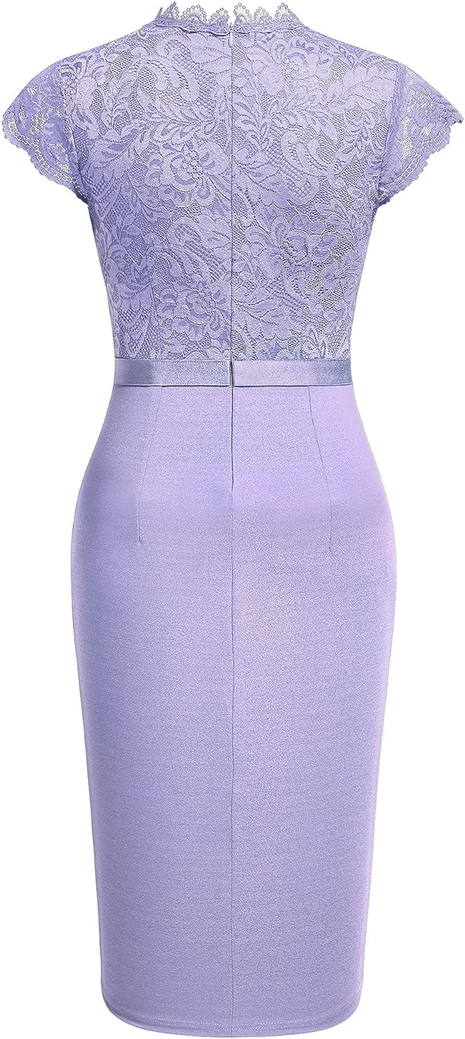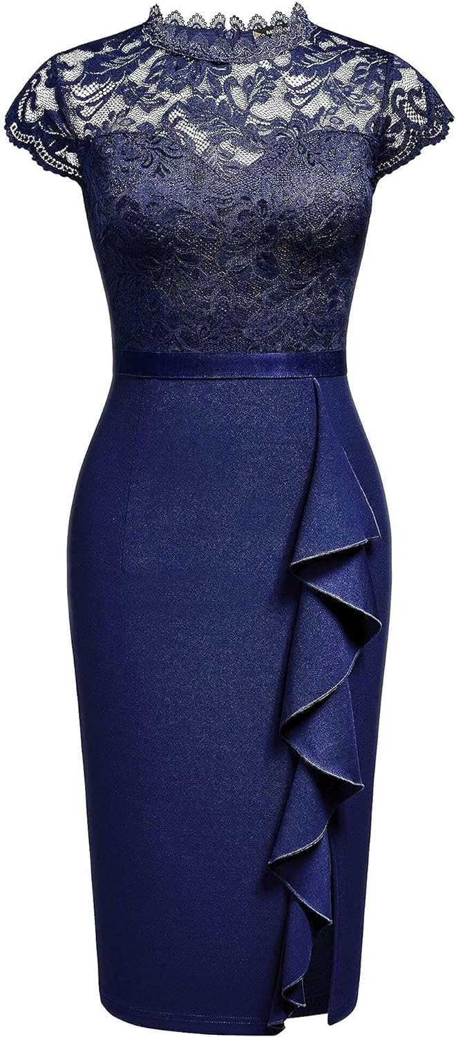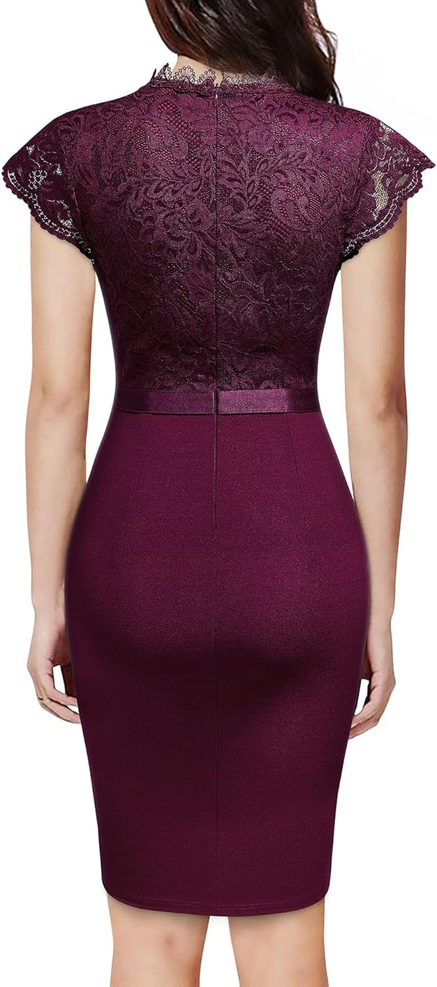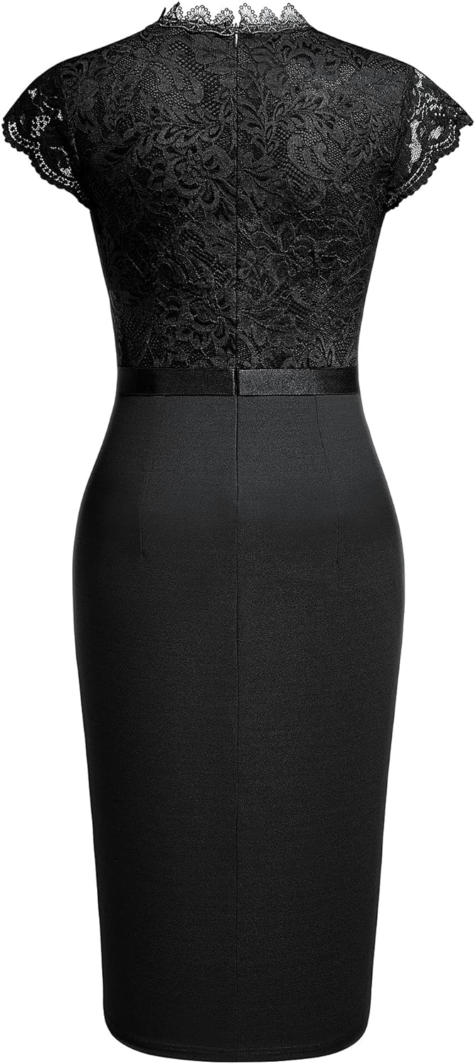 Miusol Womens Vintage Off Shoulder Flare Lace Slim Cocktail Pencil Dress