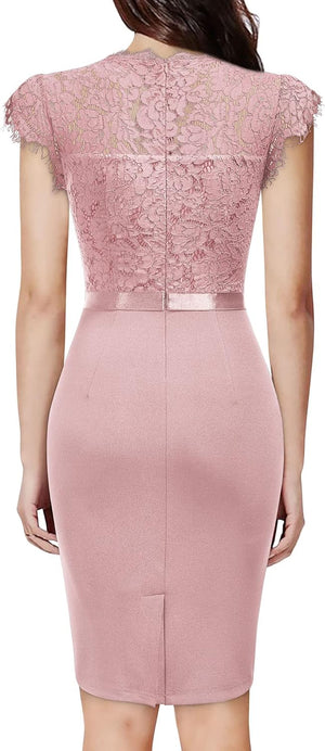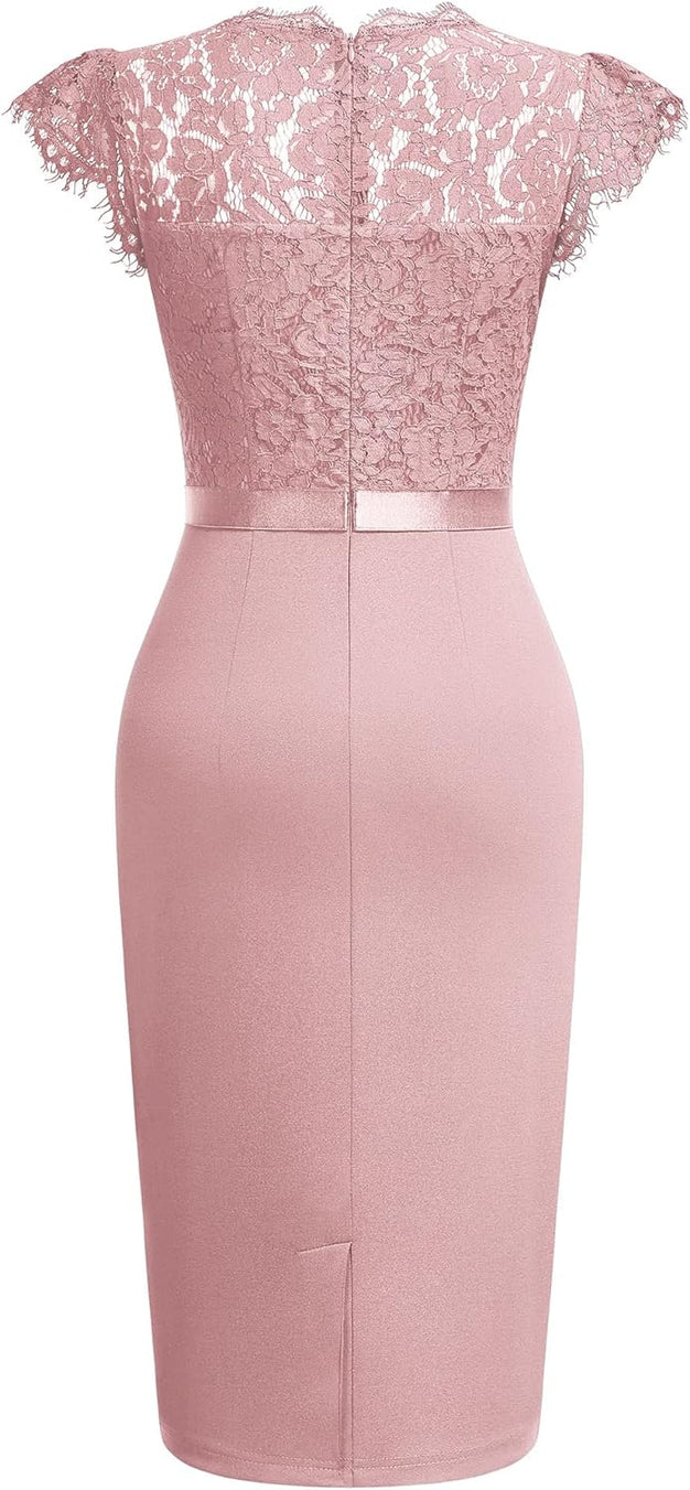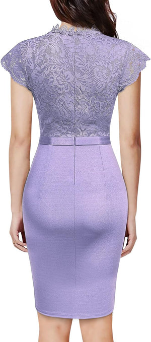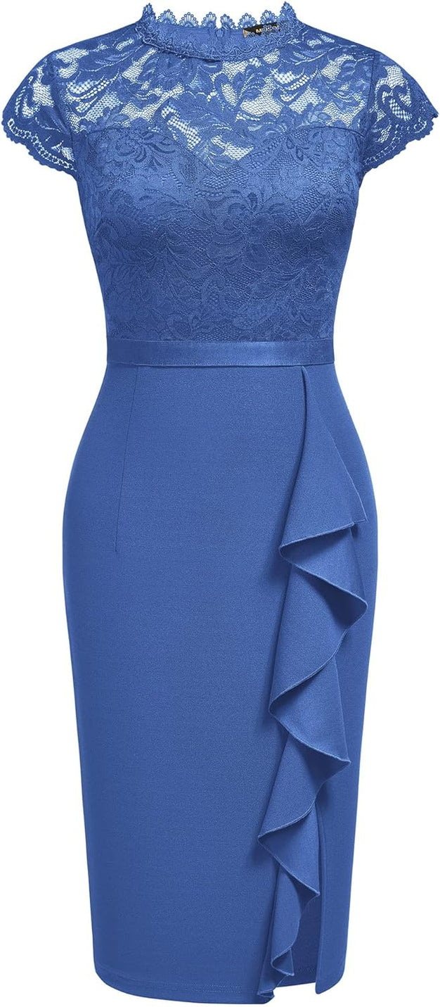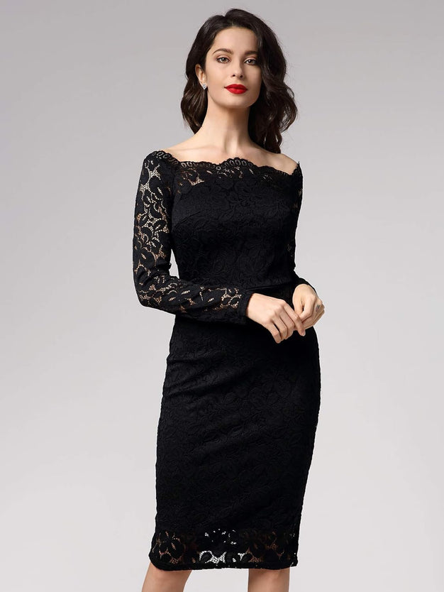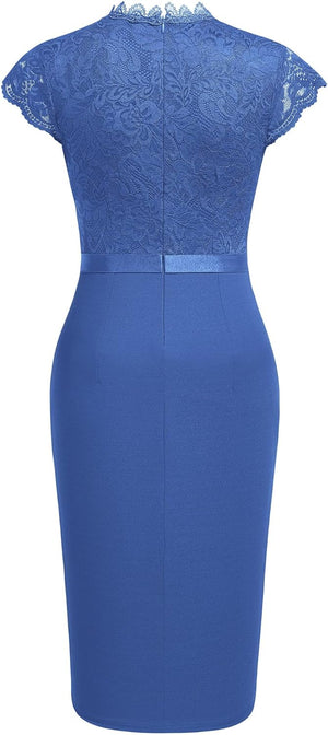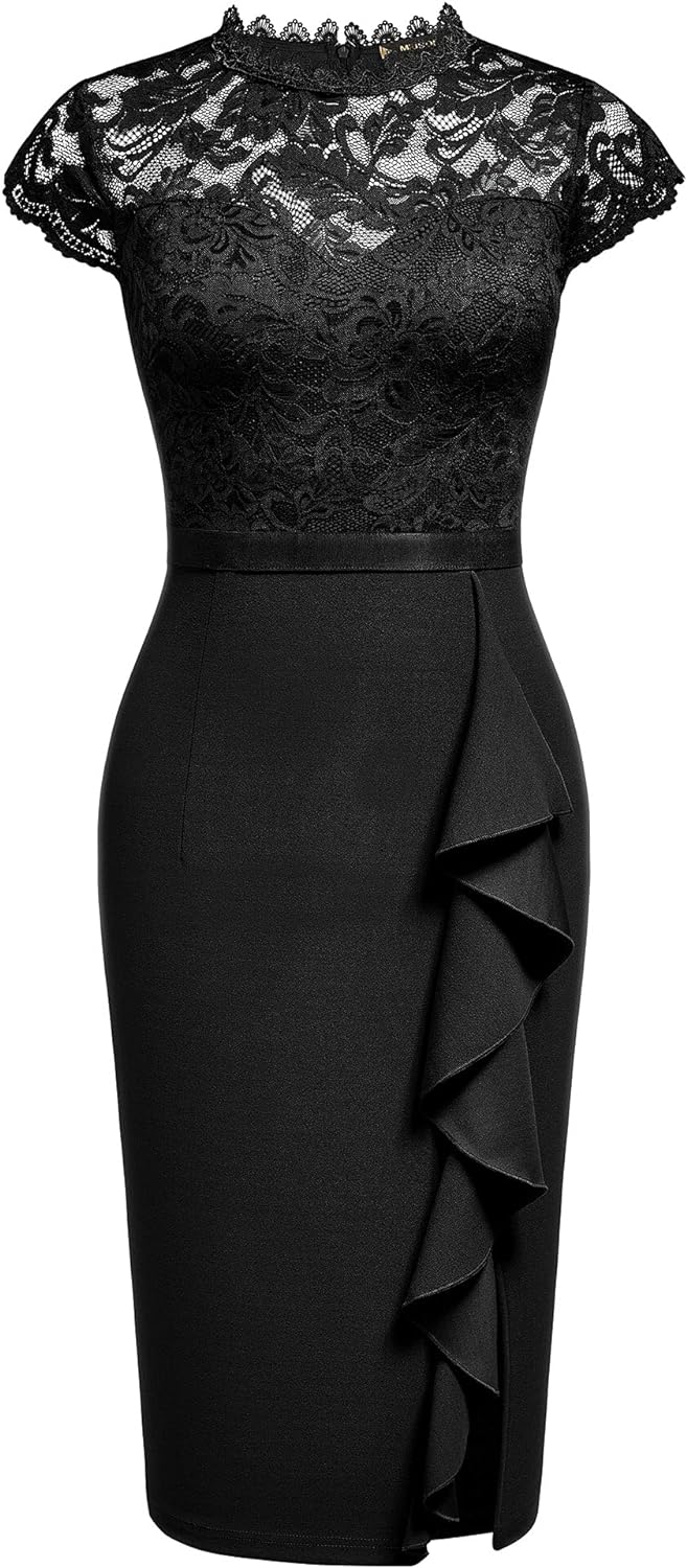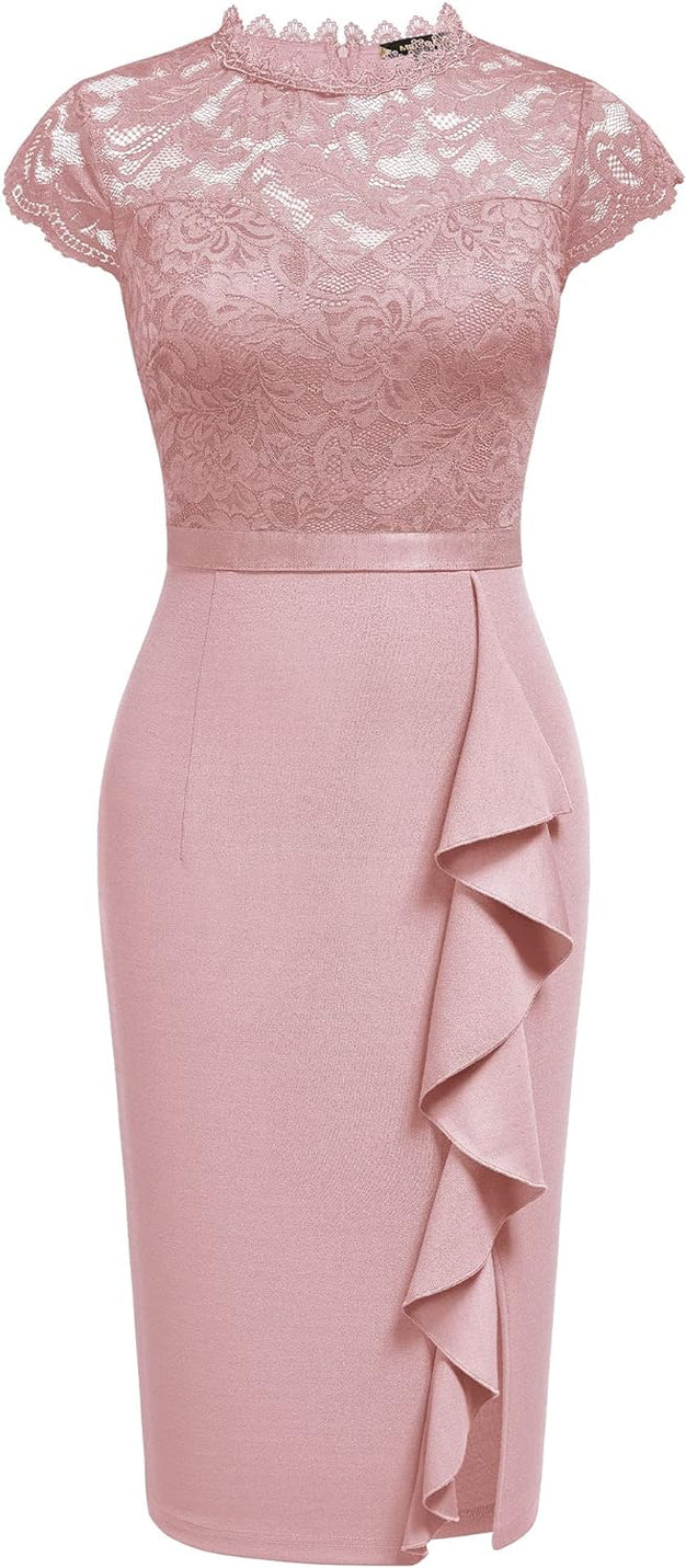 Miusol Womens Vintage Off Shoulder Flare Lace Slim Cocktail Pencil Dress