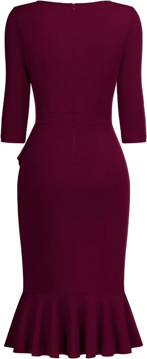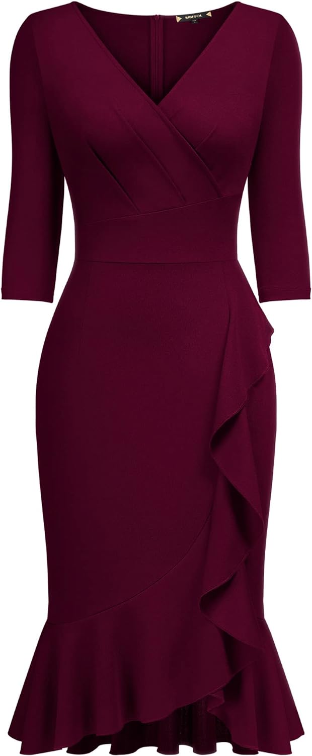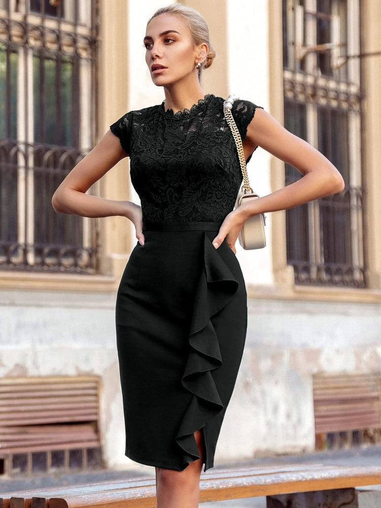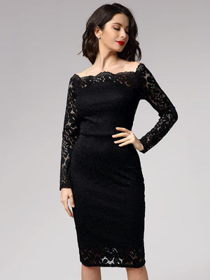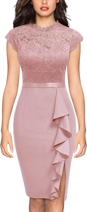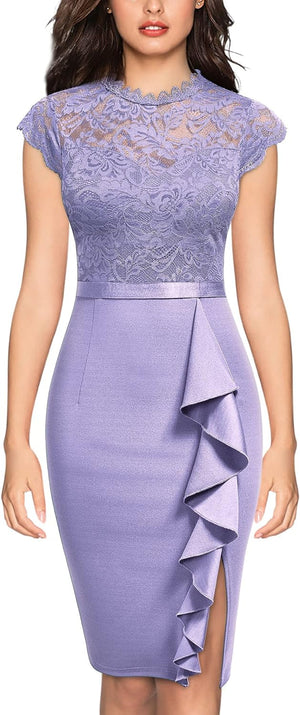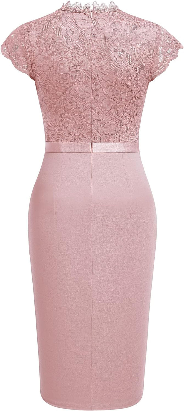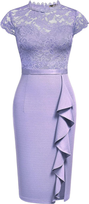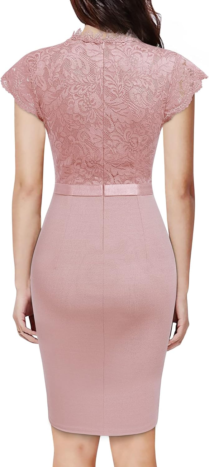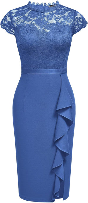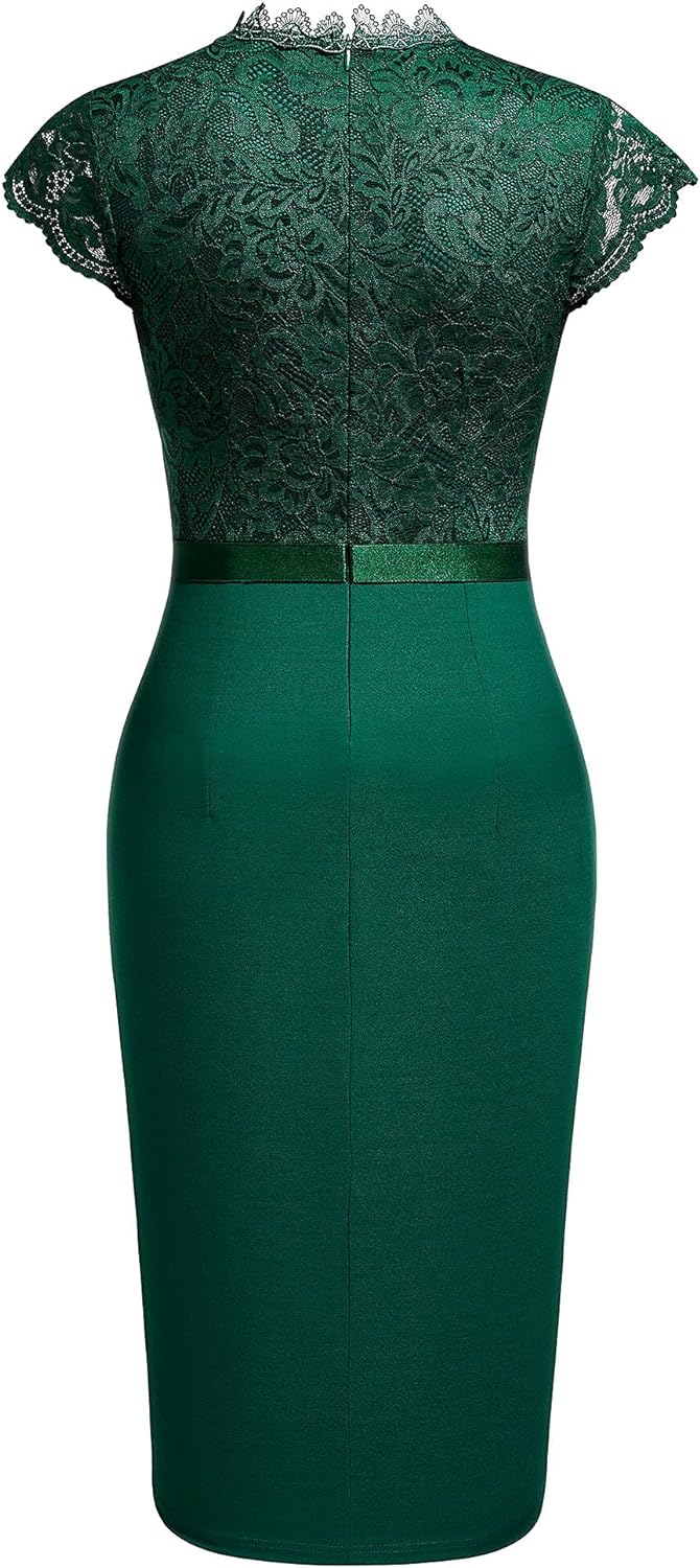 Miusol Womens Vintage Off Shoulder Flare Lace Slim Cocktail Pencil Dress