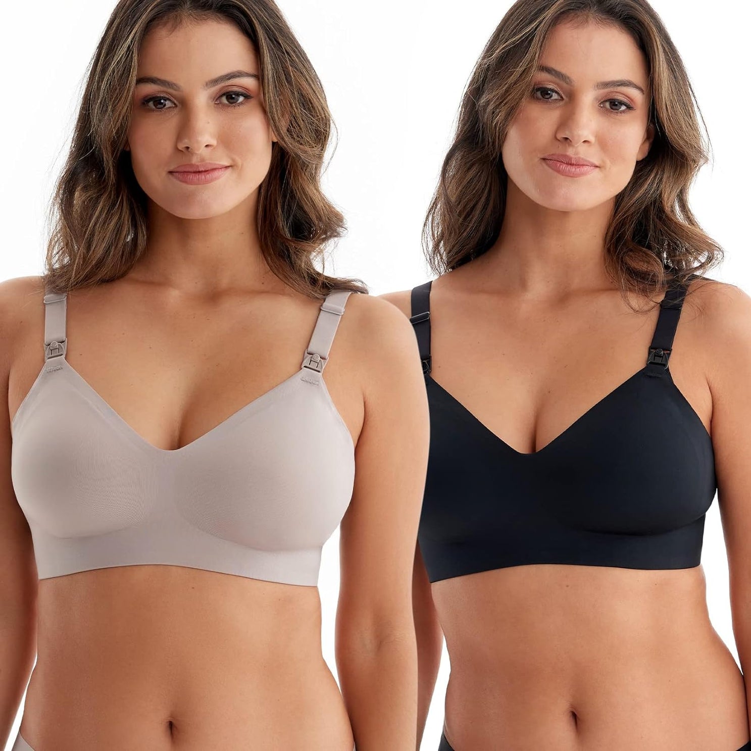 Momcozy Seamless Nursing Bra for Women 2 Pack Comfort Smooth Breastfeeding Maternity Bralette Wireless Pregnancy Bra