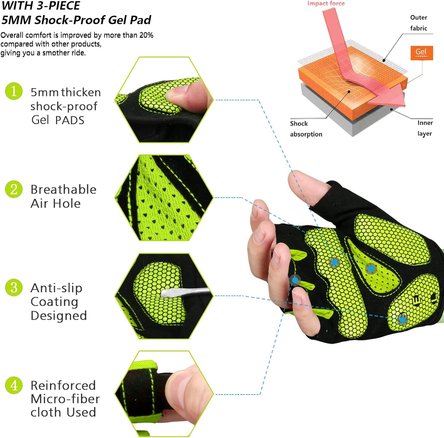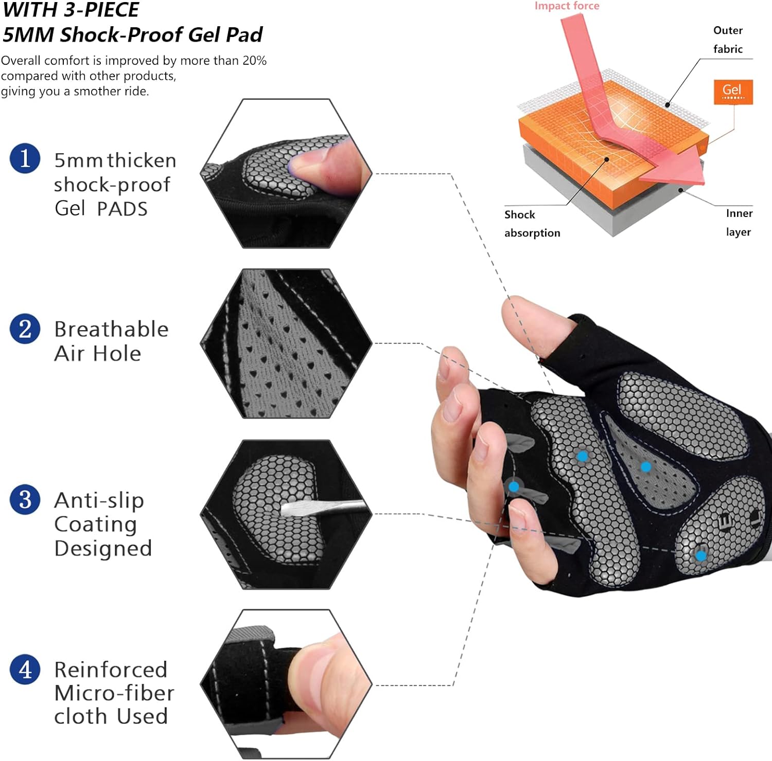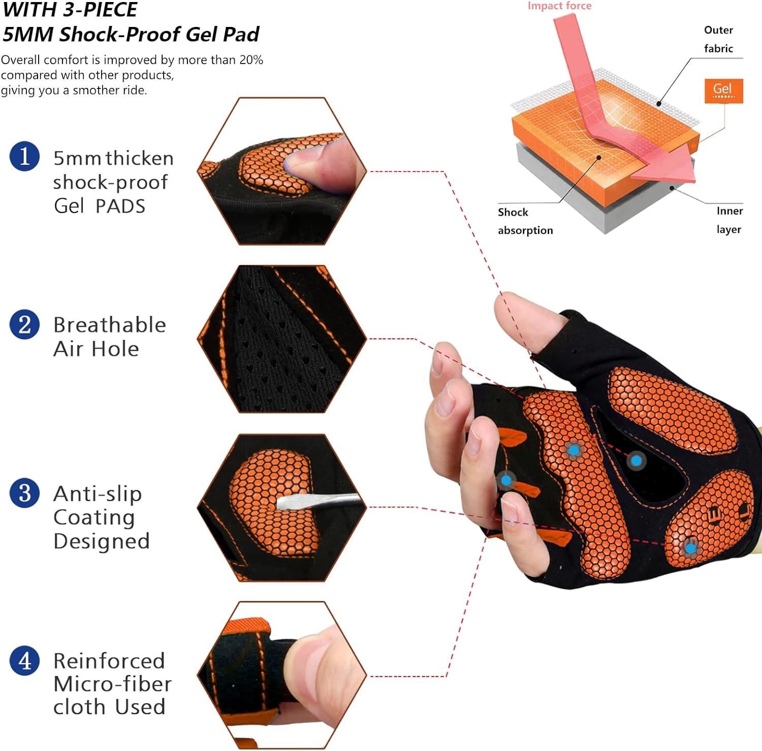- 【TRIANGEL SHOCKPROOF SYSTEM】 Double palm shockproof,EVS padding combined with human palm features to the most secure triangular anti vibration system be the most protective ,comfortable ones and brings the most shockproof effect.
