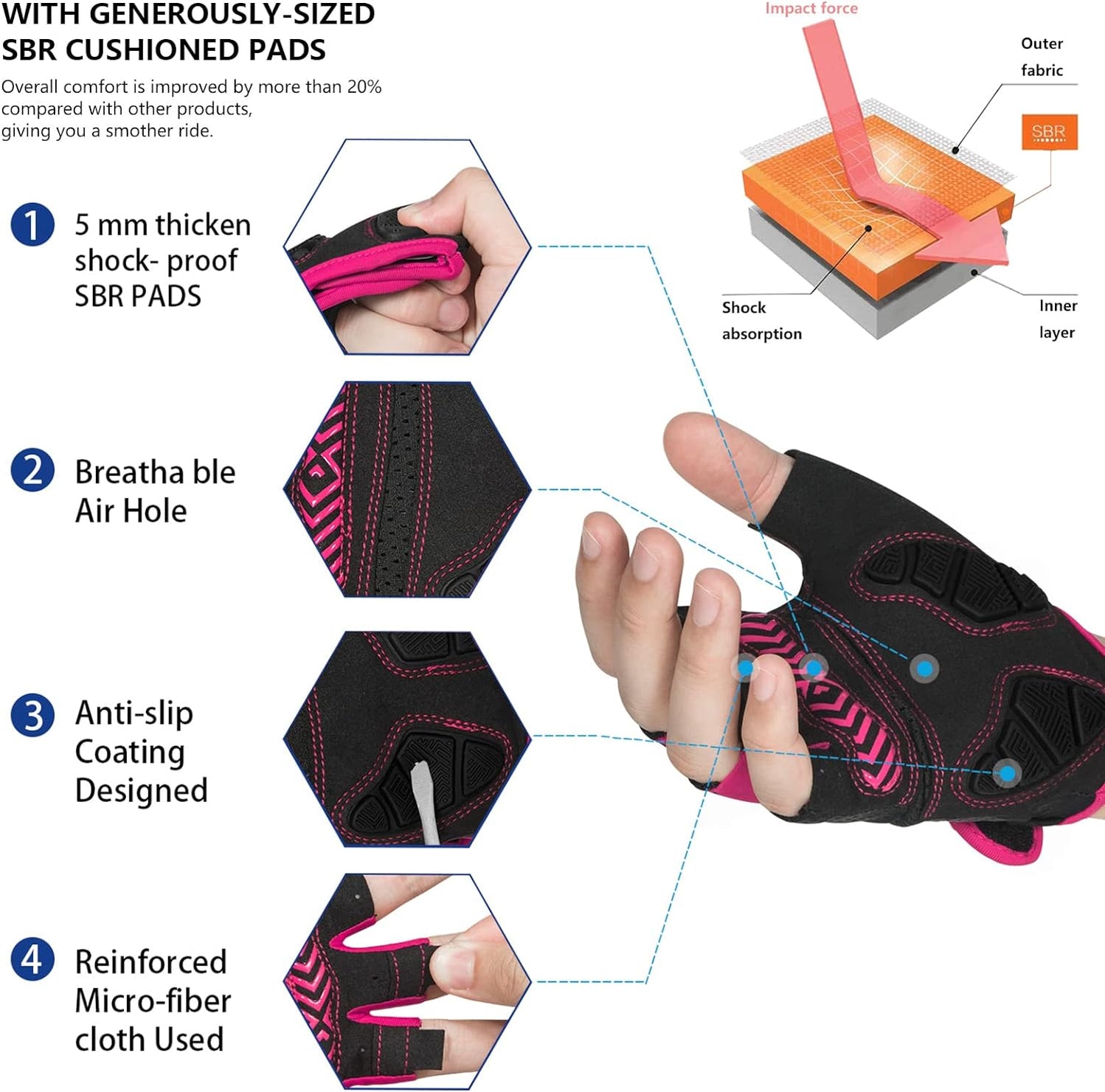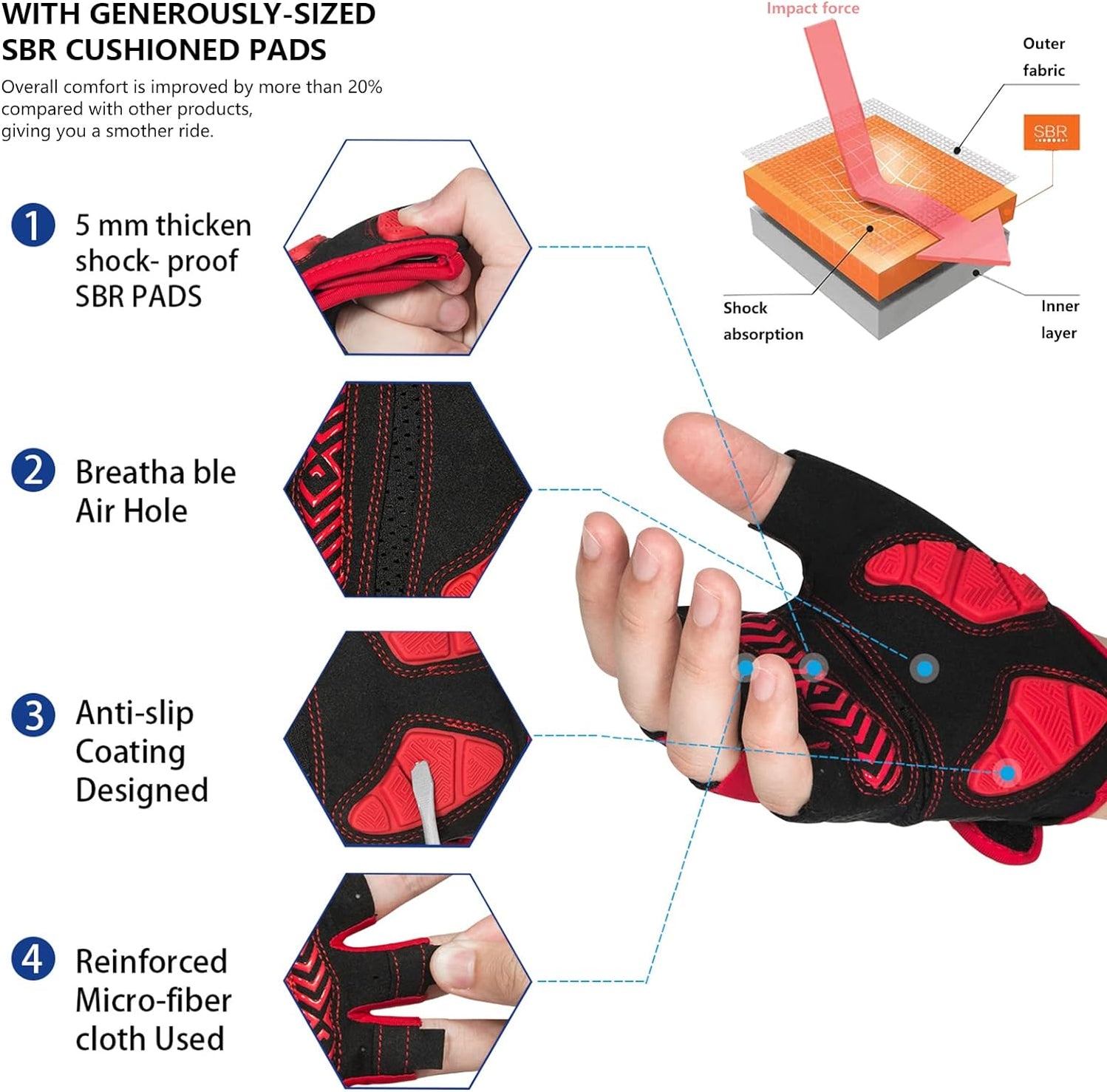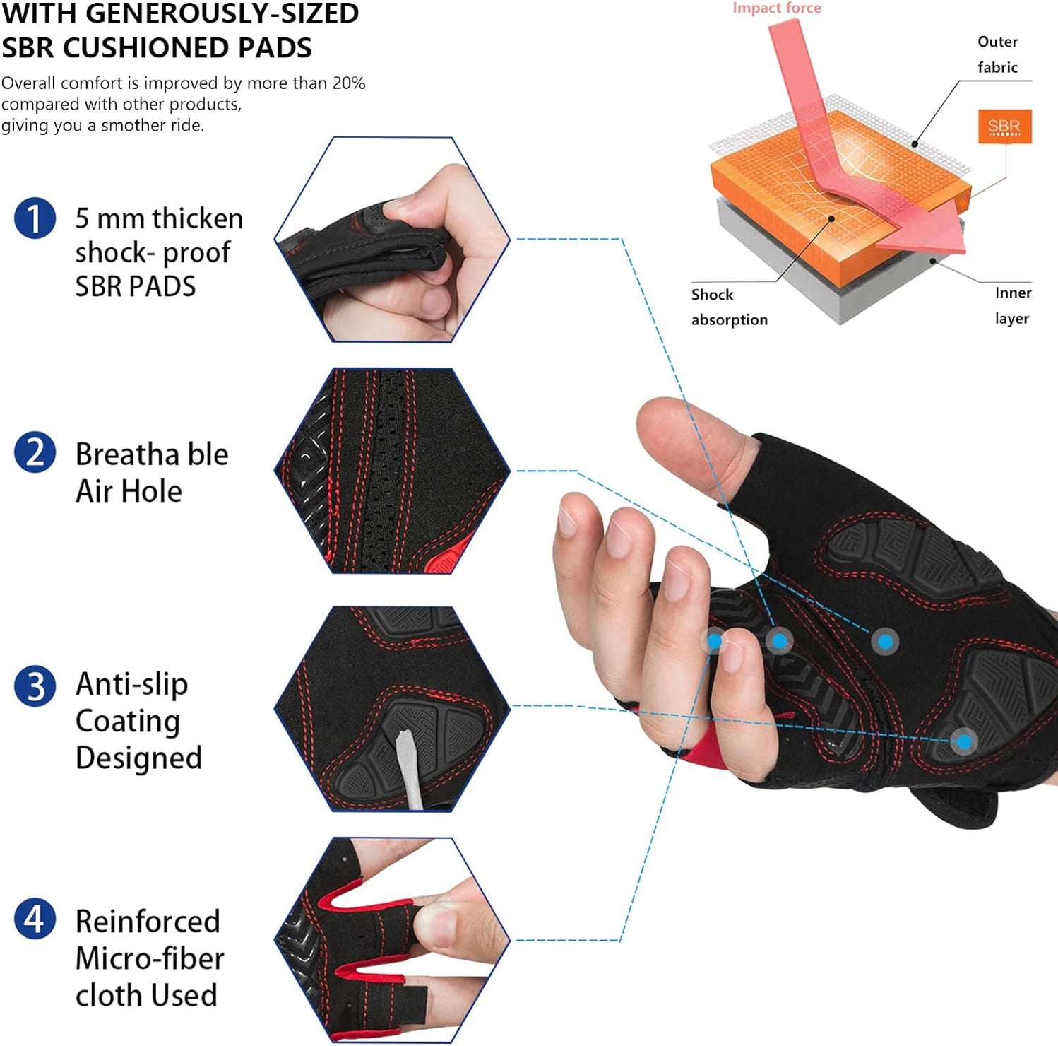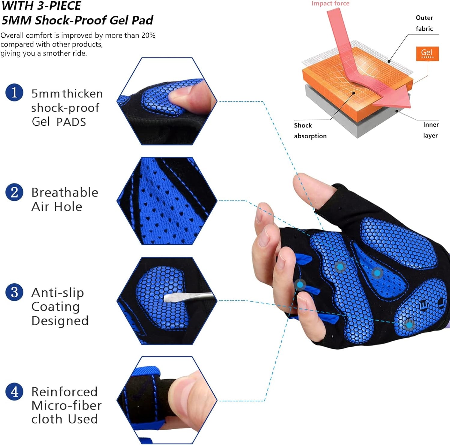 - 【TRIANGEL SHOCKPROOF SYSTEM】 Double palm shockproof,EVS padding combined with human palm features to the most secure triangular anti vibration system be the most protective ,comfortable ones and brings the most shockproof effect.