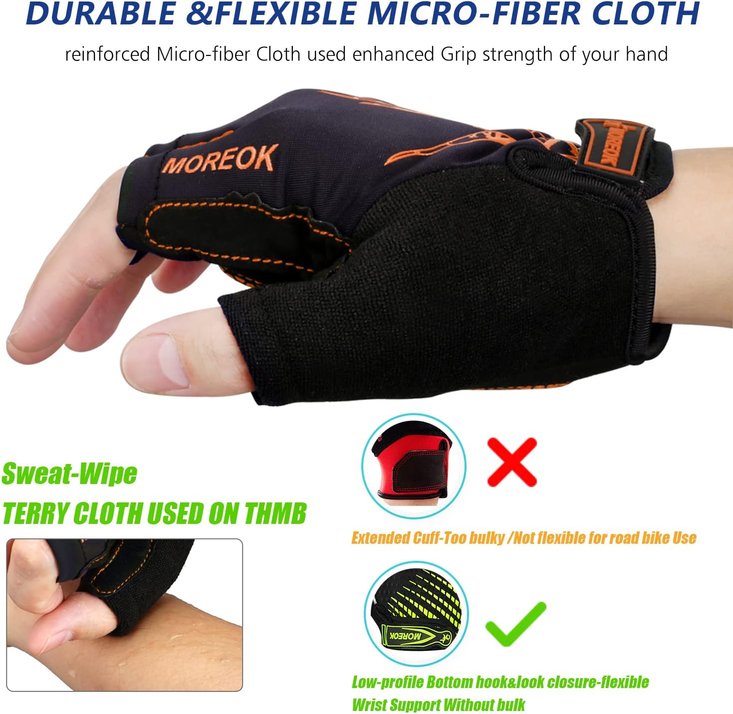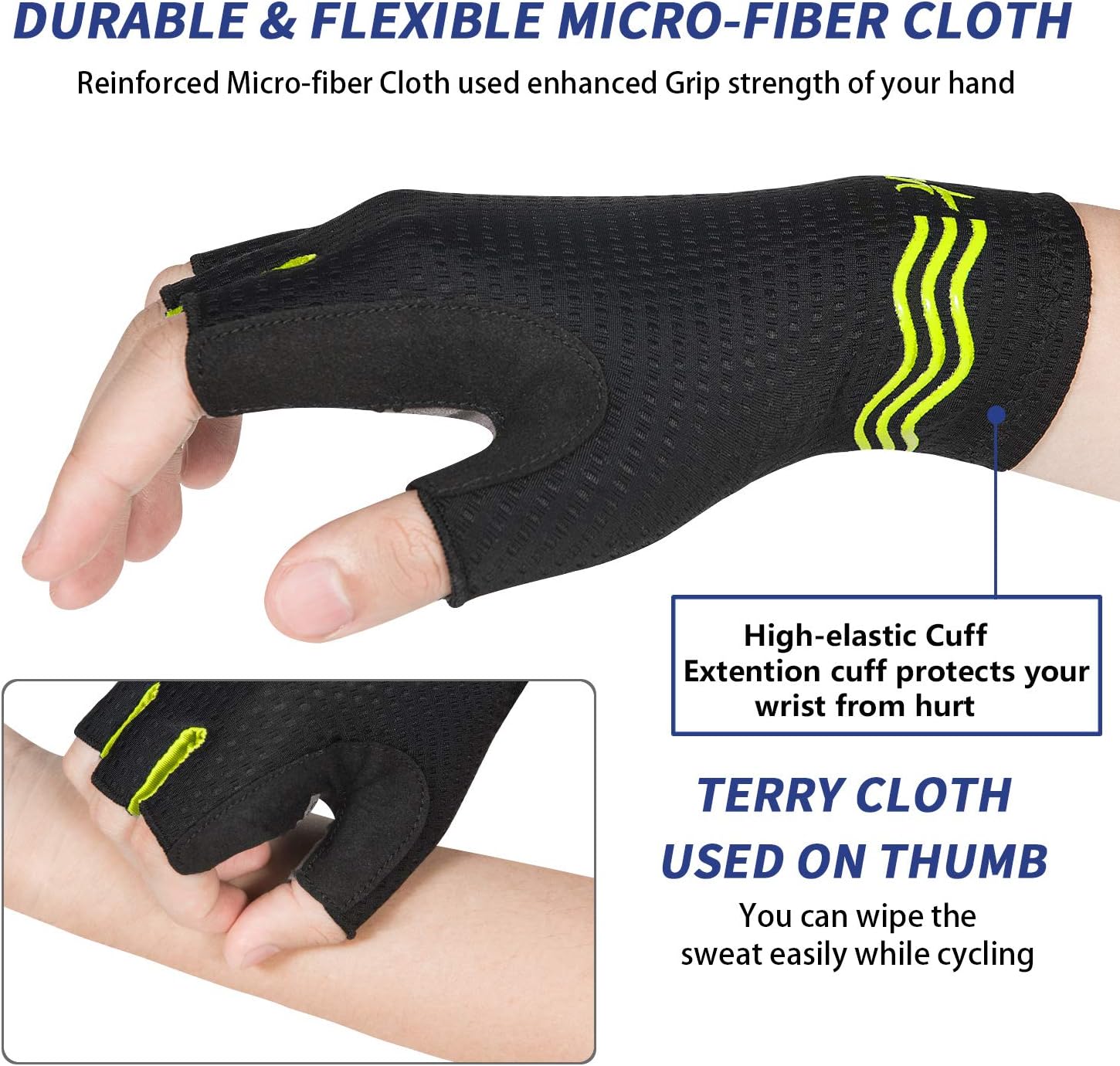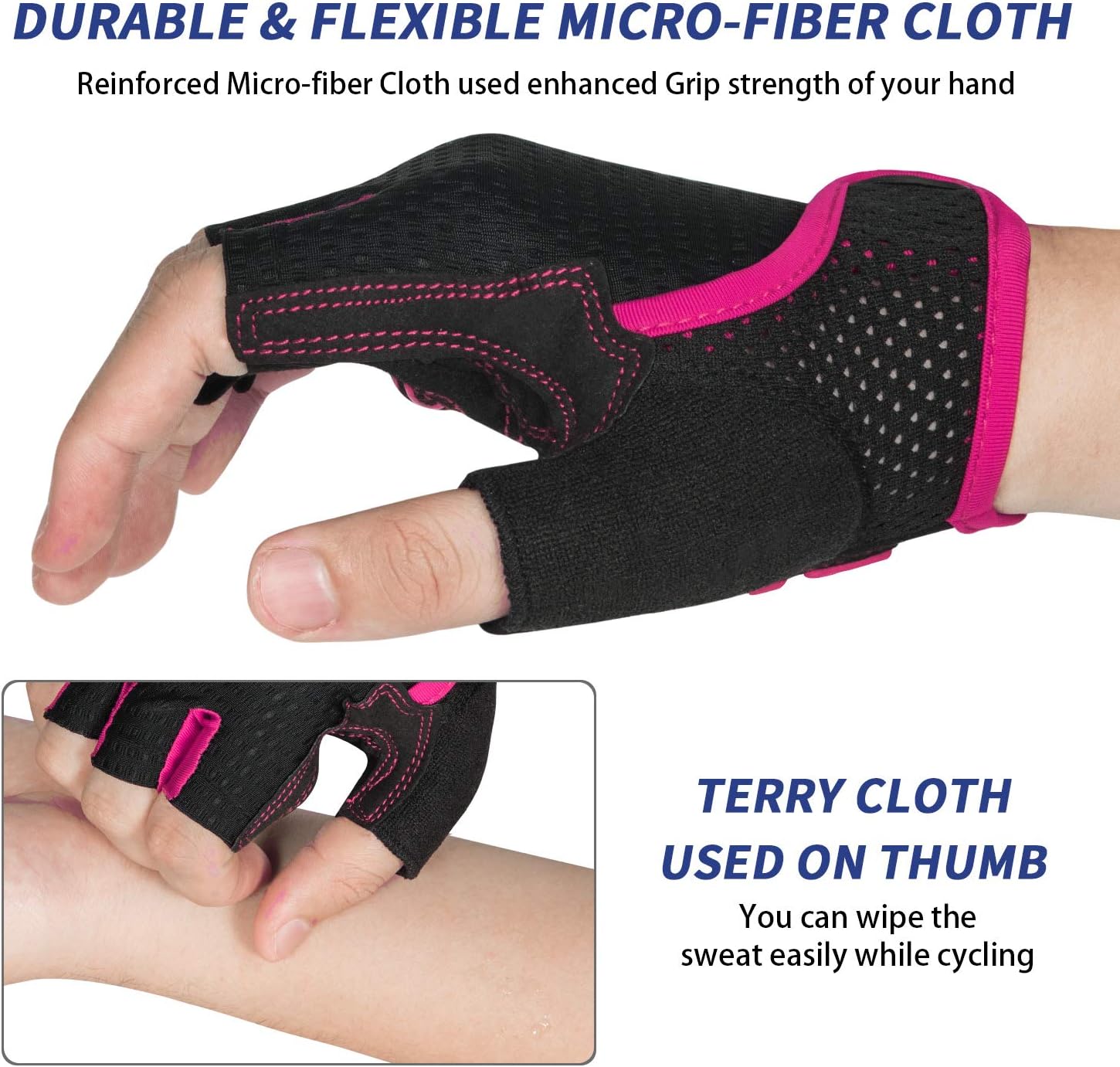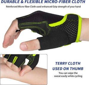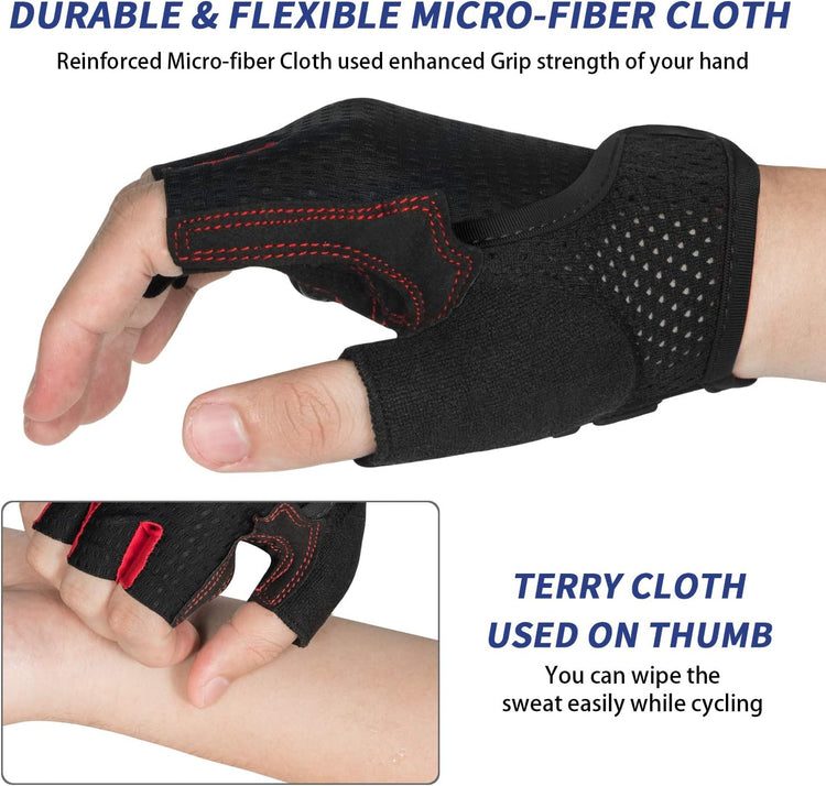 - 【TERRY CLOTH DESIGN OF CYCLING GLOVES】 Terry Cloth design of biking gloves used to wipe the dripping and distracting sweat instead of wiping face in large range.