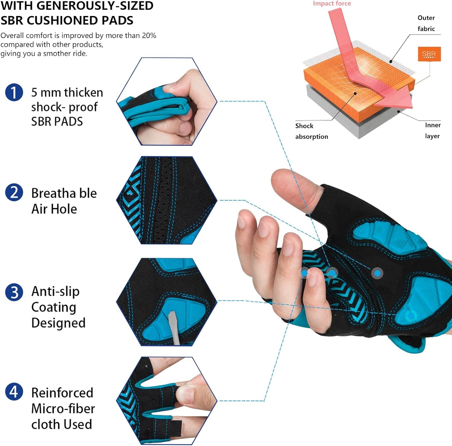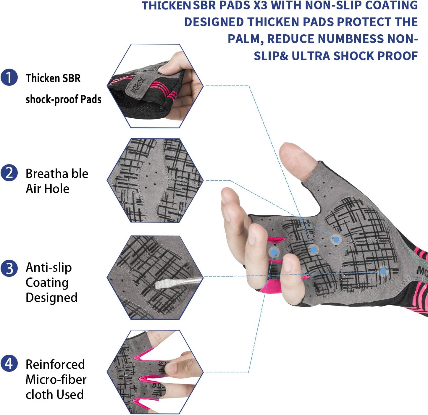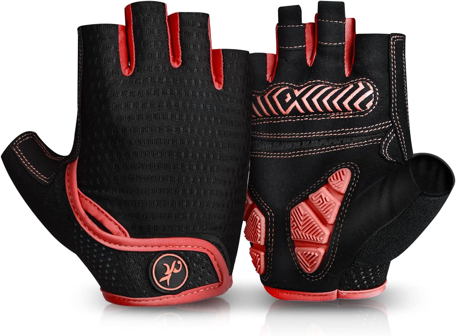 - 【100% BREATHABLE MATERIAL】 Bike gloves use of 100% breathable microfiber material can quickly absorb sweat during the ride, cycling gloves design of ventilation holes in palm parts helps the hands breathe better.