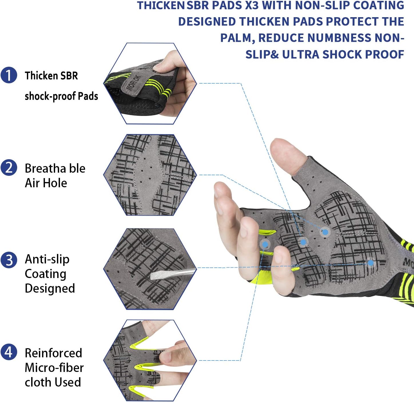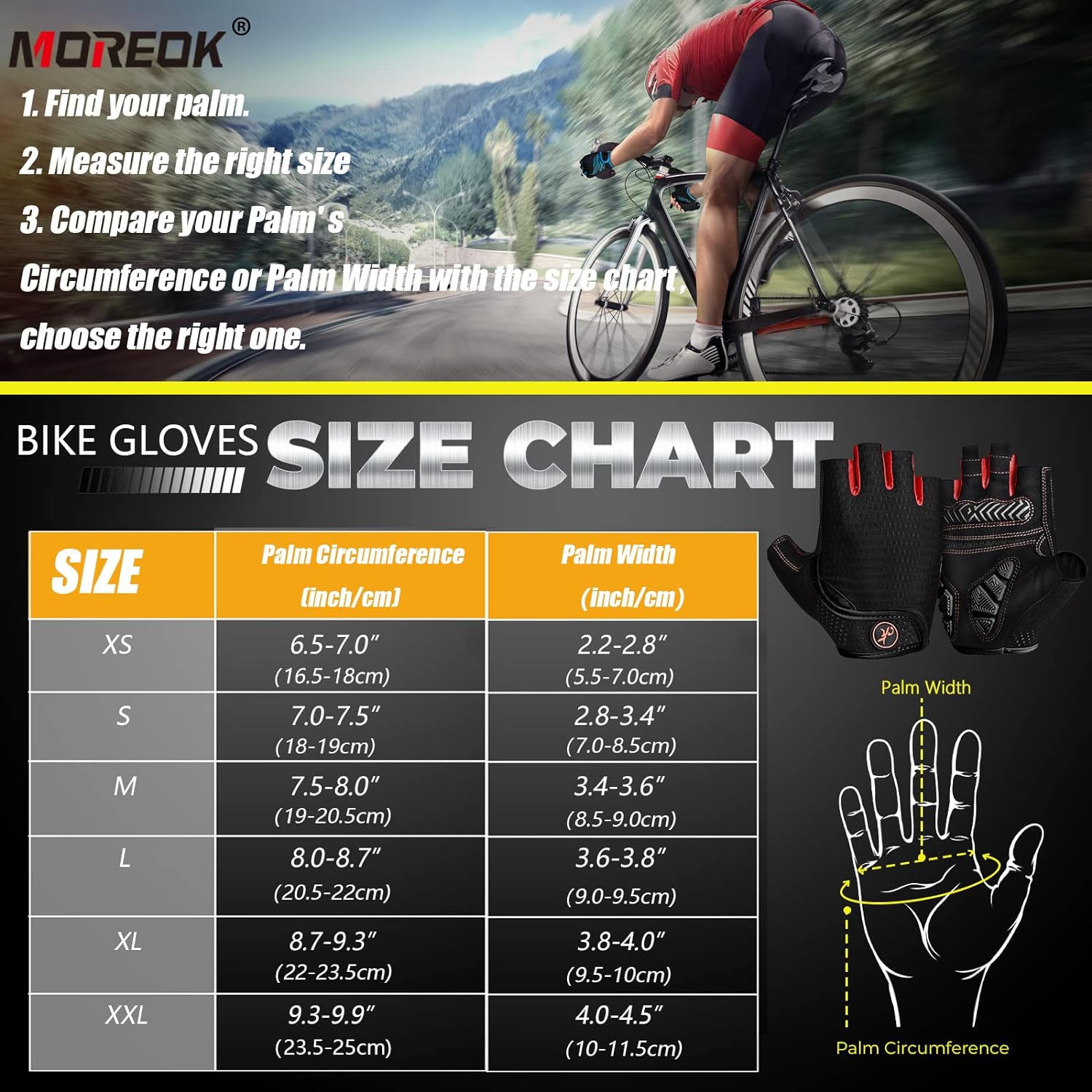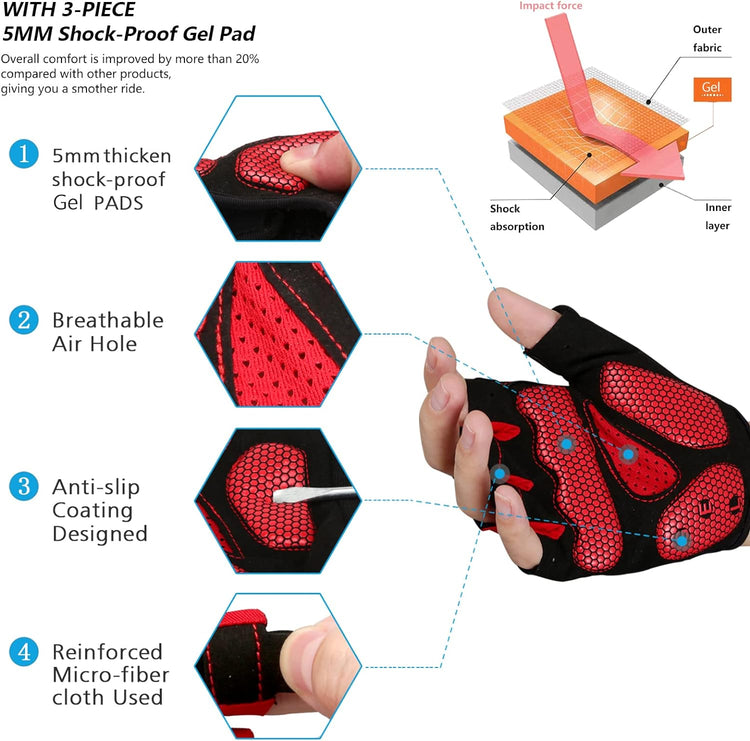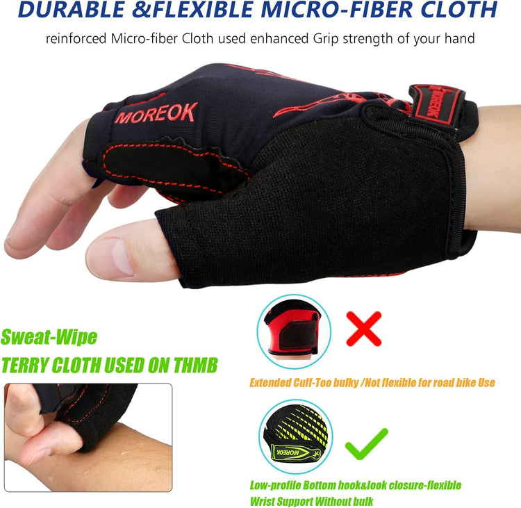 MOREOK Cycling Gloves Bike Gloves for Men/Women-[5MM Gel Pad] Biking Gloves Half Finger Road Bike MTB Bicycle Gloves-for Cycling/Workout/Motorcycle/Gym/Training/Outdoor