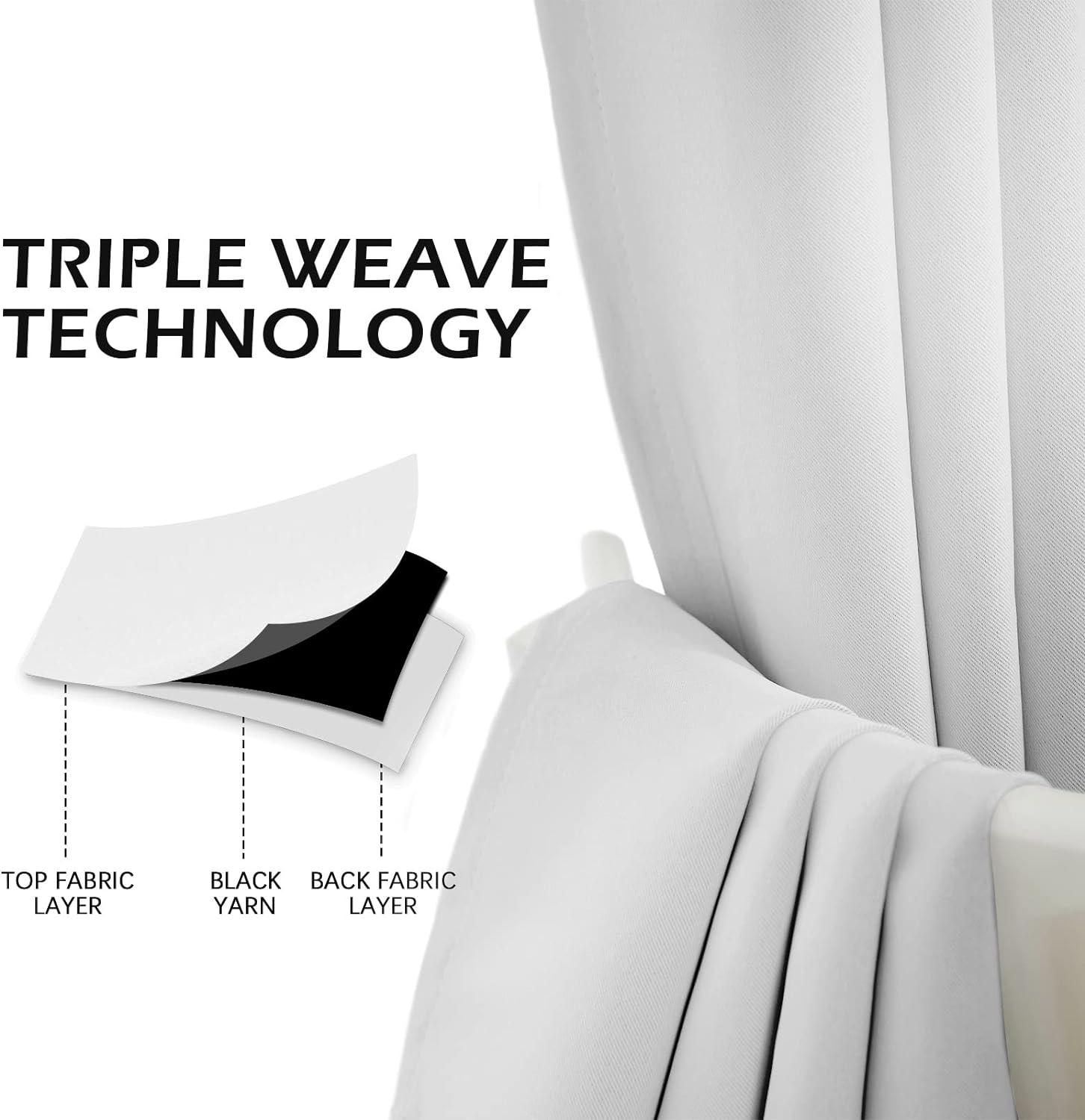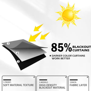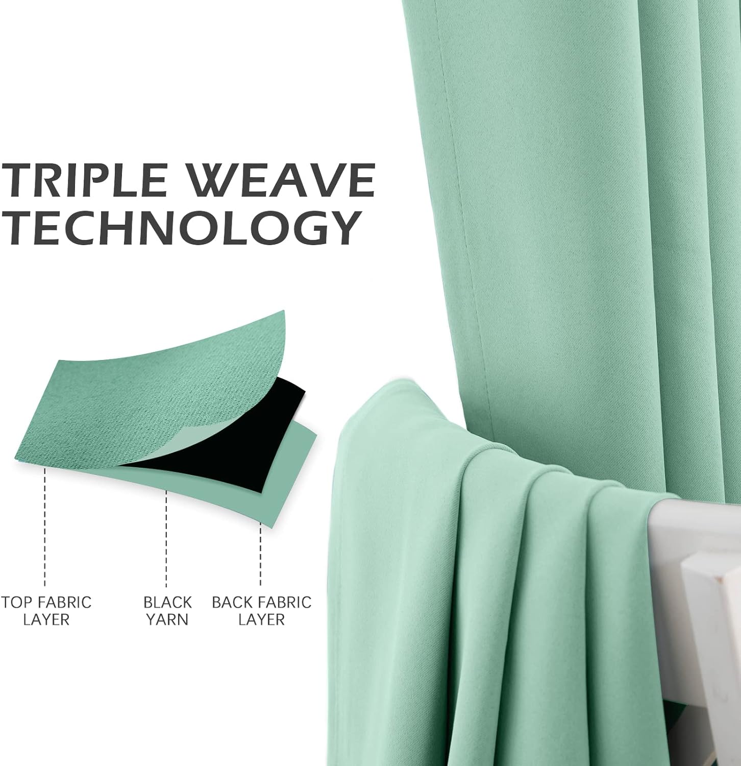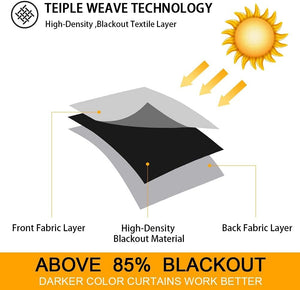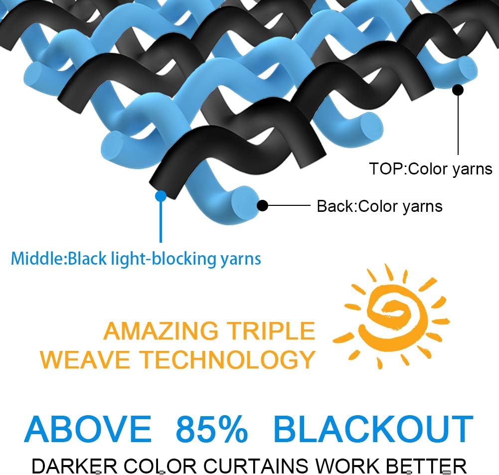 - Amazing Triple Weave Fabric: These super soft and durable window curtains adopt special triple weave technology. The black light-blocking yarns are woven between the two colored yarns to ensure that the curtains have at least 85% shading ability ( Darker color curtains work better ). Our light blocking curtain with no liner, both side are the same color.