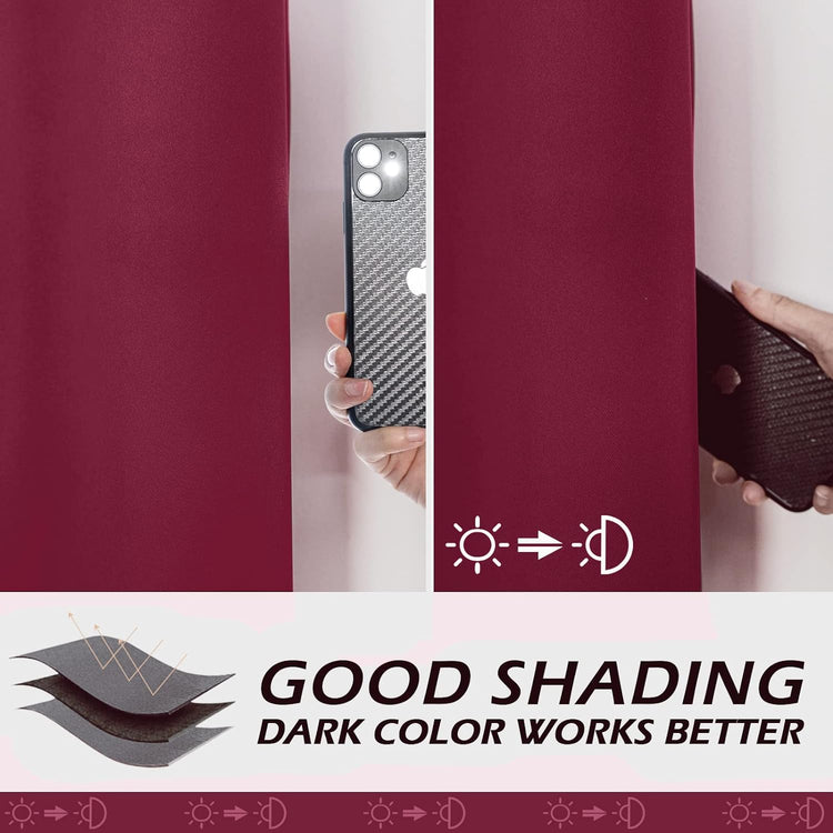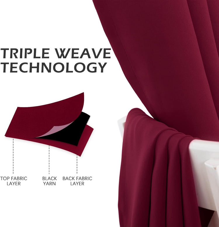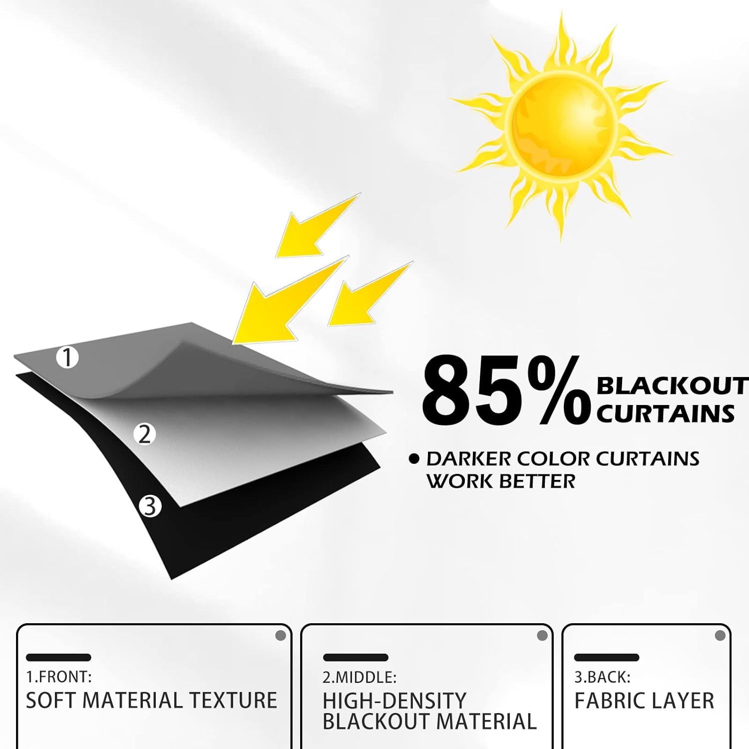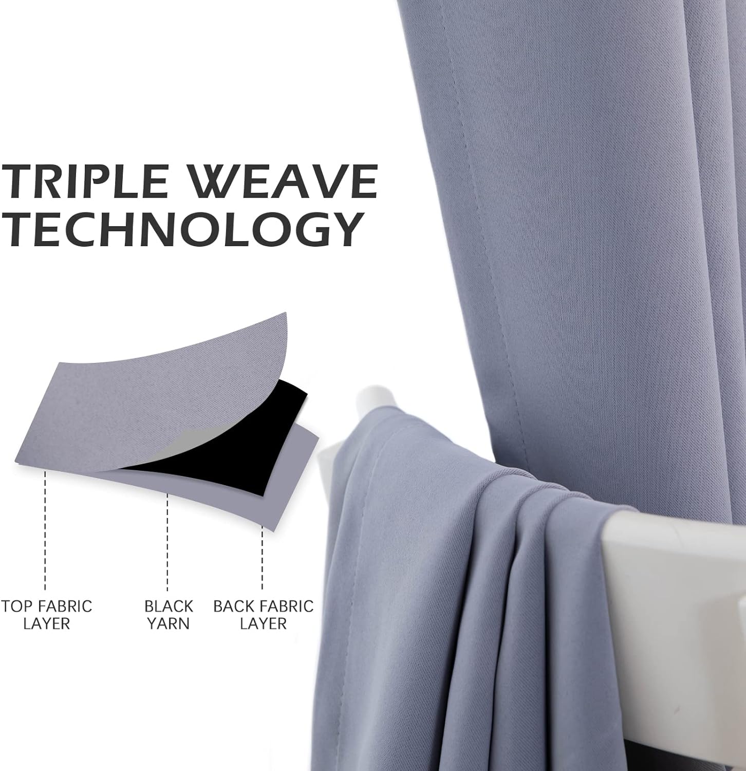 - Amazing Triple Weave Fabric: These super soft and durable window curtains adopt special triple weave technology. The black light-blocking yarns are woven between the two colored yarns to ensure that the curtains have at least 85% shading ability ( Darker color curtains work better ). Our light blocking curtain with no liner, both side are the same color.