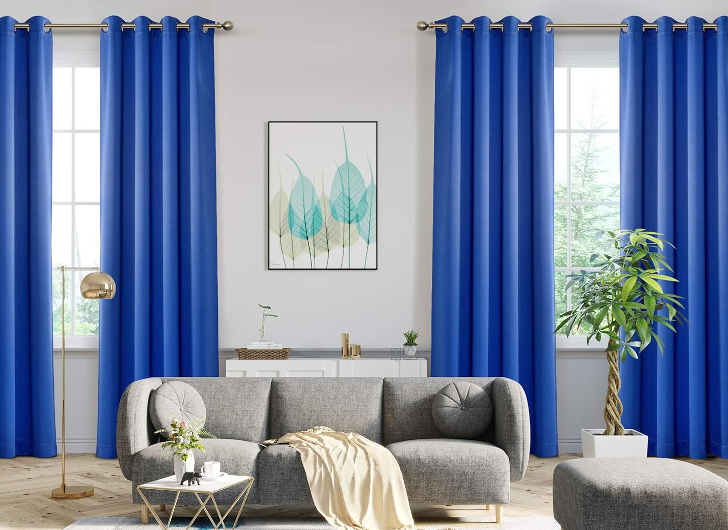MYSKY HOME Blue Curtains Bedroom Curtains 63 Inch Long Blackout Curtains for Living Room Dark Grommet Window Curtains Privacy Protect Room Darkening Single Panel Curtains, 52 x 63 Inch, Royal Blue