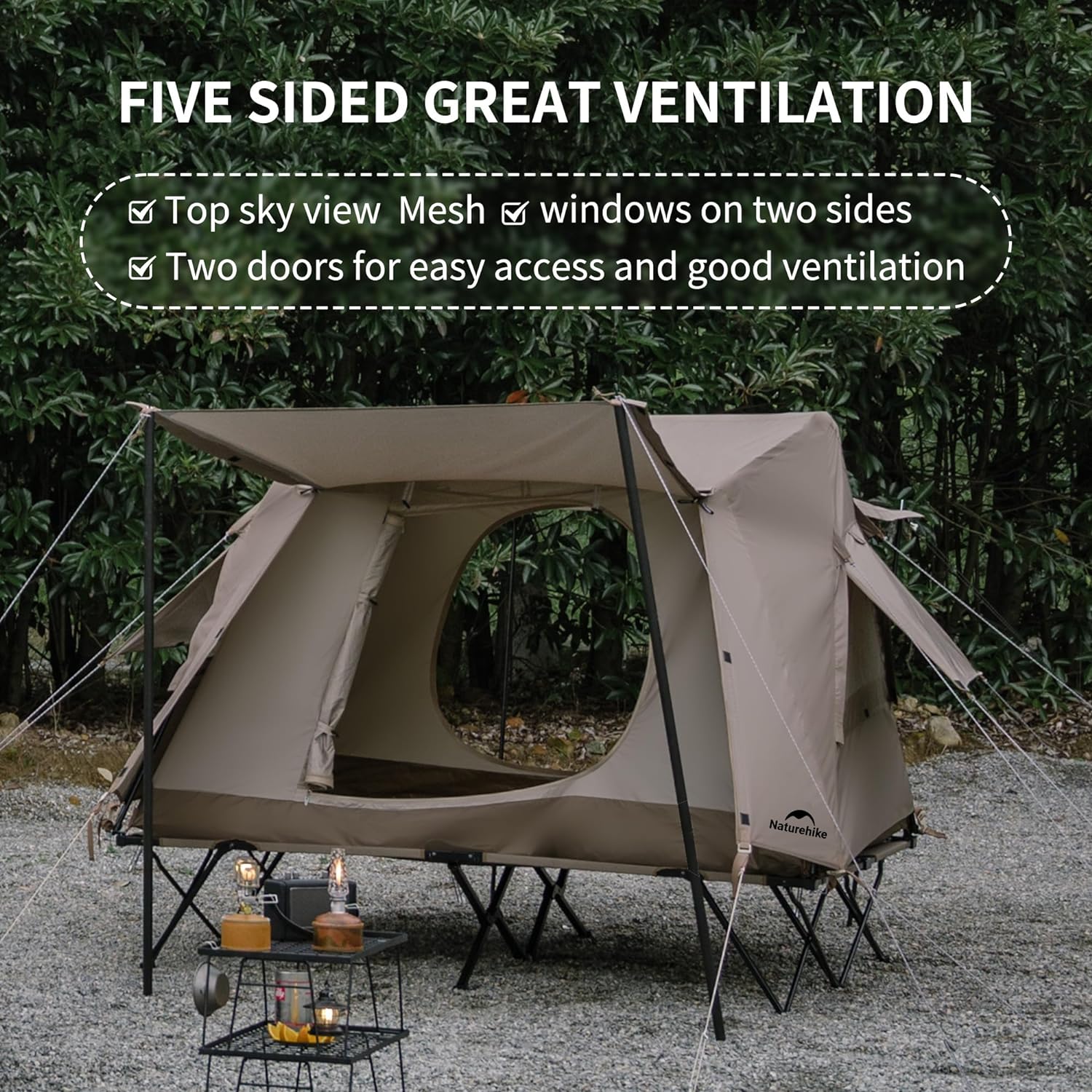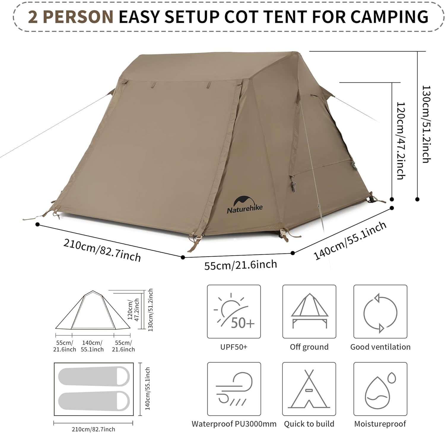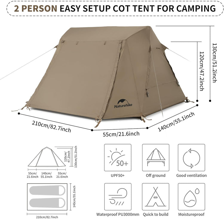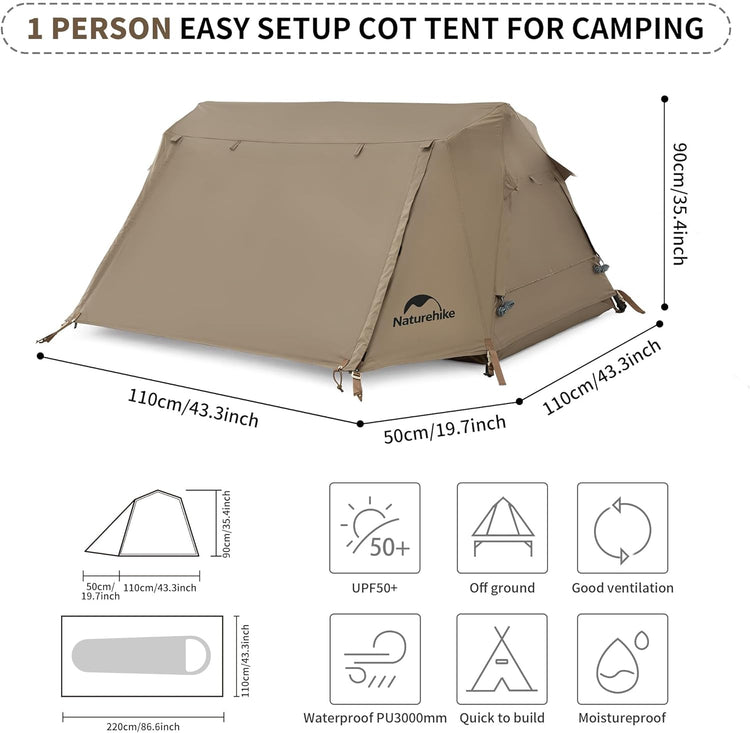 Naturehike Cot Tent for Camping,Easy Setup Pop up Tents for Camping, 1 Person 2 Person Camping Cot & Tent, Camping Bed, Tent with Rainfly