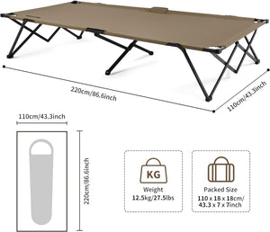 - Cot Tent for 2 Person: Tent Dimension:220 x 140 x 130cm/86.6 x 55.1 x 51.2inch,wider than the usual 2 person tent, larger room for two person sleep comfortably. Used with the camping cot to be a cot tent, keep away from the ground,moisture-proof and cold-proof, this is a great value tent suitable for all weather and all season camping!