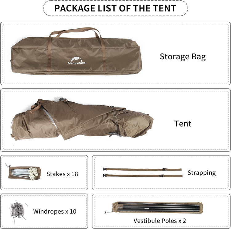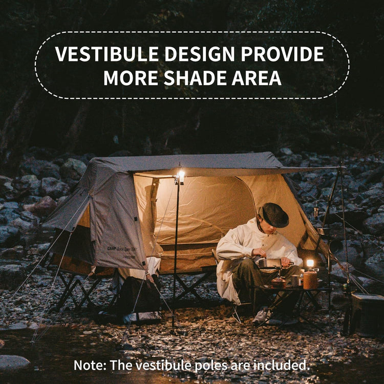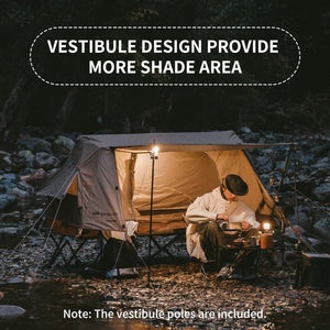 - Tent with Awning & Poles: The tent is designed with vestibule, and the vestibule poles is included, you don’t need to buy. The awning design provide more shade area and outdoor activity space for your camping.