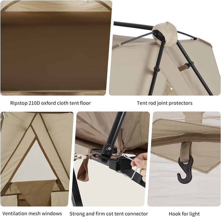 Features: 4 Season 2 Person Cot Tent for camping, hiking, winter tent
