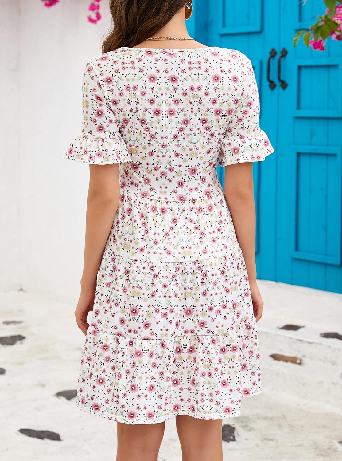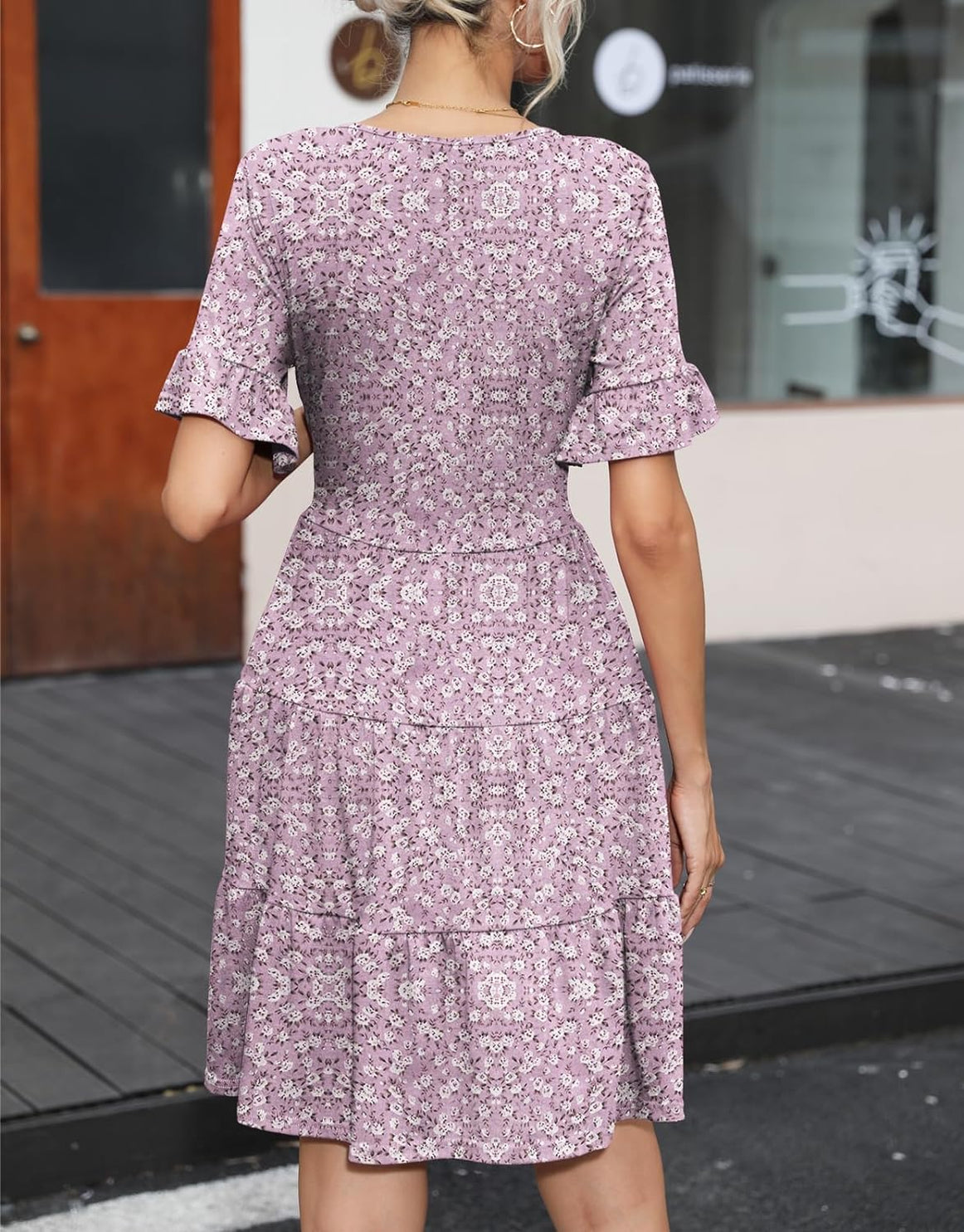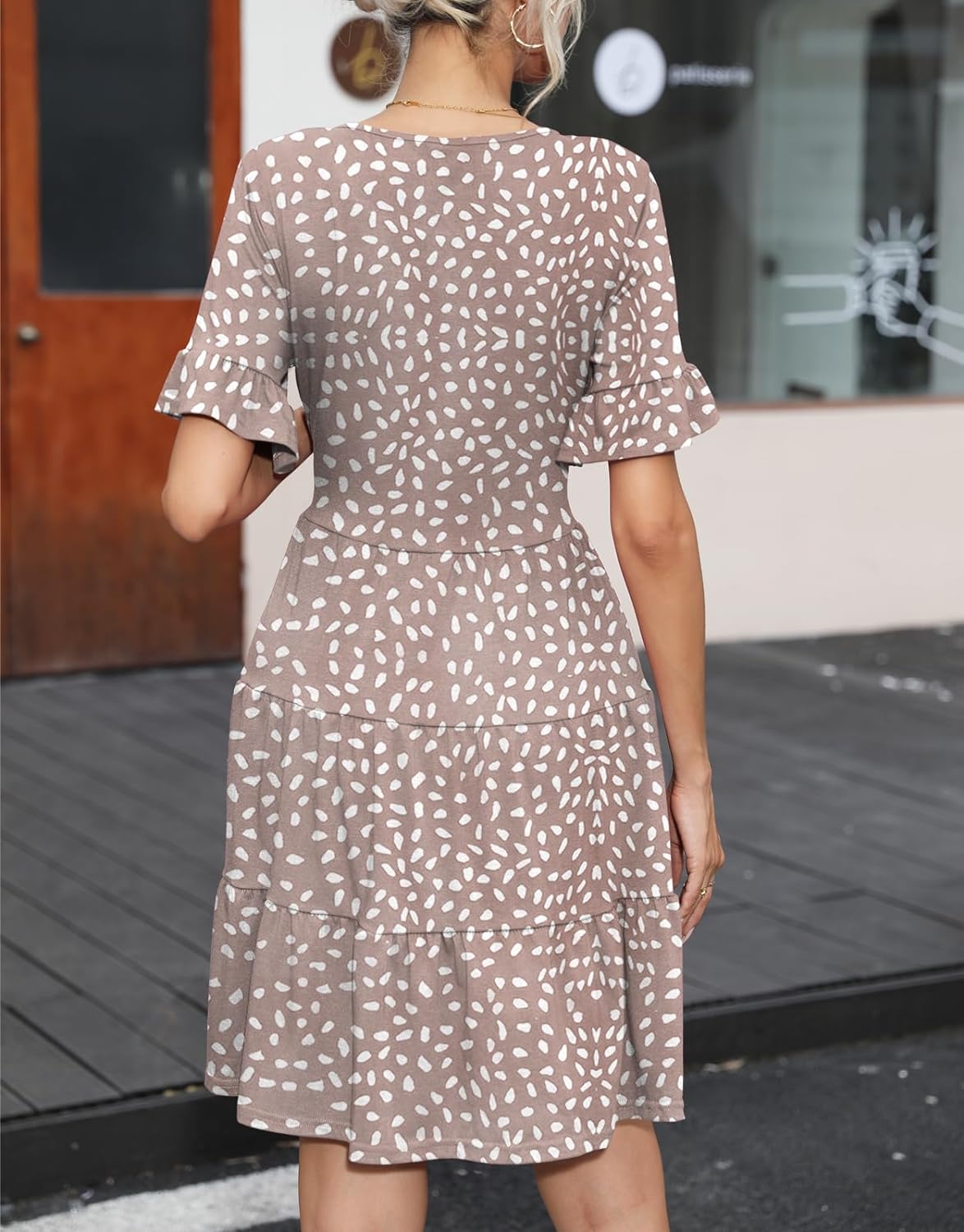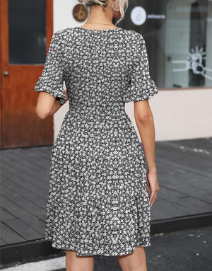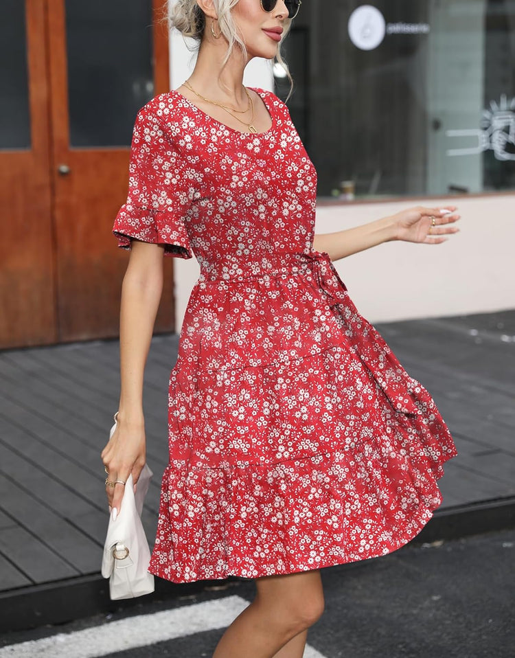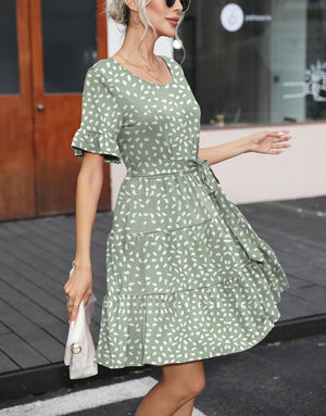 nclook Women's Summer Casual Dress Elastic Skin-Friendly Breathable Fabric Crew-Neck Adjustable Waist Belt with Pockets Black