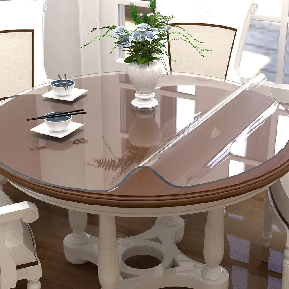 NECAUX Custom Multisize 1.5mm Thick Clear PVC Table Cover Protector - 48 x 48 Inch Waterproof PVC Table Protector 4 Foot Square Vinyl Non-Slip Desk Pad Mat