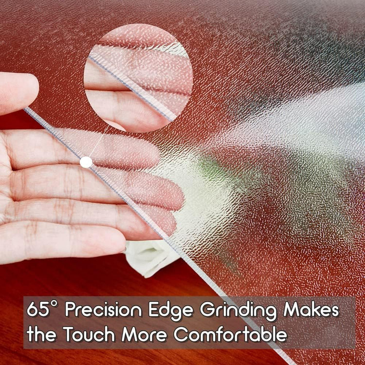 - The 1.5mm thicken crystal clear plastic PVC vinyl table covers, desk pads, protective mats protect your table, desk or tablecloth against scratches, scuffs, stains, spillage while keeping your desk tidy, clean and organized;