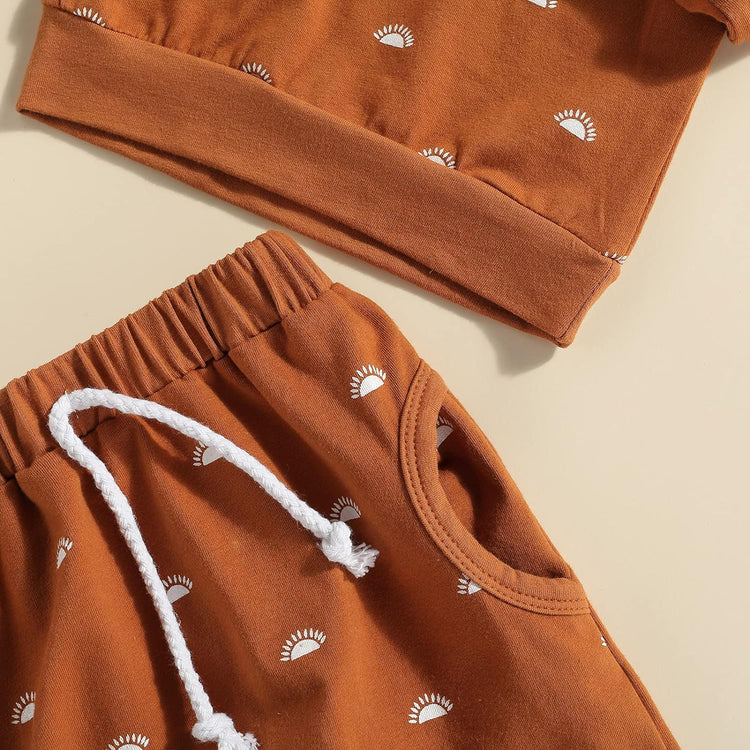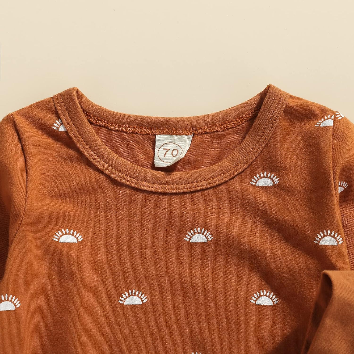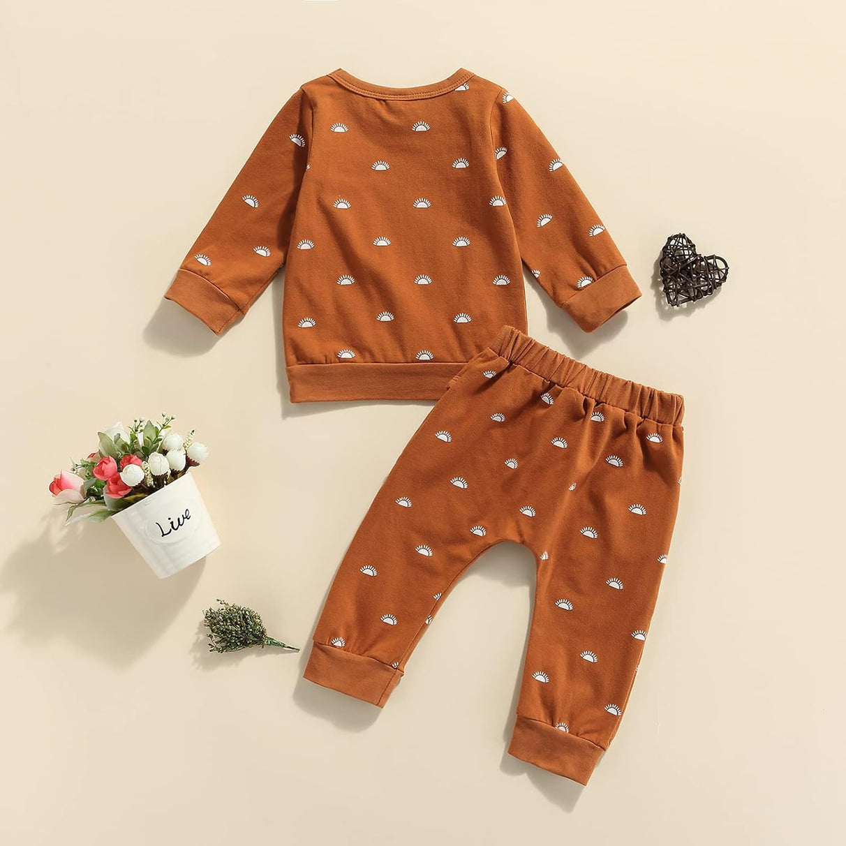 Newborn Baby Boys Clothes Infant Long Sleeve Sweatshirt Tops Pants Set Fall Winter Outfits, Brown Sunrise, 3-6 Months