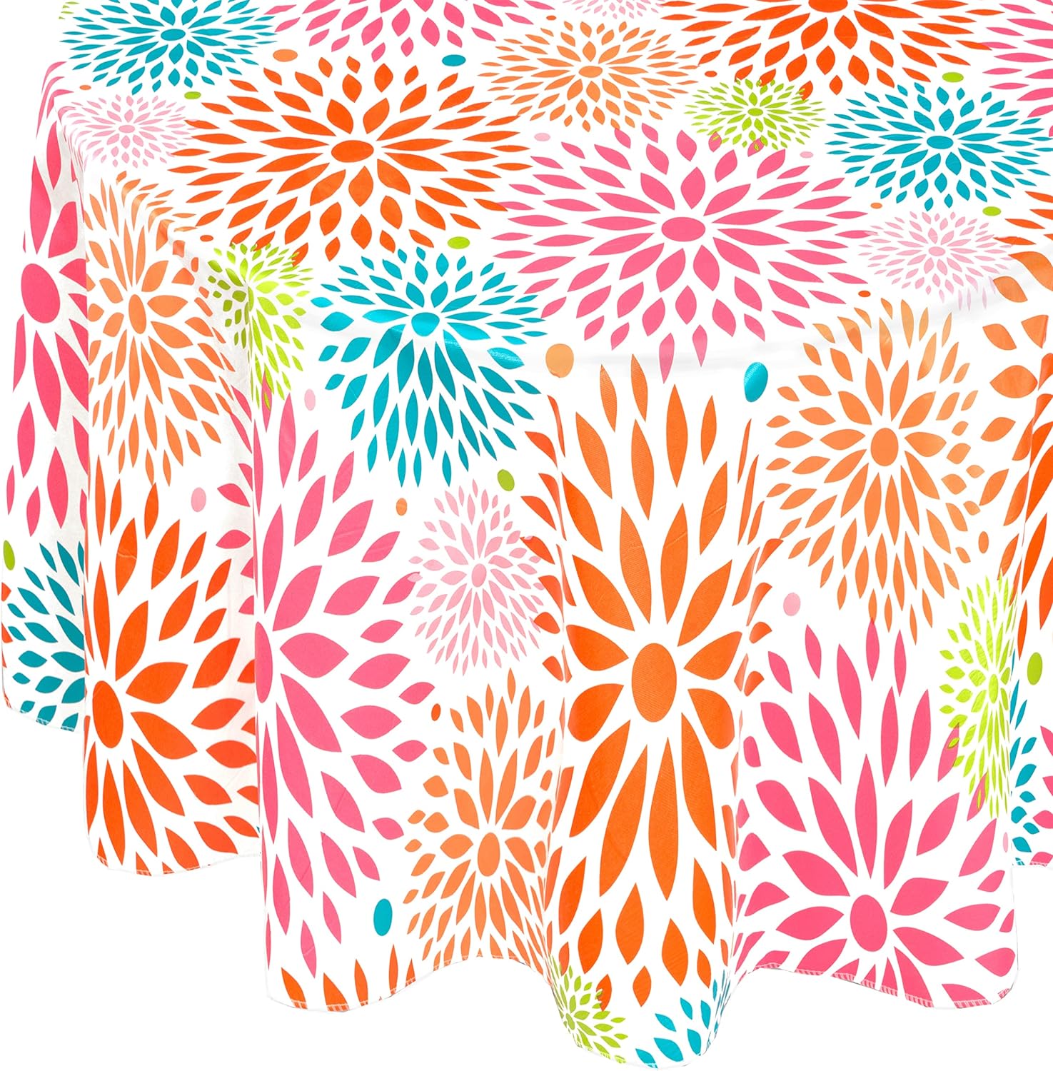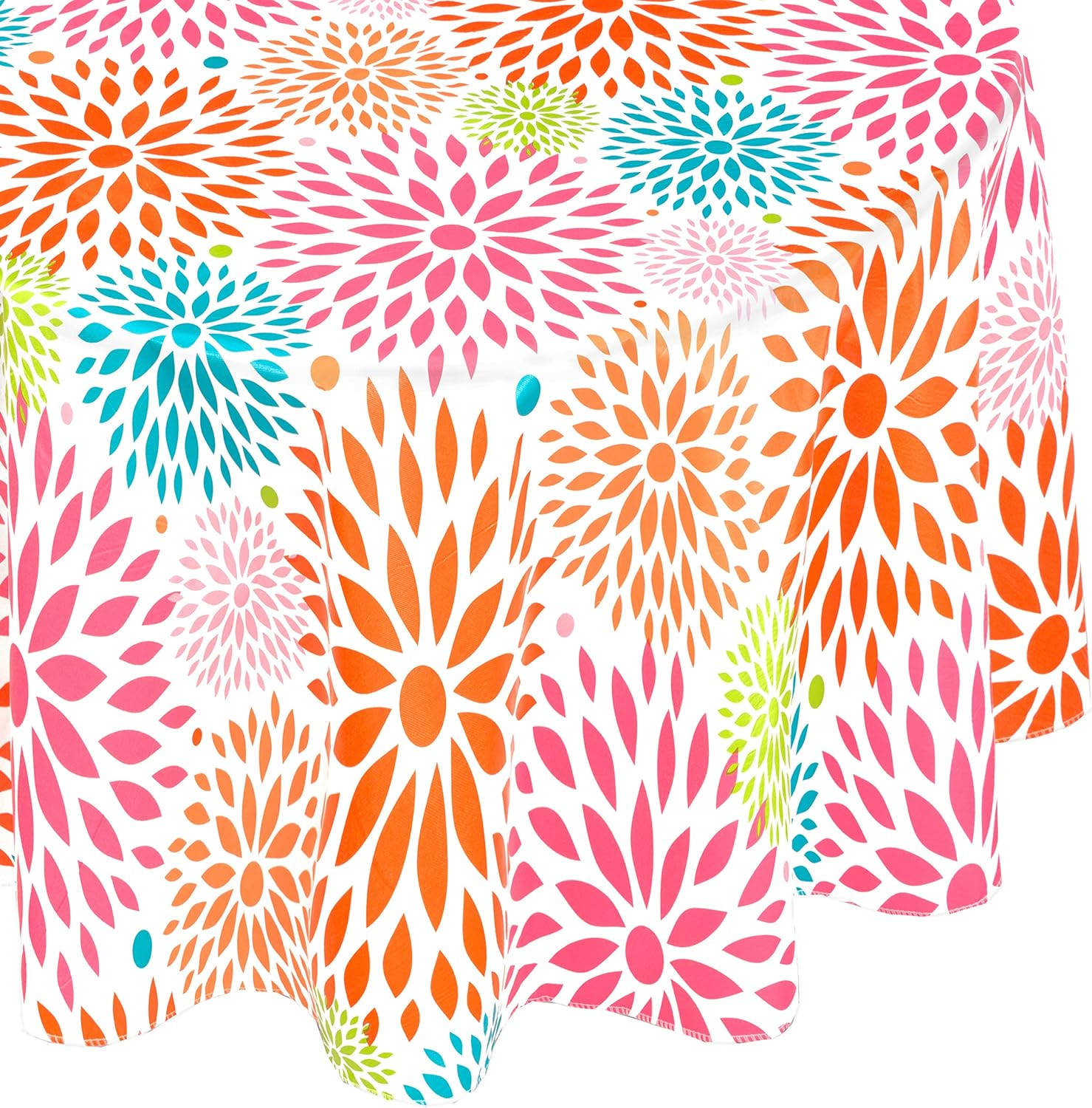 - FEATURES: Beautiful Easy Care Vinyl Tablecloth for Easter, Spring, Summer, Memorial Day, Mothers Day, Fathers Day, July 4th , Labor Day and Year Round Dining, Entertaining, Parties, Barbecues, Picnics, Restaurants and Cafeterias. Indoor and Outdoor Flannel Back Tablecloths are Easy Care - Just Wipe Clean - No Laundering Needed