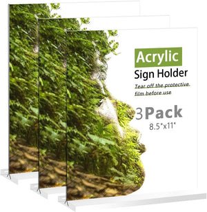 Newkita 8.5x11 Acrylic Sign Holder 3 Pack, Clear Acrylic Stands Transparent for Display, Double Sided for Restaurants, Menus, Table