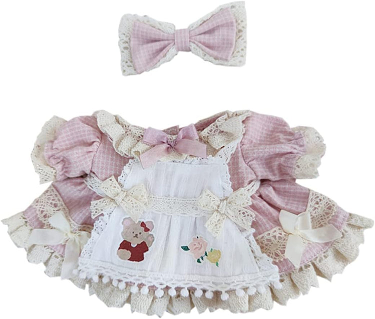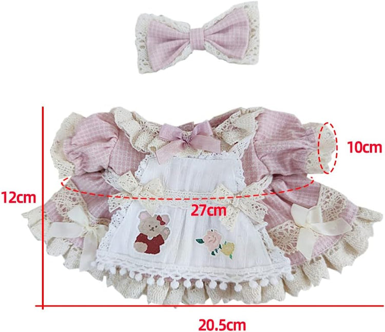 niannyyhouse 20cm Plush Doll Clothes Set Plaid Maid Dress 8in Kpop Stuffed Doll Clothing (Green)