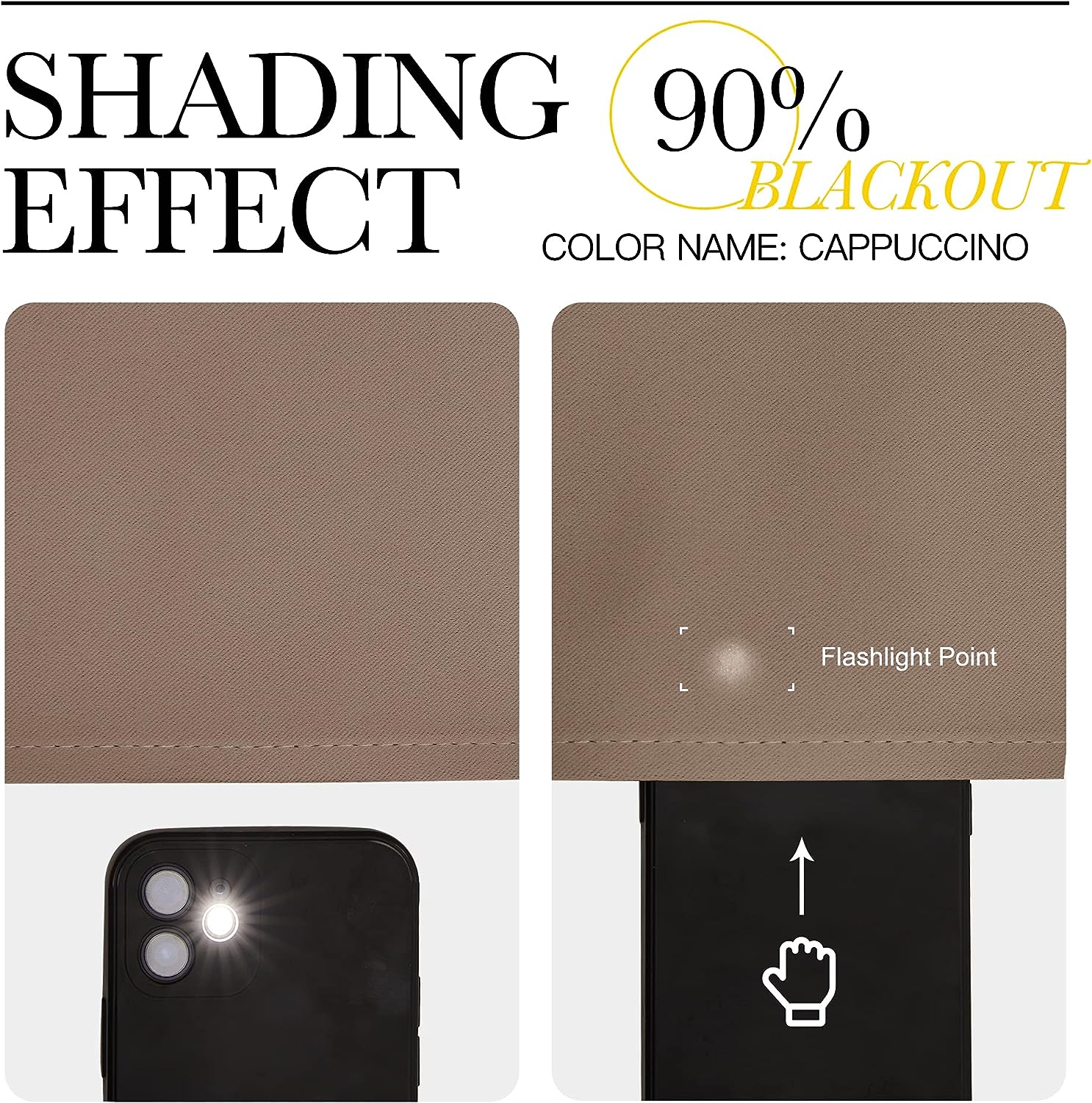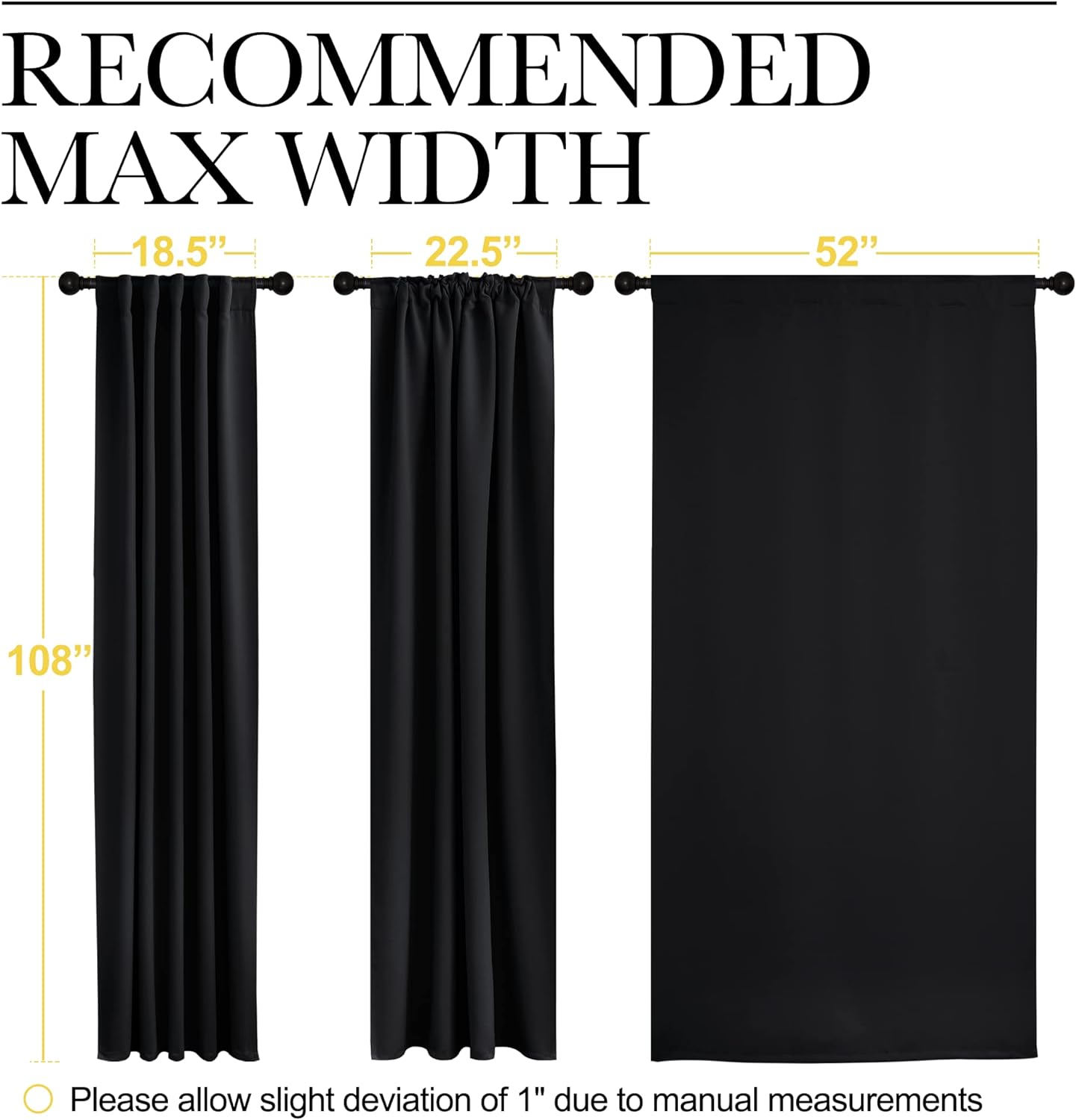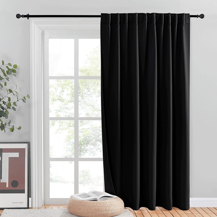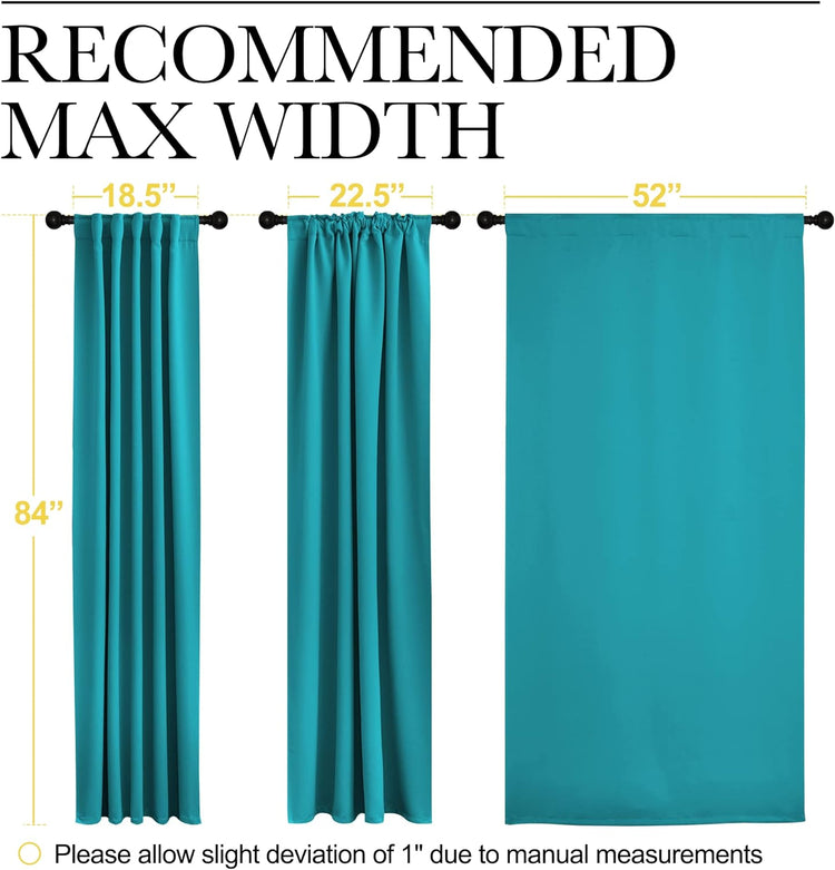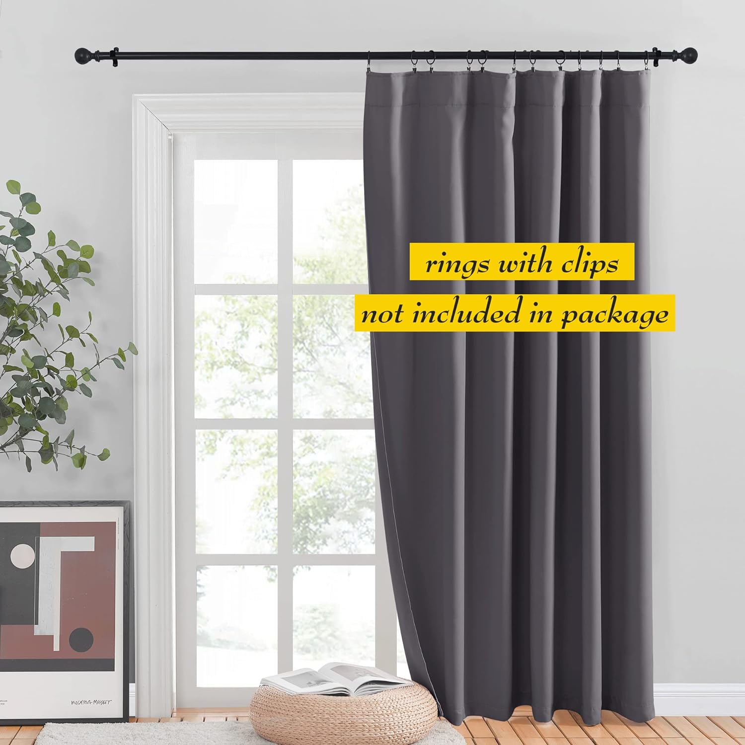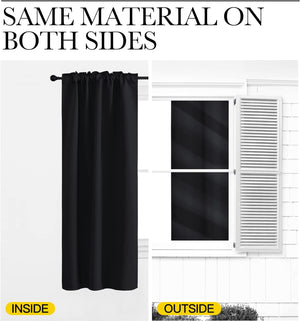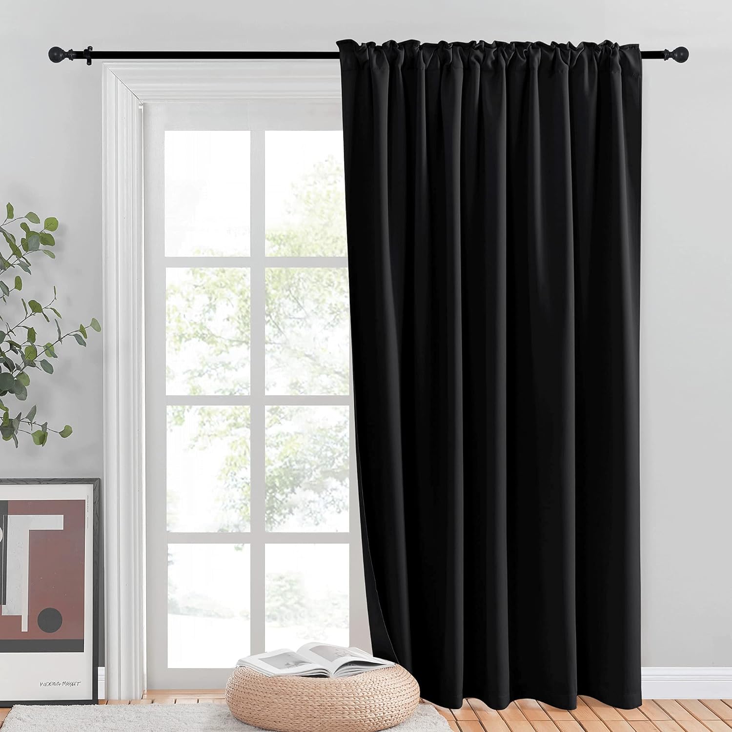 - READY-MADE: Set includes 2 blackout curtain panels, each panel measuring 52" wide x 95" length with 7 back loops. Quality fabric without liner feels soft and heavy. Thread trimmed and wrinkle-free, both sides are the same color.