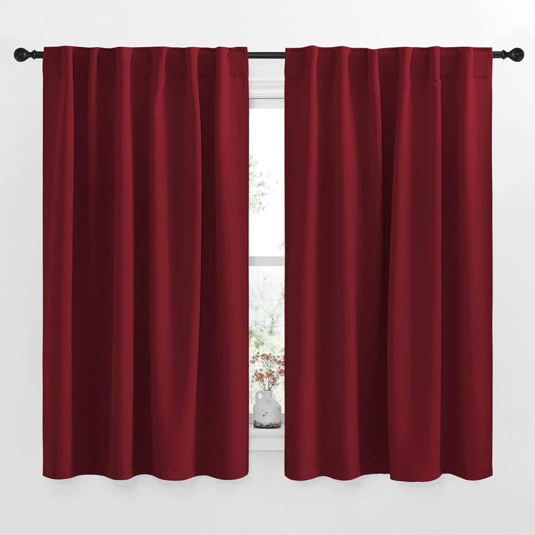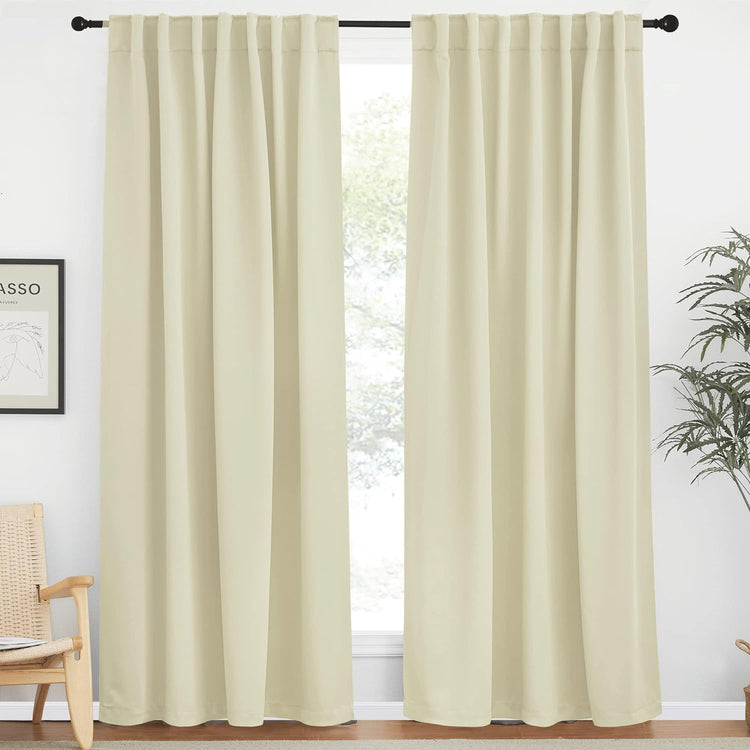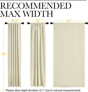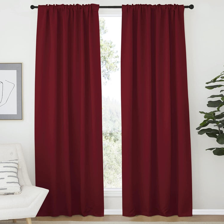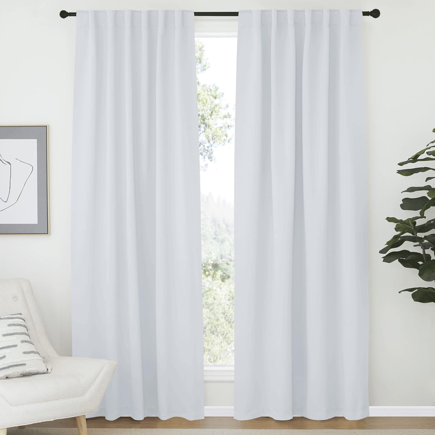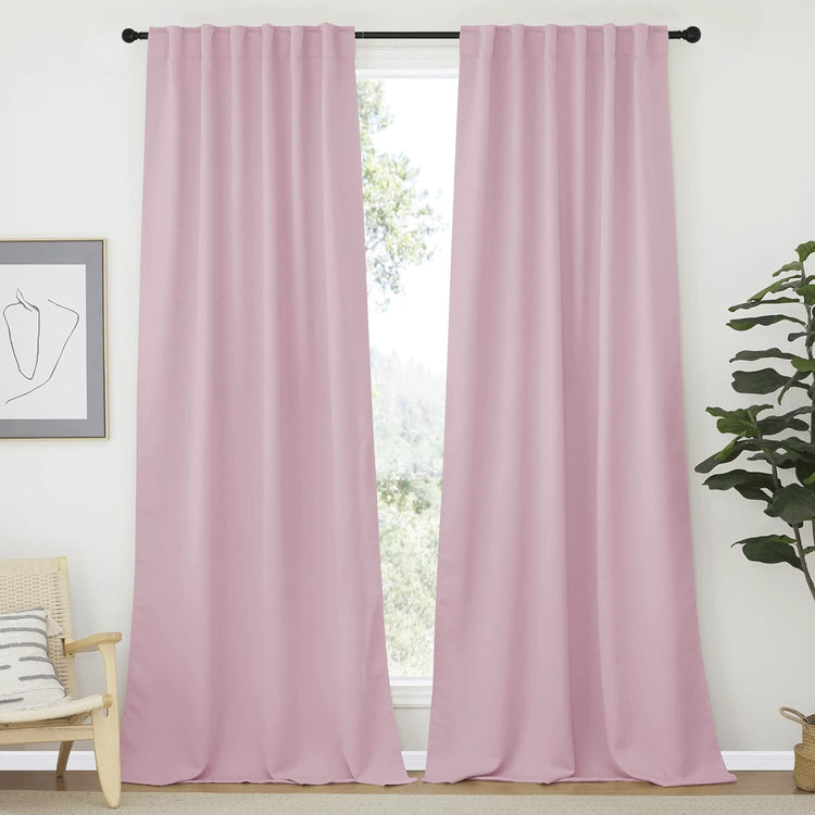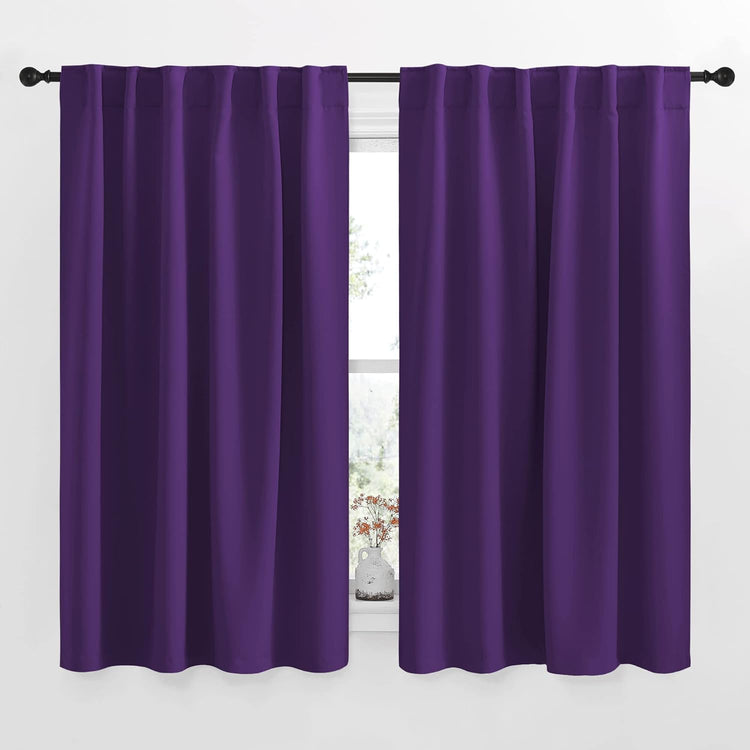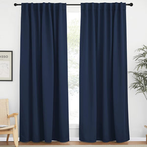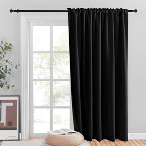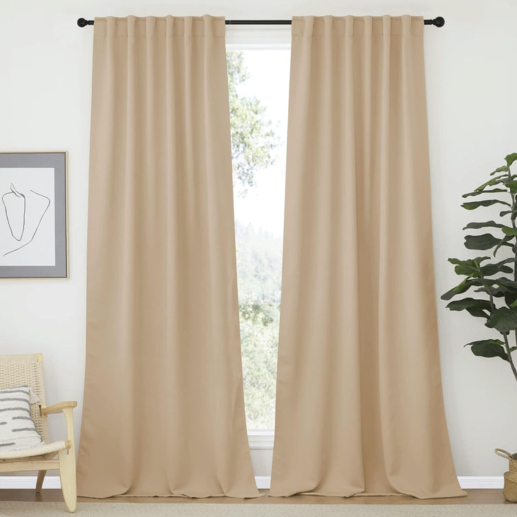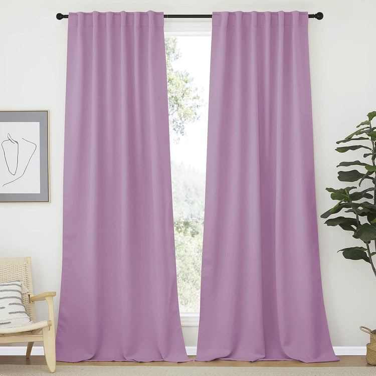 - READY-MADE: Set includes 2 blackout curtain panels, each panel measuring 52" wide x 95" length with 7 back loops. Quality fabric without liner feels soft and heavy. Thread trimmed and wrinkle-free, both sides are the same color.