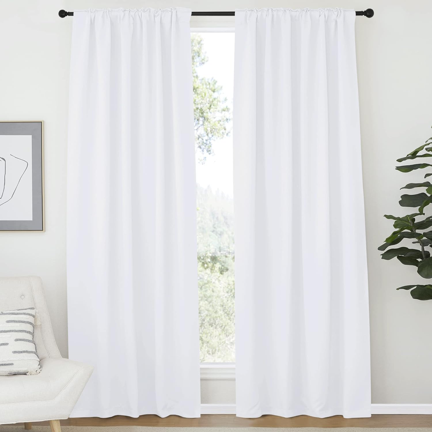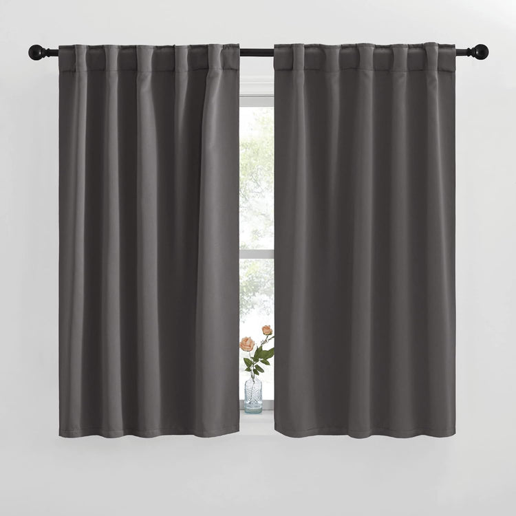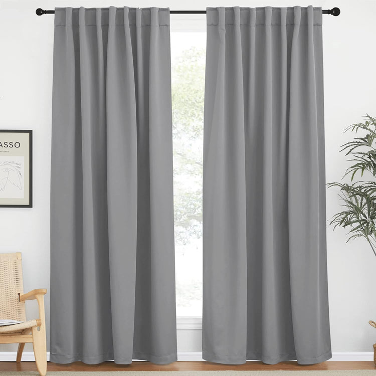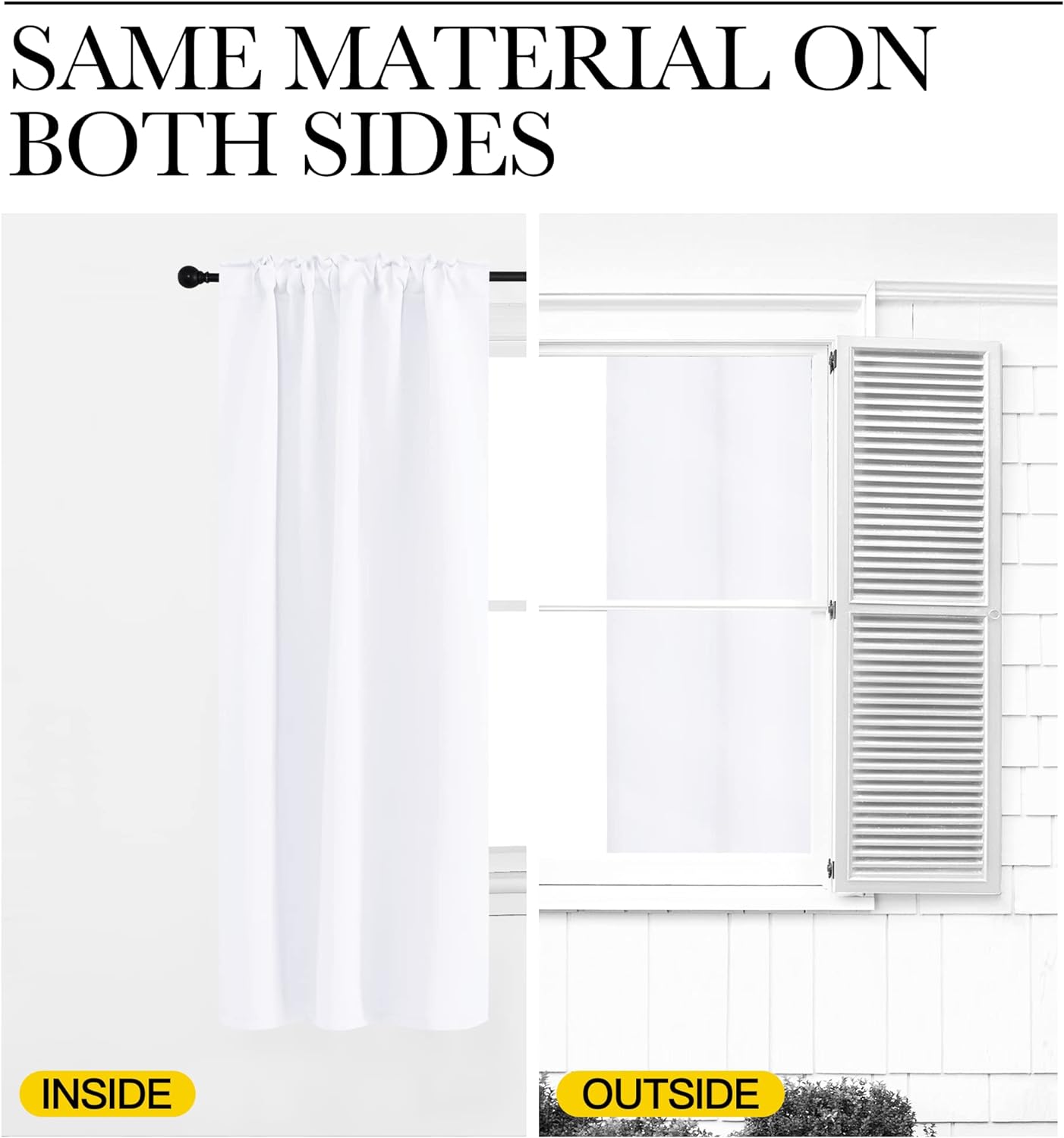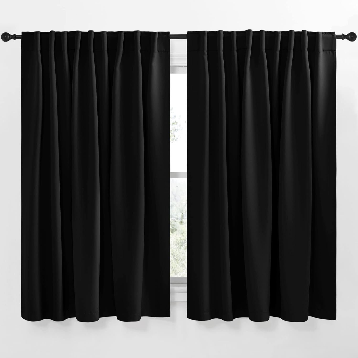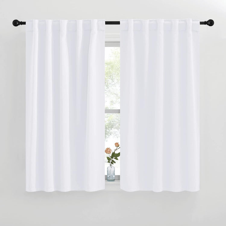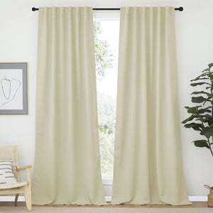 - READY-MADE: Set includes 2 blackout curtain panels, each panel measuring 52" wide x 95" length with 7 back loops. Quality fabric without liner feels soft and heavy. Thread trimmed and wrinkle-free, both sides are the same color.