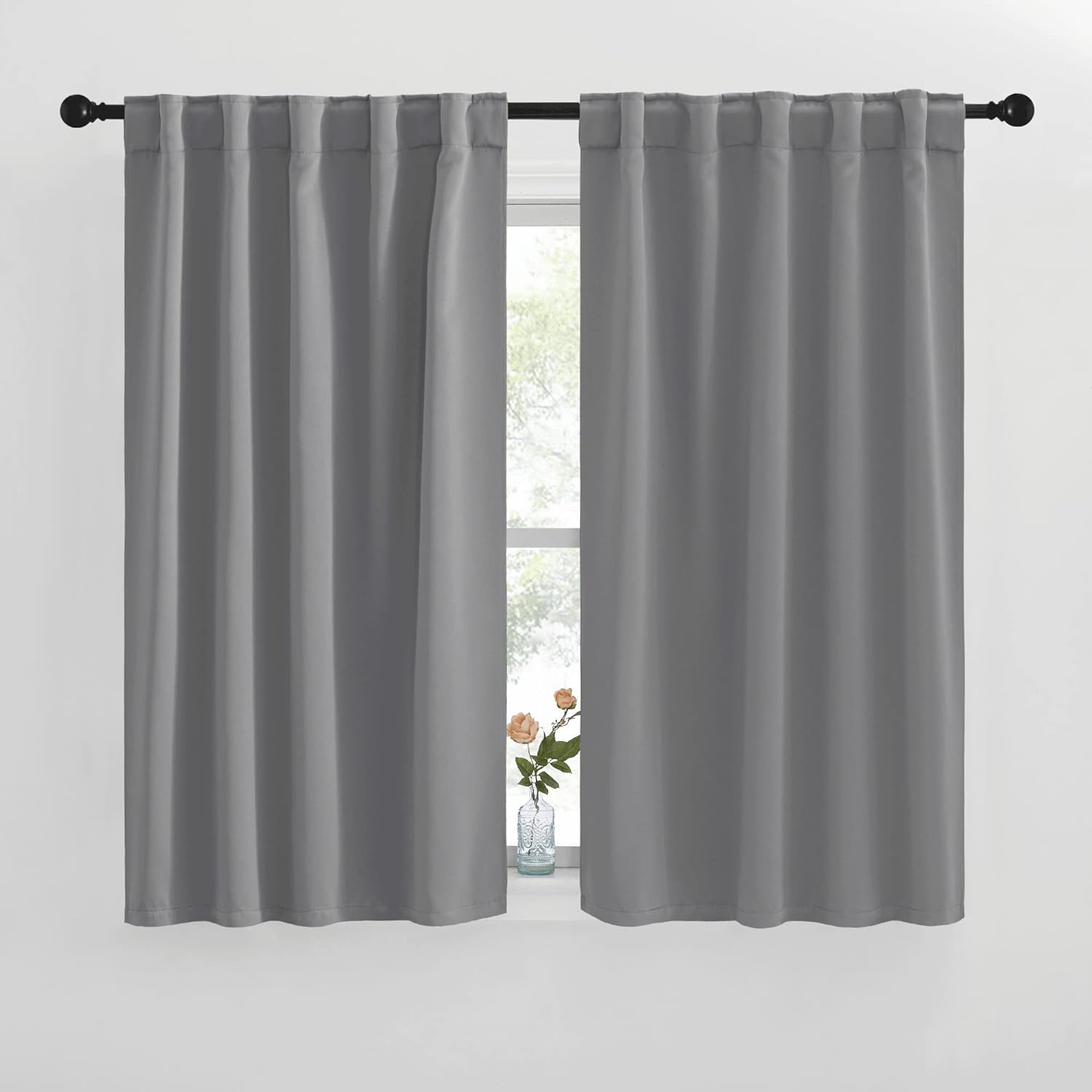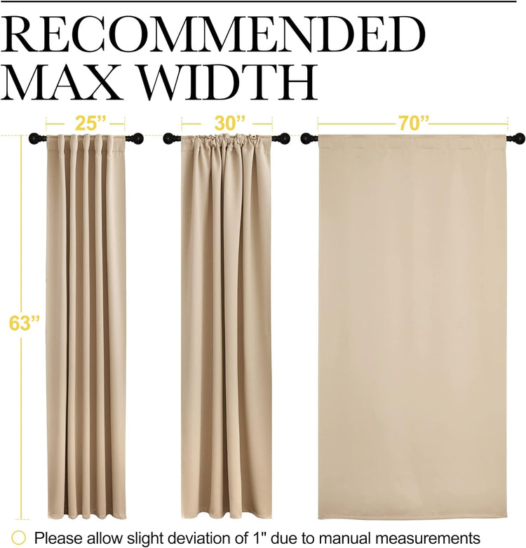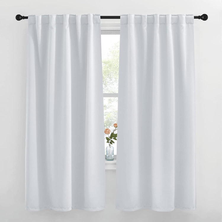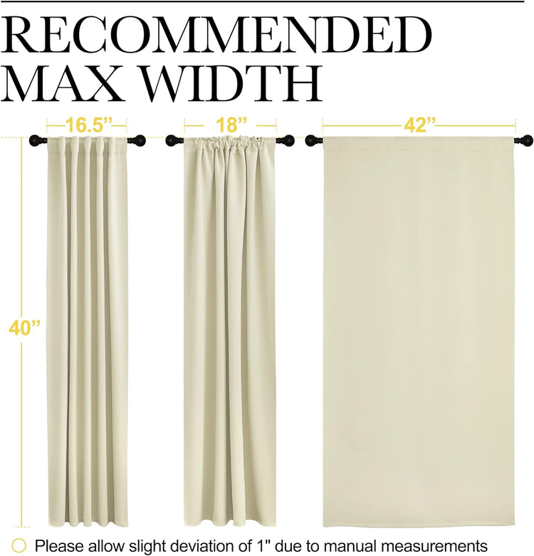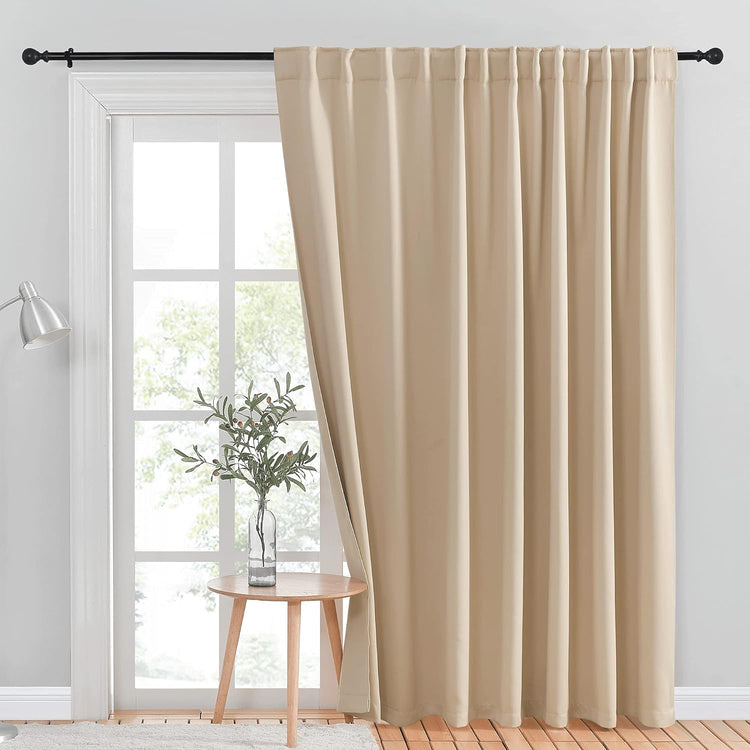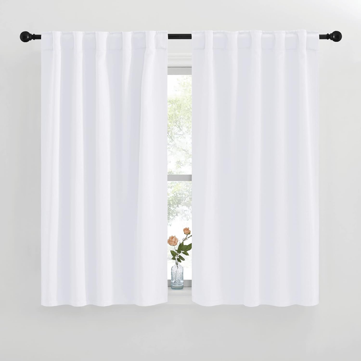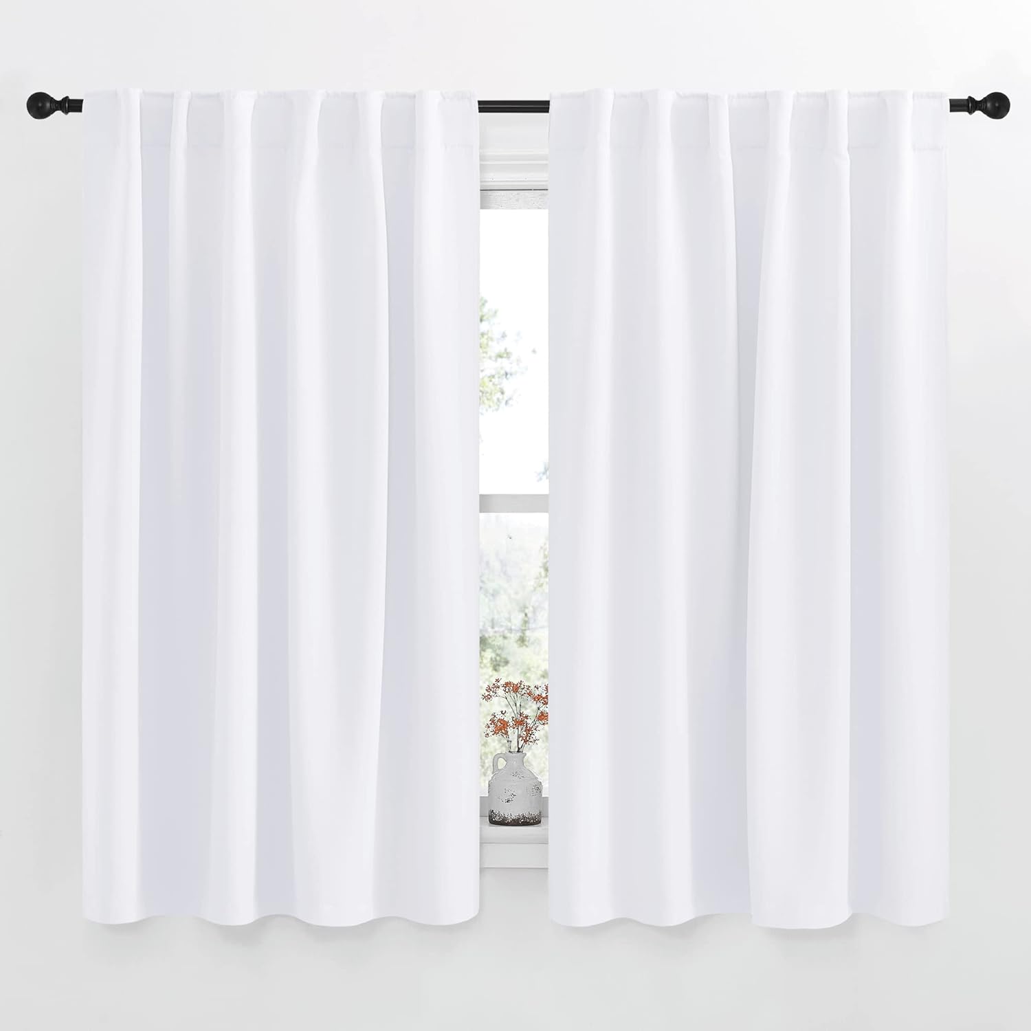 - READY-MADE: Set includes 2 blackout curtain panels, each panel measuring 52" wide x 95" length with 7 back loops. Quality fabric without liner feels soft and heavy. Thread trimmed and wrinkle-free, both sides are the same color.