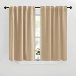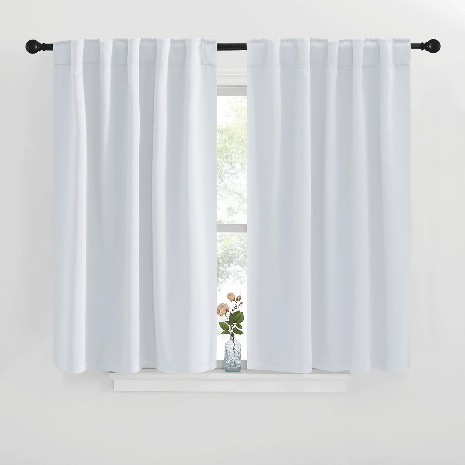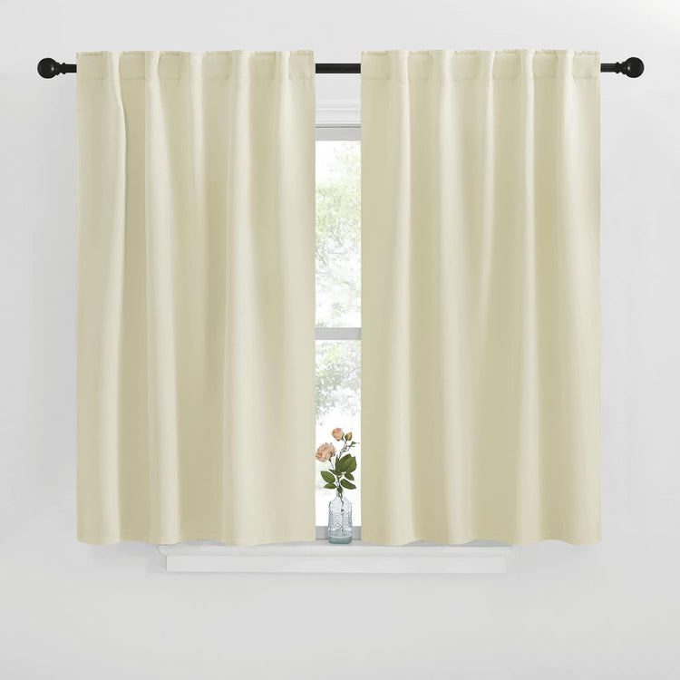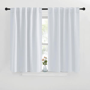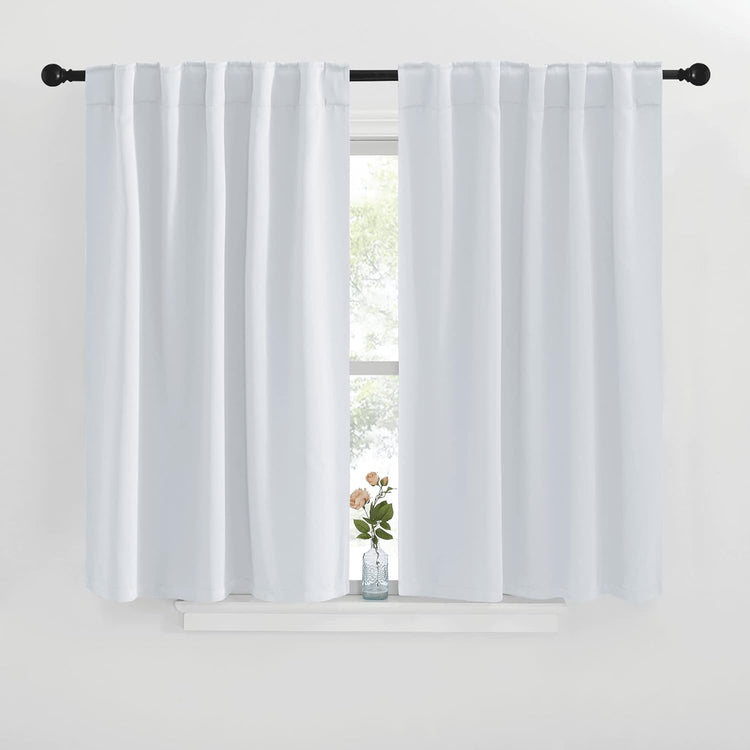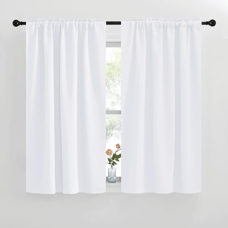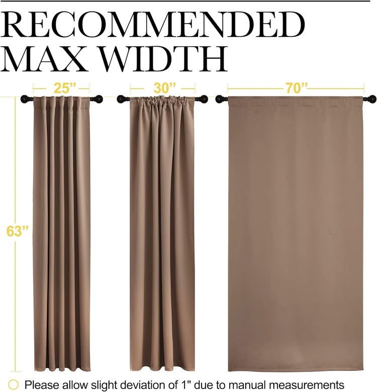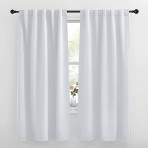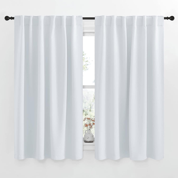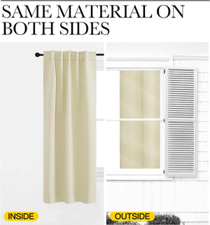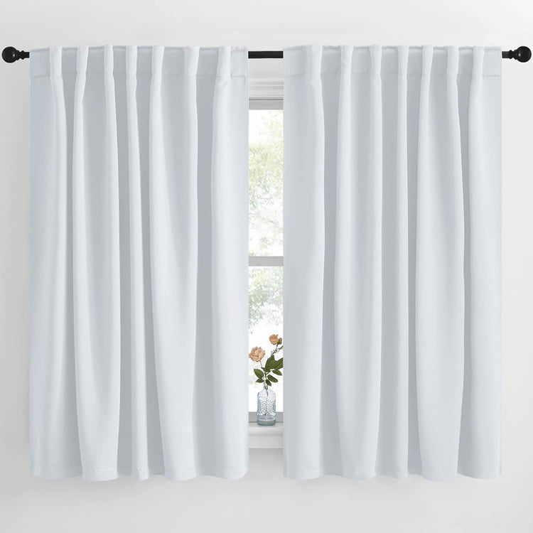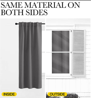 - READY-MADE: Set includes 2 blackout curtain panels, each panel measuring 52" wide x 95" length with 7 back loops. Quality fabric without liner feels soft and heavy. Thread trimmed and wrinkle-free, both sides are the same color.