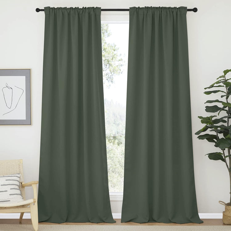 NICETOWN Bedroom Curtains Blackout Curtain Panels - (Dark Mallard Color) 52x95 inch, 2 PCs, Insulating Energy Saving Solid Rod Pocket Blackout Drapes