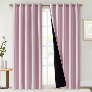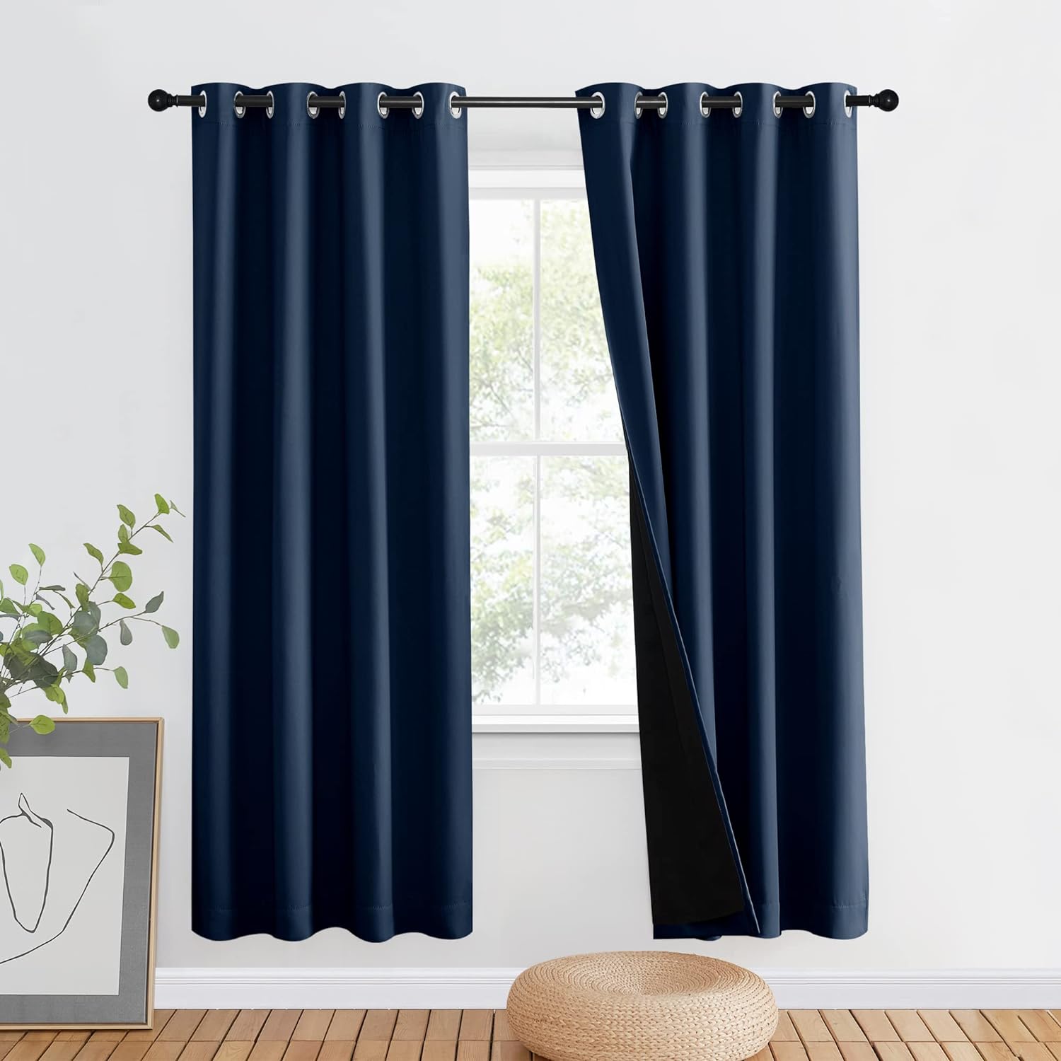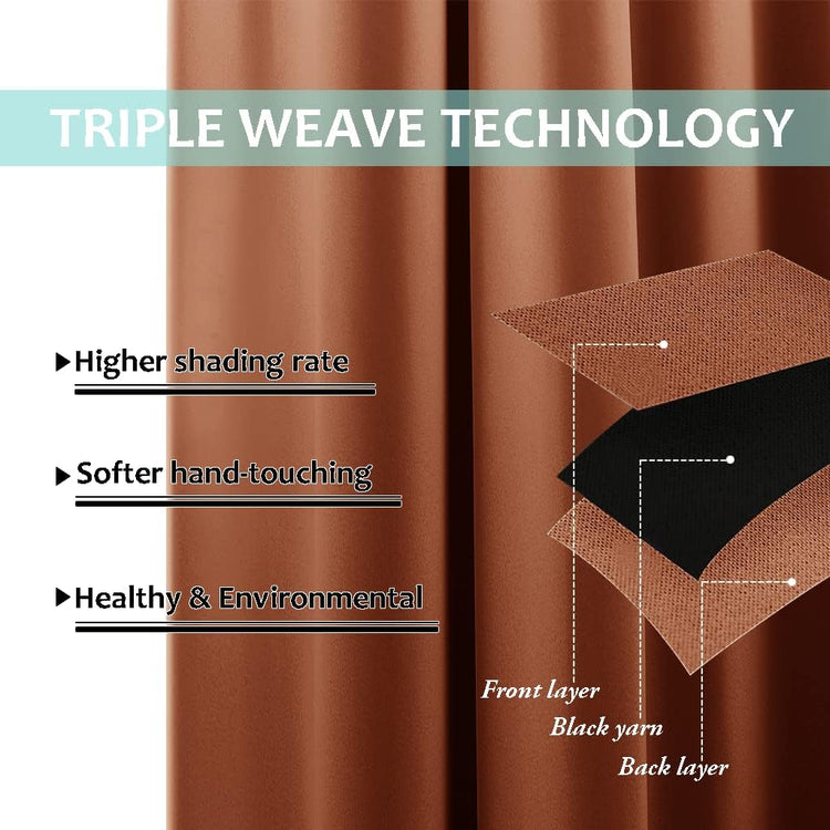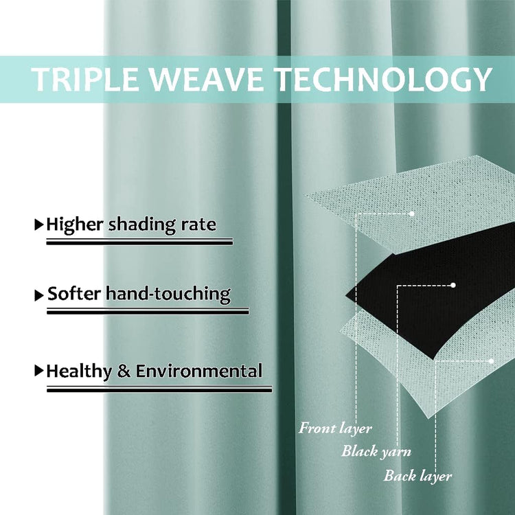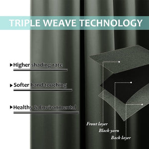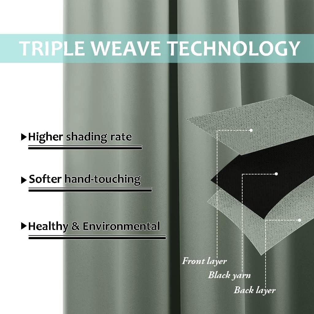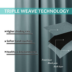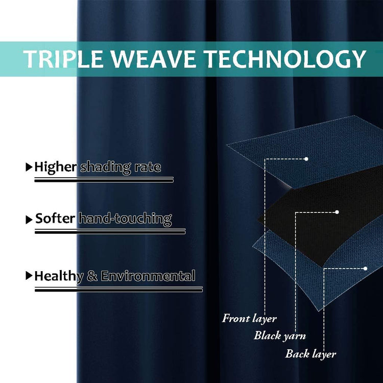 - NICE MATERIAL: This smooth, soft and heavy-duty blackout fabric is woven with three-layer construction. The middle layer of black yarns creates a curtain panel that is excellent for blocking out 85%-99% of light (Dark color works better on blocking light) while adding a pop of color to your room.
