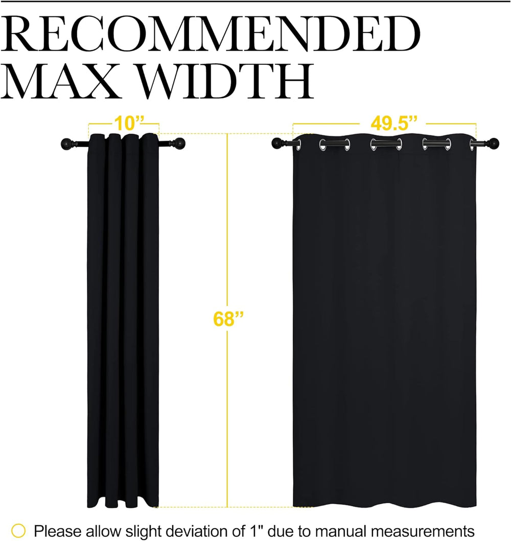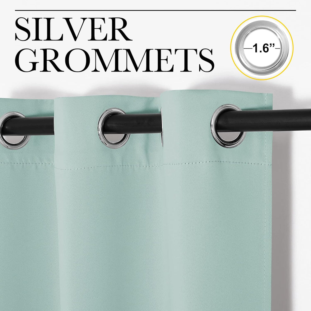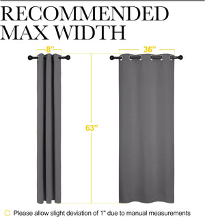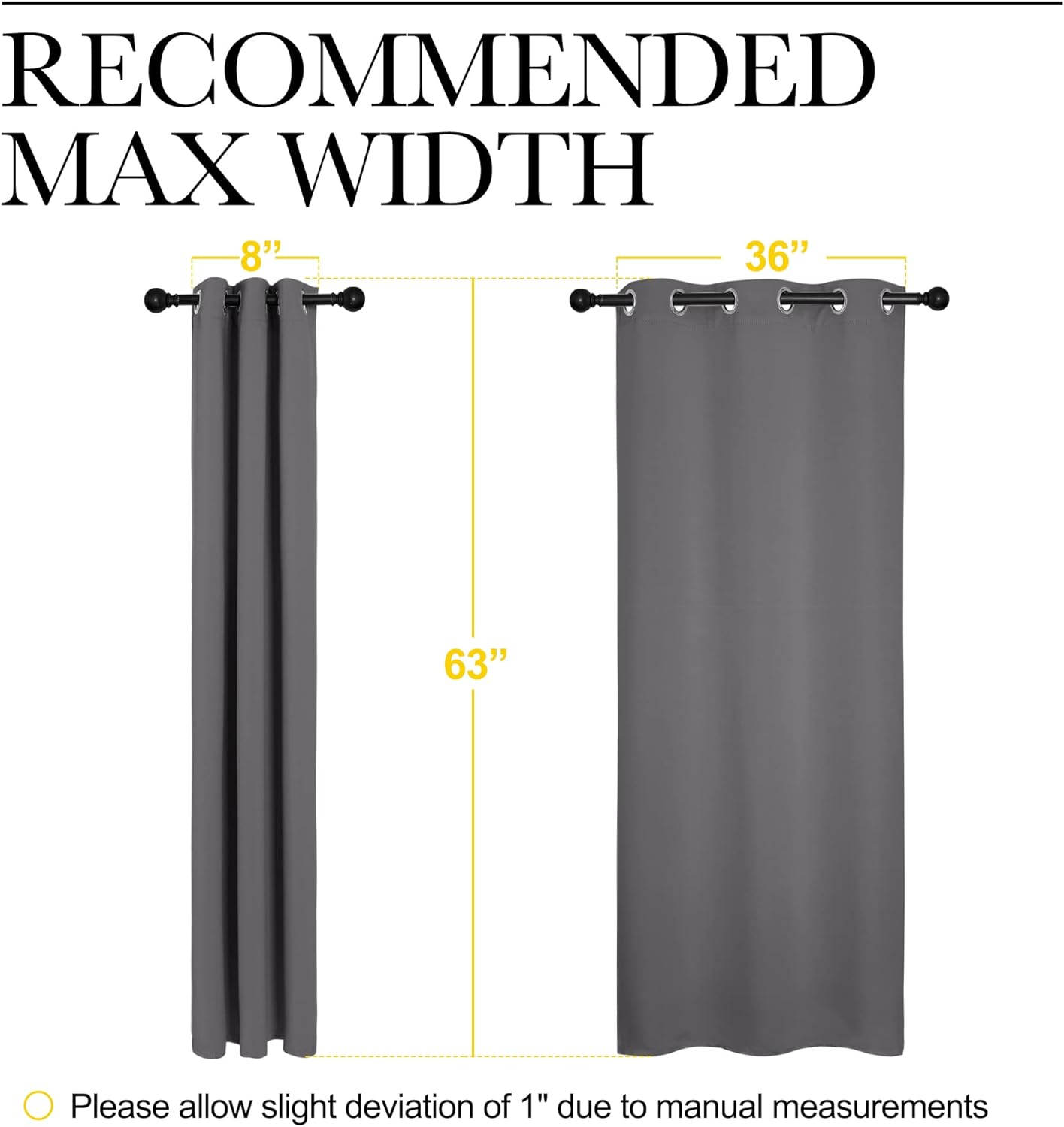 - Elegant Design: 2 panels per package. Each Blackout Curtain measures 66" wide x 102" long. The design of silver grommet (1.6-inch inner diameter) creates casual elegance for your house, which makes the curtains easy to install and slide.