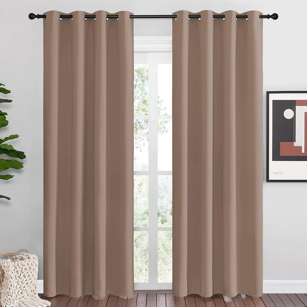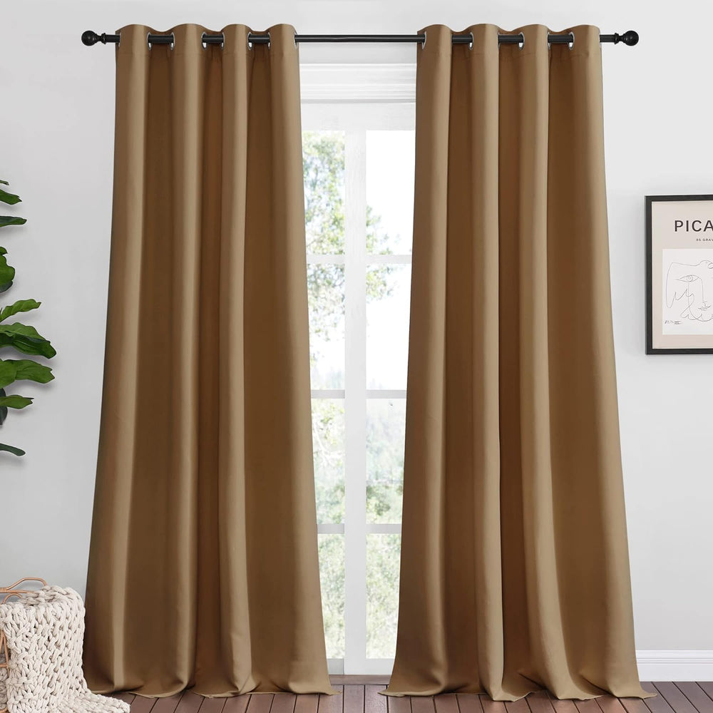 NICETOWN Room Darkening Curtains & Drapes for Room Divider - Grommet Thermal Curtains Light & Sound Reducing Window Treatments for Living Room (W66 x L102, Biscotti Beige, 1 Pair)