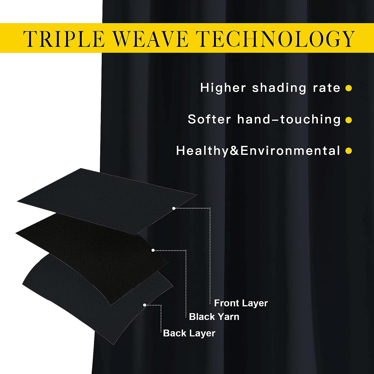 - Amazing Material: Super heavy and soft Blackout Curtain Panels are very upmarket. Besides, 85%-99% light blocking, thermal insulated, soundproof, and energy-efficient. Thread trimmed and wrinkle-free, both sides are the same color.