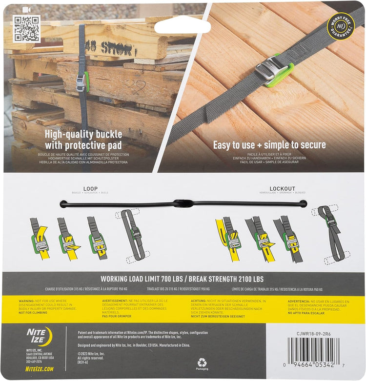 Nite Ize CJWR18-09-2R6 CamJam Strap, Unique Cam Buckle + Extra Strong, 700 lb Load Limit, 18 ft Webbing, 2 Pack Tie Down, Charcoal