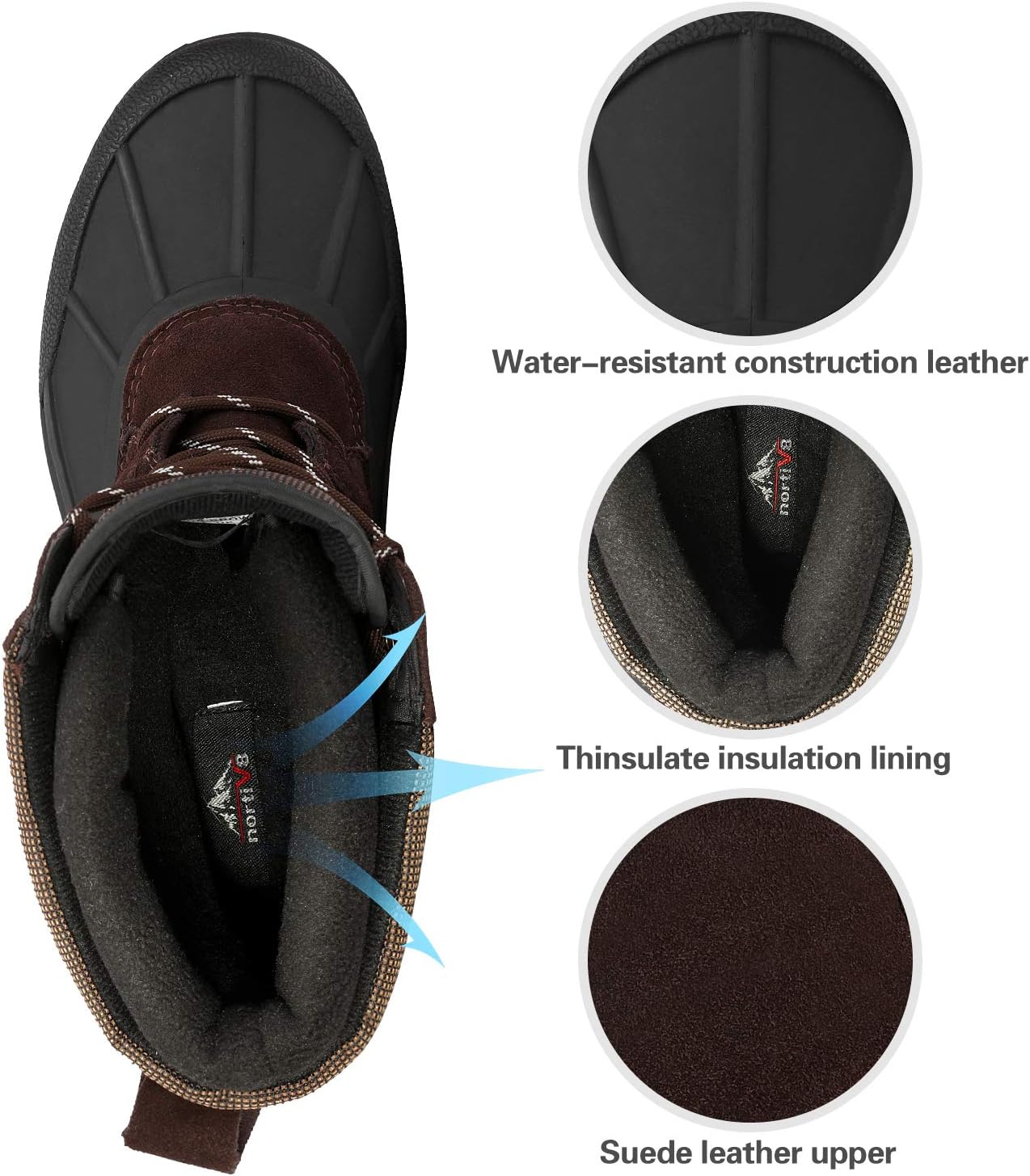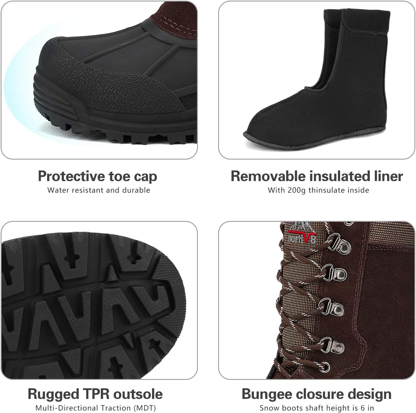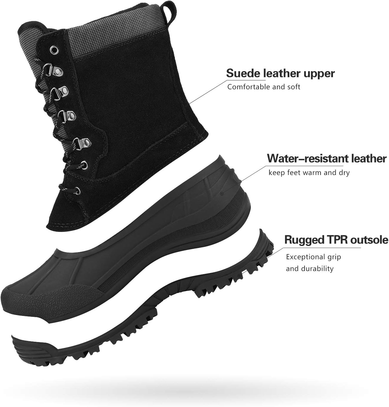 NORTIV 8 Men's Insulated Waterproof Winter Snow Boots