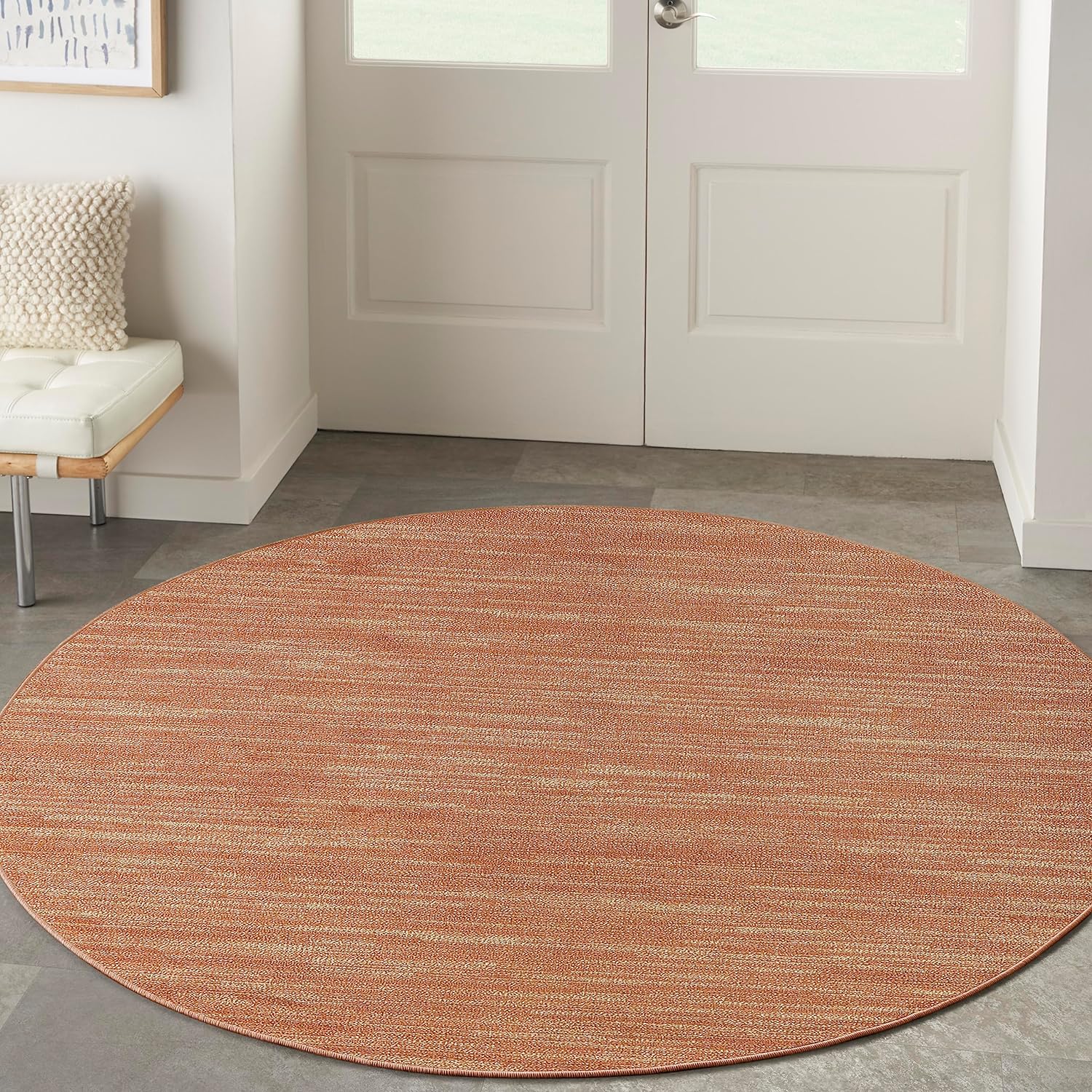 Nourison Essentials Indoor/Outdoor Pink 9' x Square Area Rug, Easy Cleaning, Non Shedding, Bed Room, Living Room, Dining Room, Backyard, Deck, Patio (9 Square)