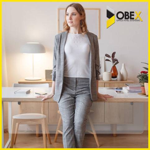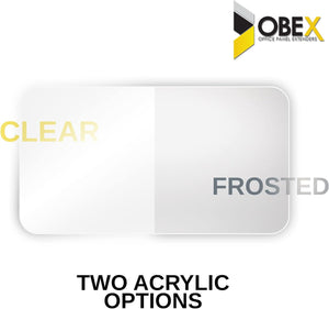 Obex Privacy Screen & Office Modesty Panel for Office Cubicles 18" x 42" (Frosted) Add some privacy and a barrier beneath your workspace with the Obex modesty panel. Super easy to install and made of premium acrylic, the frosted office divider still provides light penetration with a modern aesthetic.