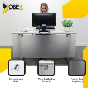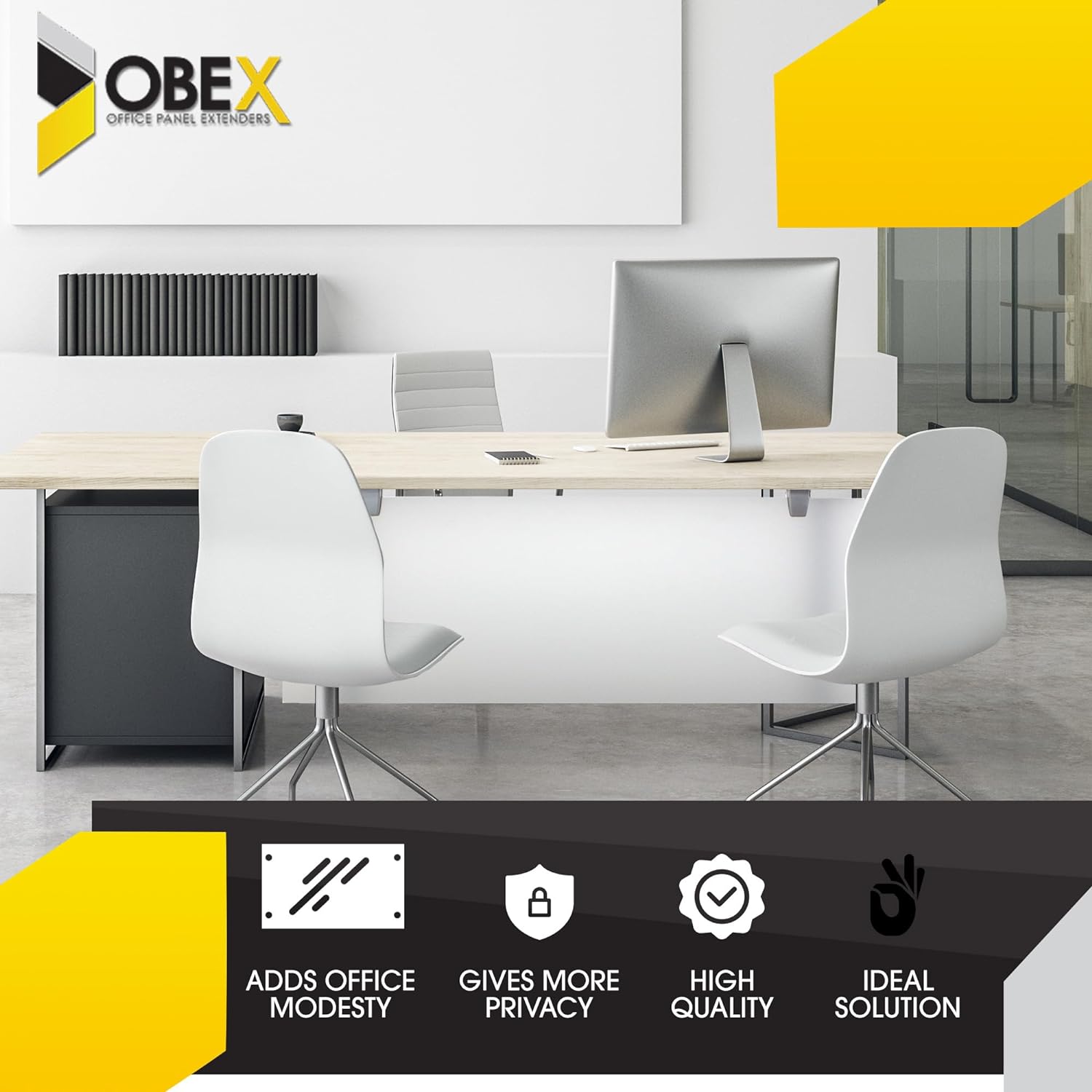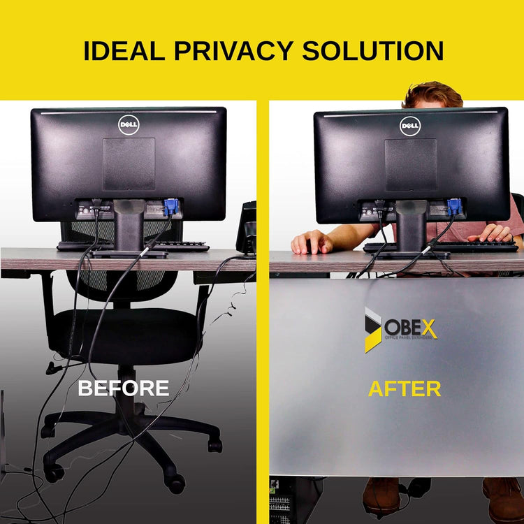 - PRIVACY MODESTY PANEL: Add some privacy and a barrier beneath your workspace with the Obex modesty panel. Super easy to install and made of premium acrylic, the frosted office divider still provides light penetration with a modern aesthetic.