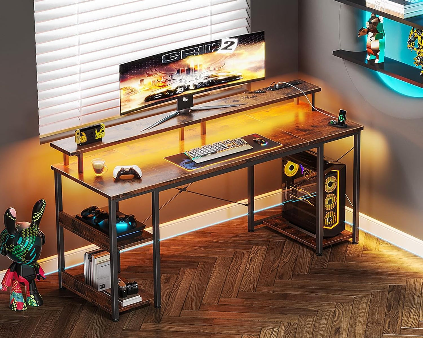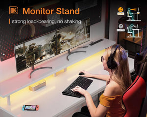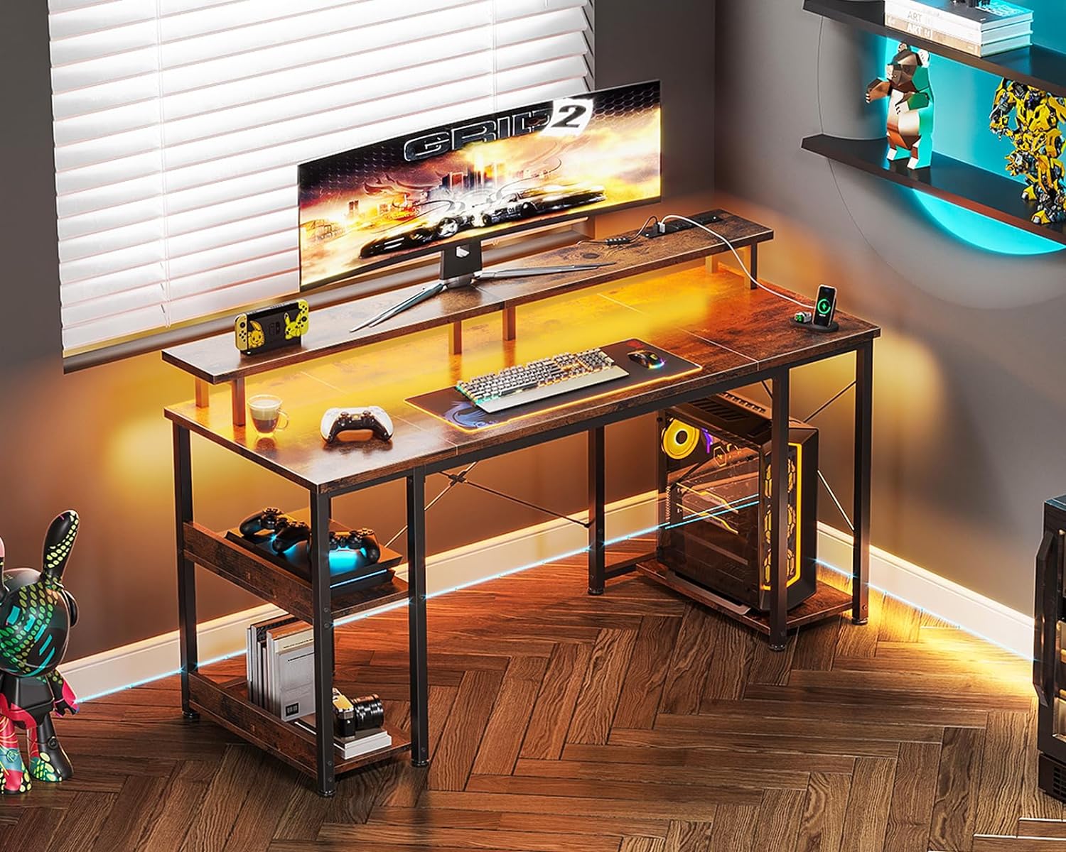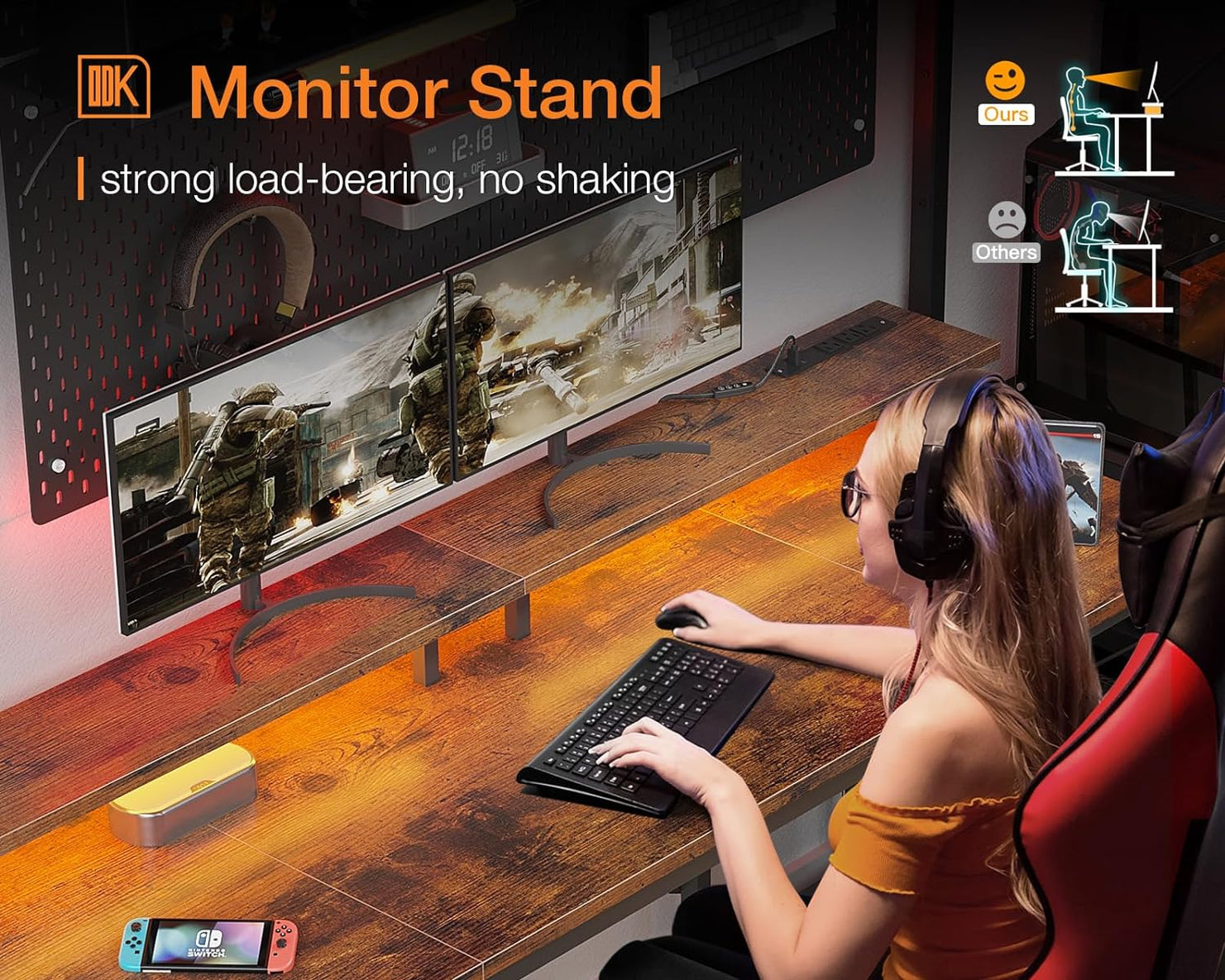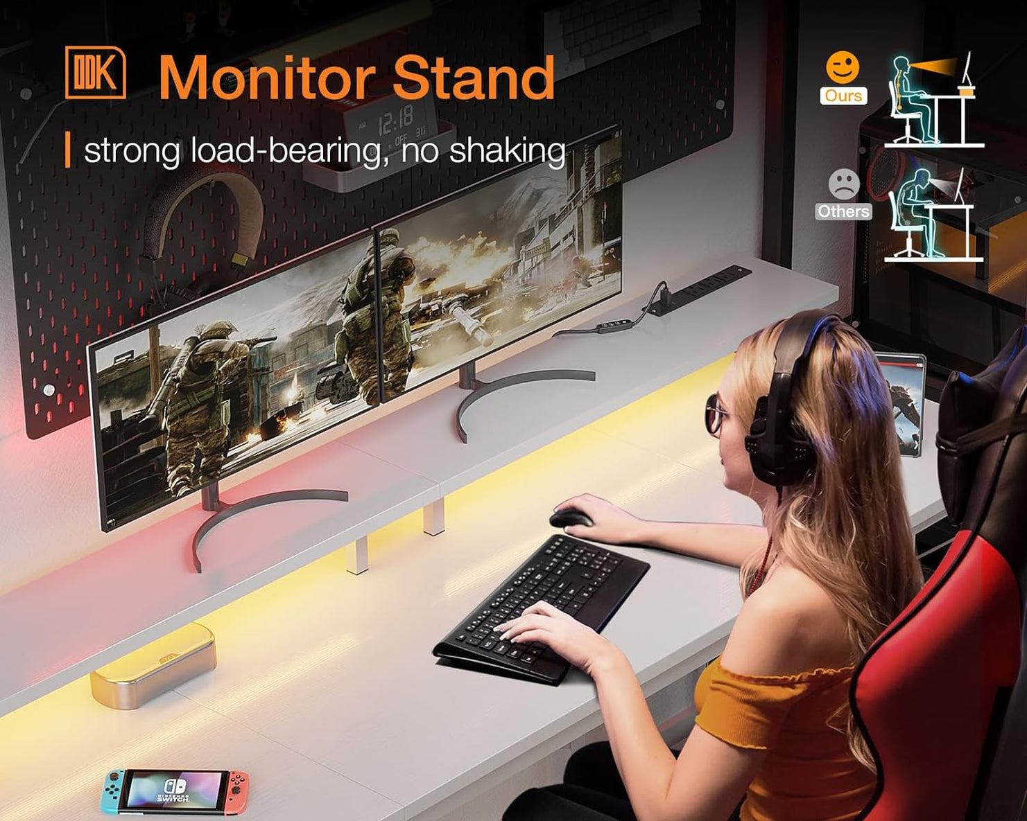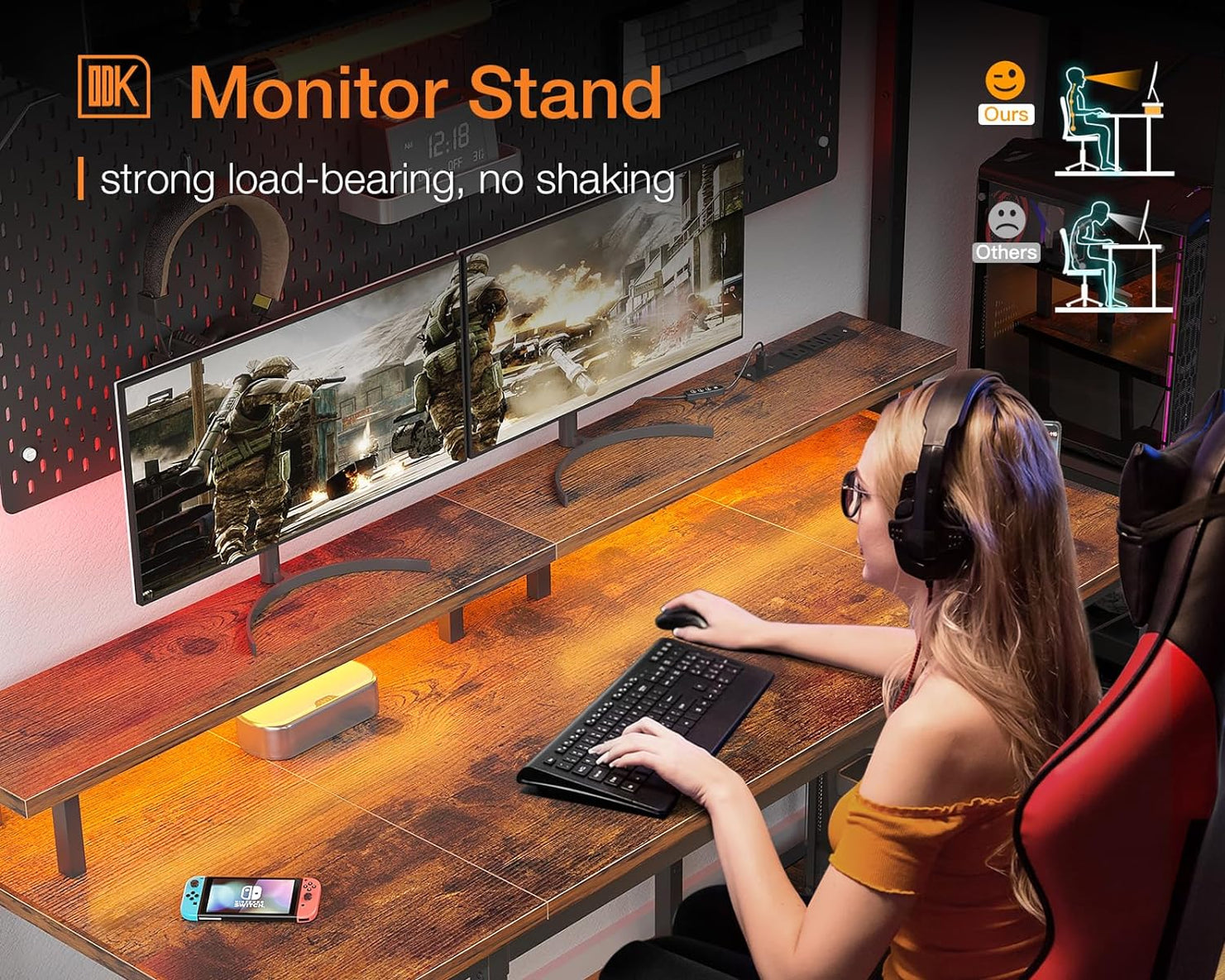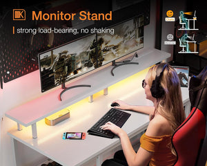 - Gaming Enviroment: Our desk features a full monitor stand accommodate two monitors or laptops, built-in LED lighting create strong gaming ambiance.