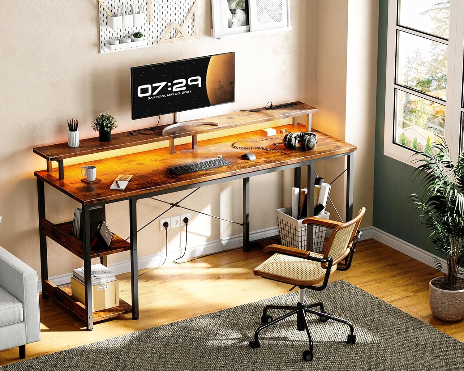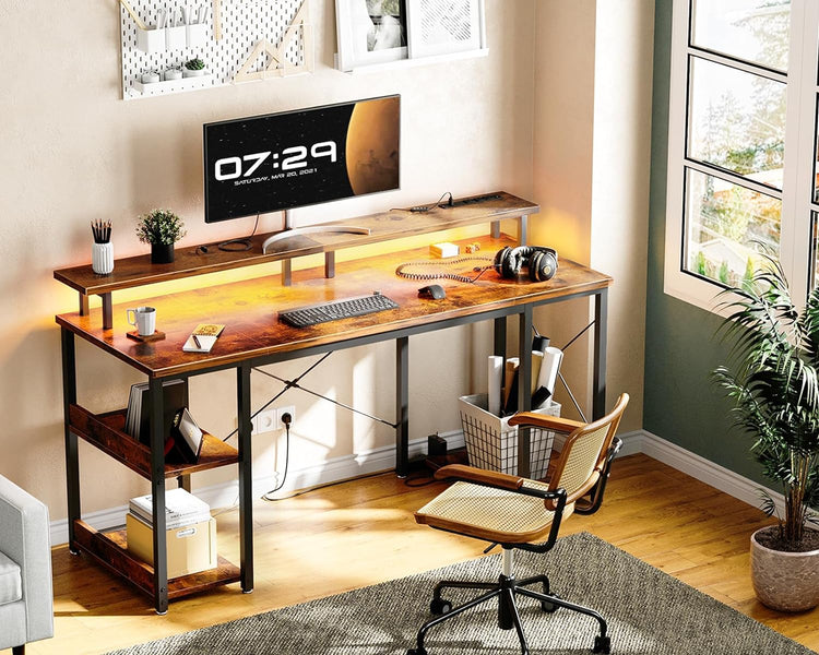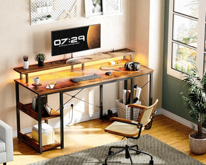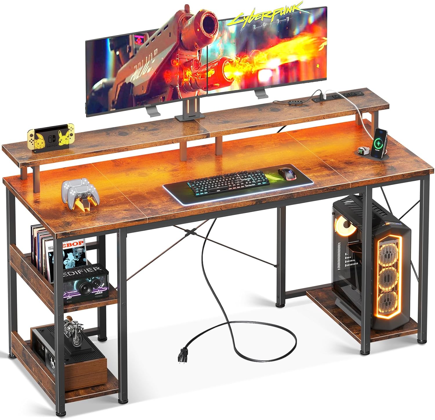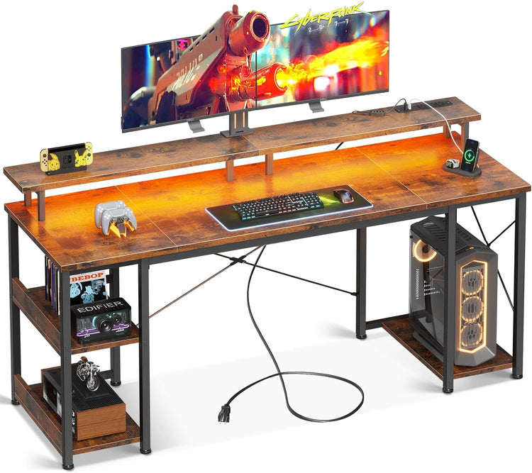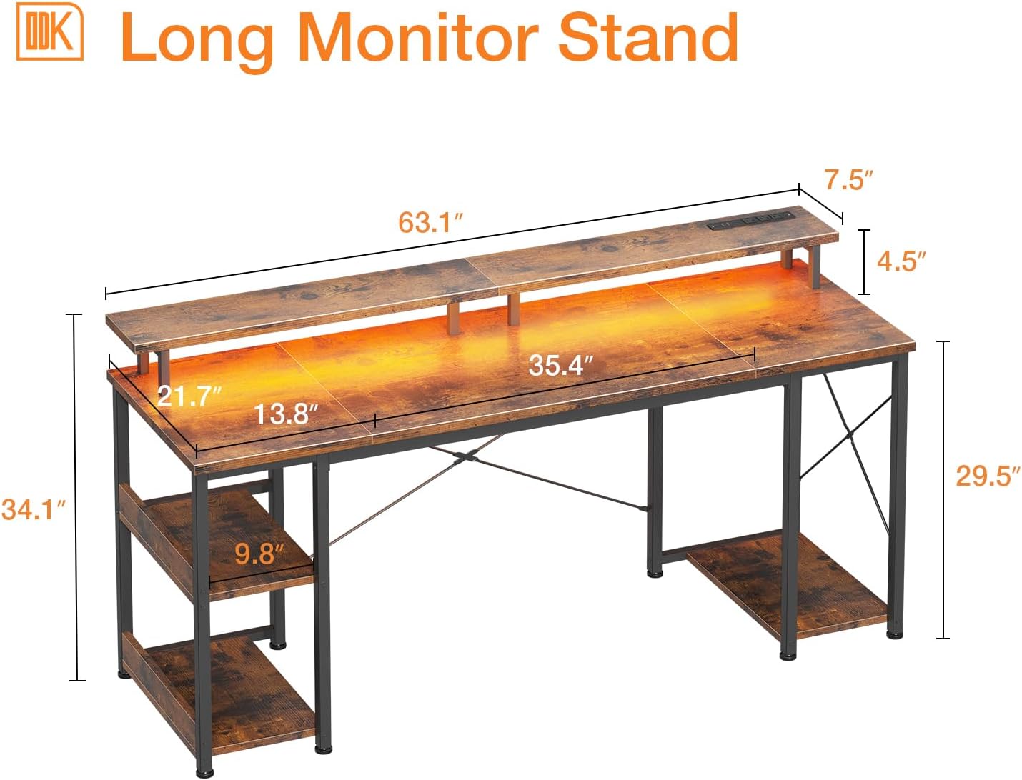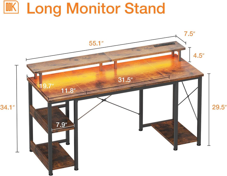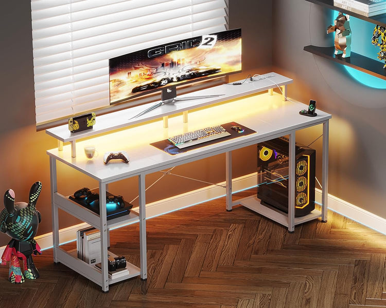 - Gaming Enviroment: Our desk features a full monitor stand accommodate two monitors or laptops, built-in LED lighting create strong gaming ambiance.