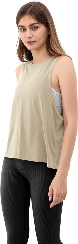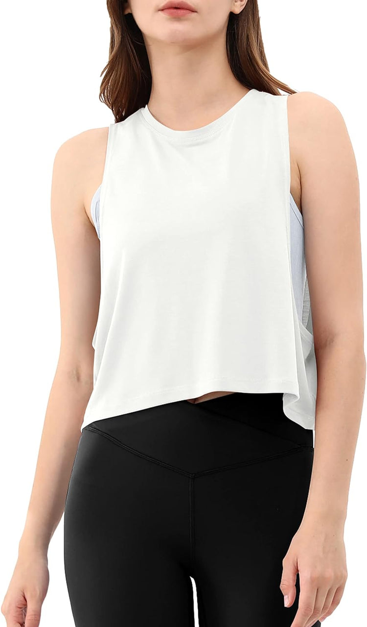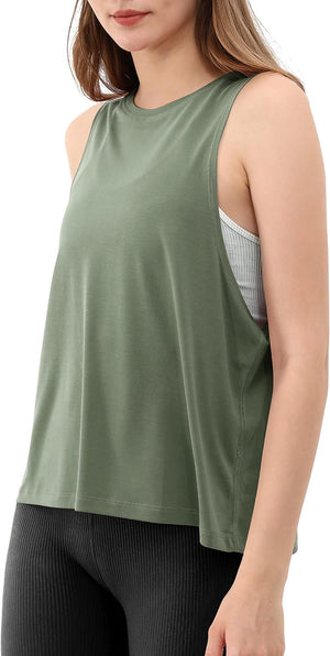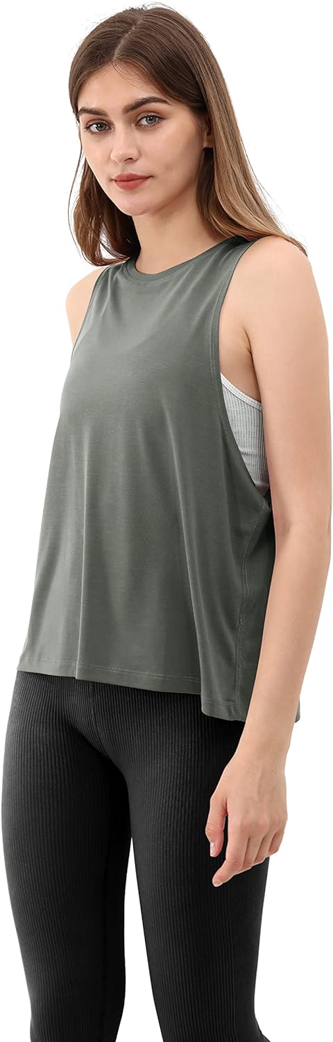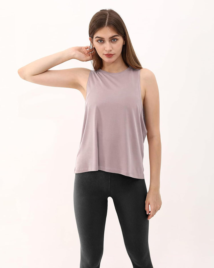 Ultra soft muscle tank featured in a cropped silhouette with dropped armholes.