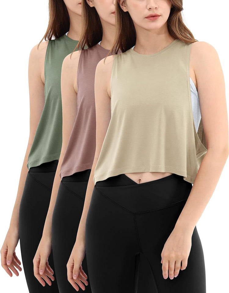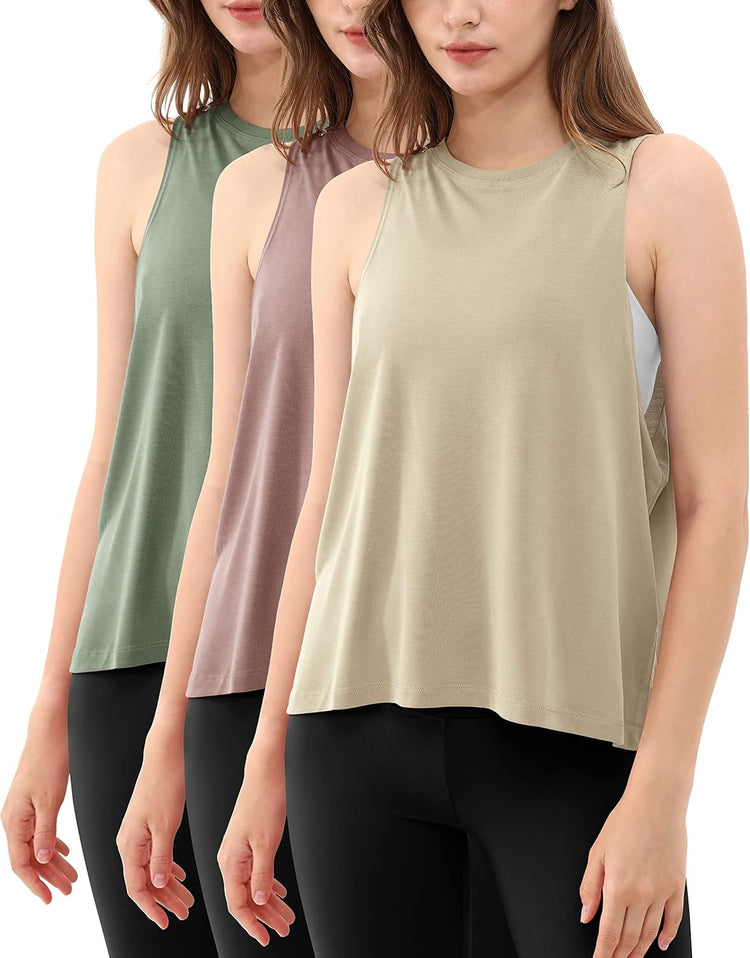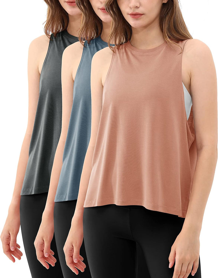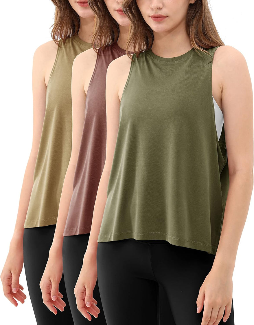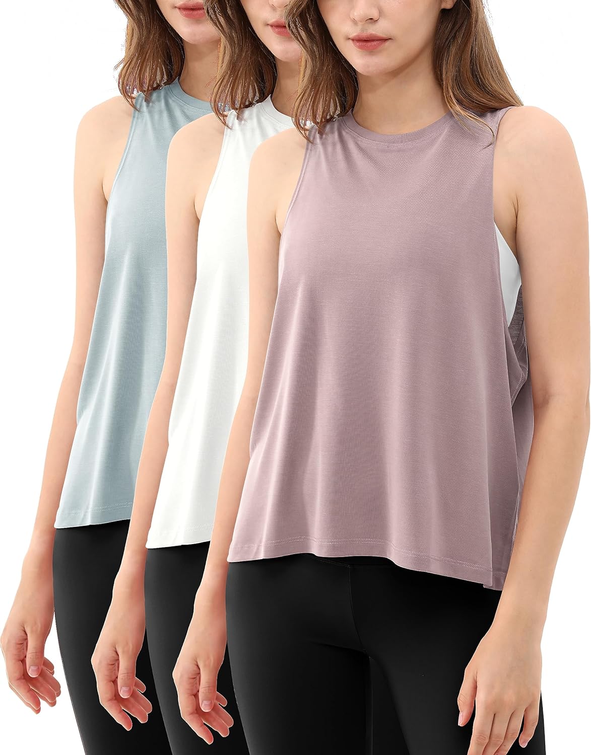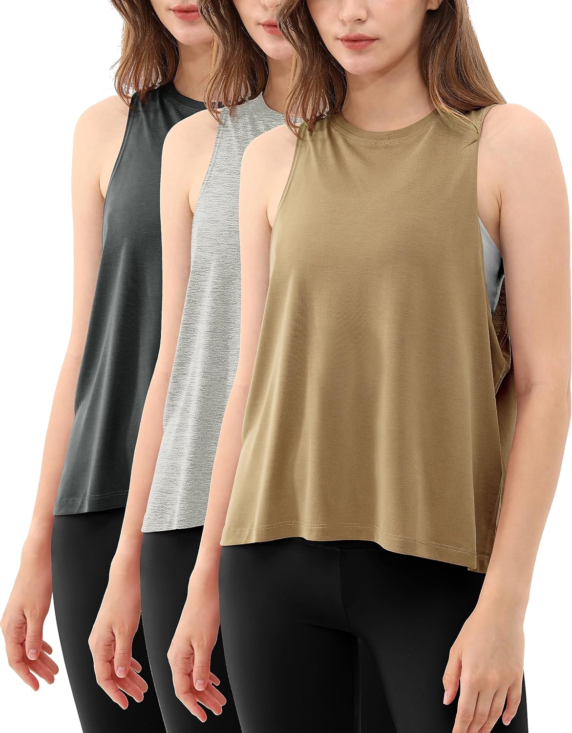 ODODOS 3-Pack Loose Tank Tops for Women Sleeveless Gym Athletic Workout Tops Yoga Shirts