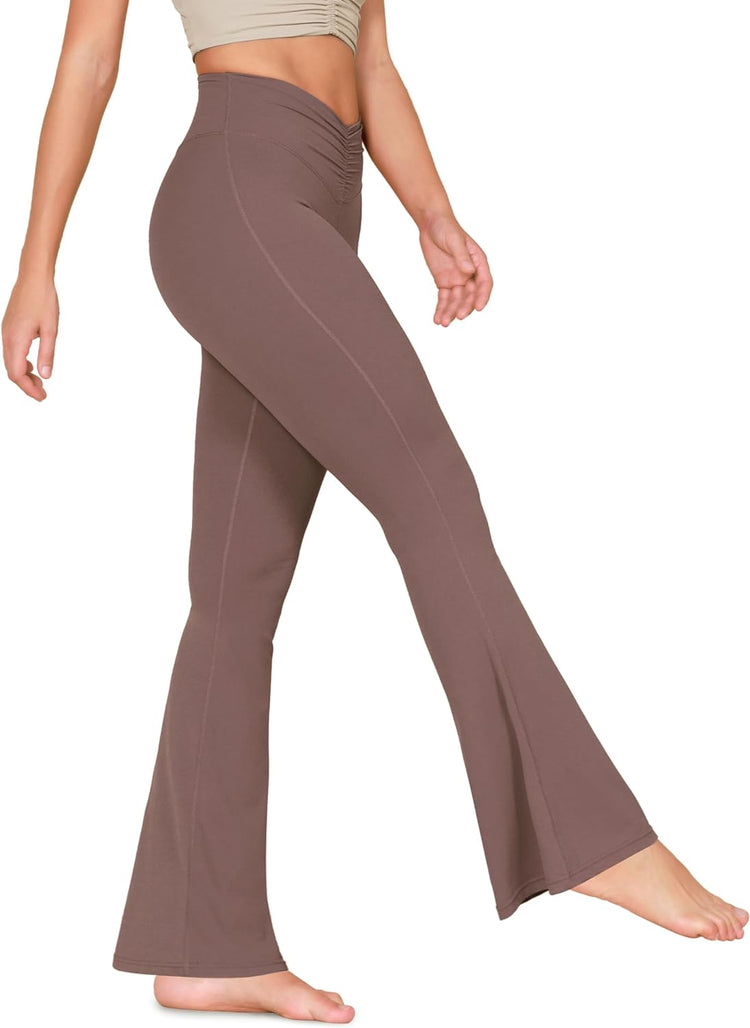 ODODOS ODCLOUD High Waist Ruched Flare Pants for Women Buttery Soft Crossover Bootleg Yoga Pants-30/32 Inseam