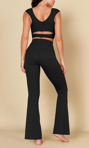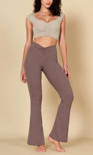 Let comfort increase your confidence. Slide on these high wasited ruched flared pants in the morning to be ready for a full day. Whether you're ready to yoga or lounge around, these buttery soft ruched flared pants is the key to comfort.