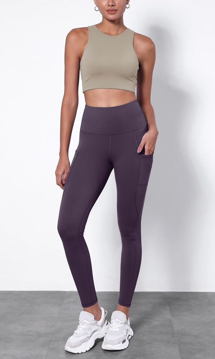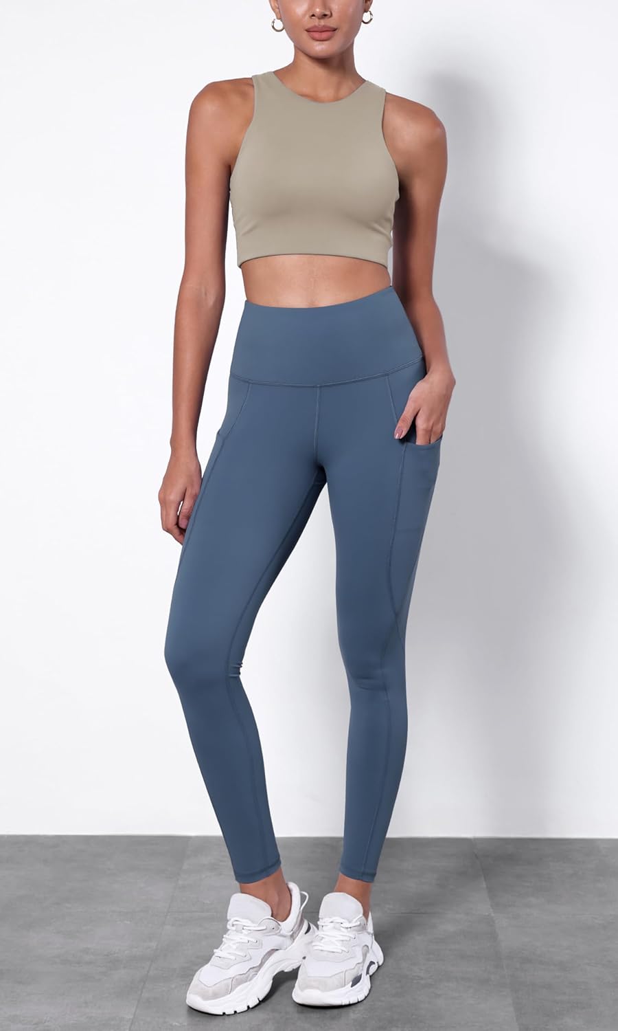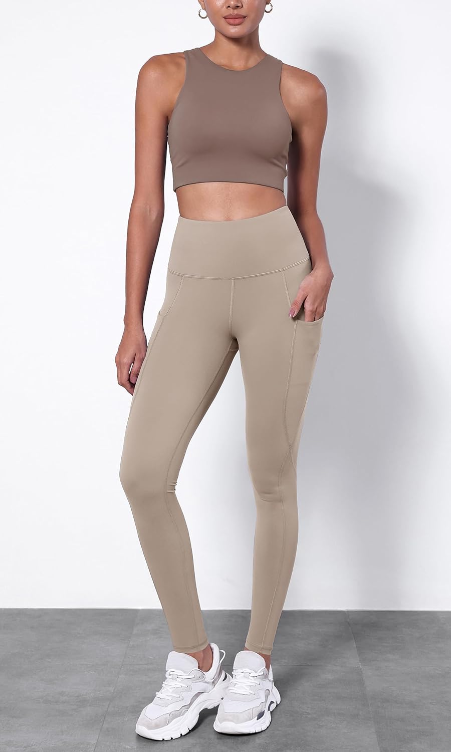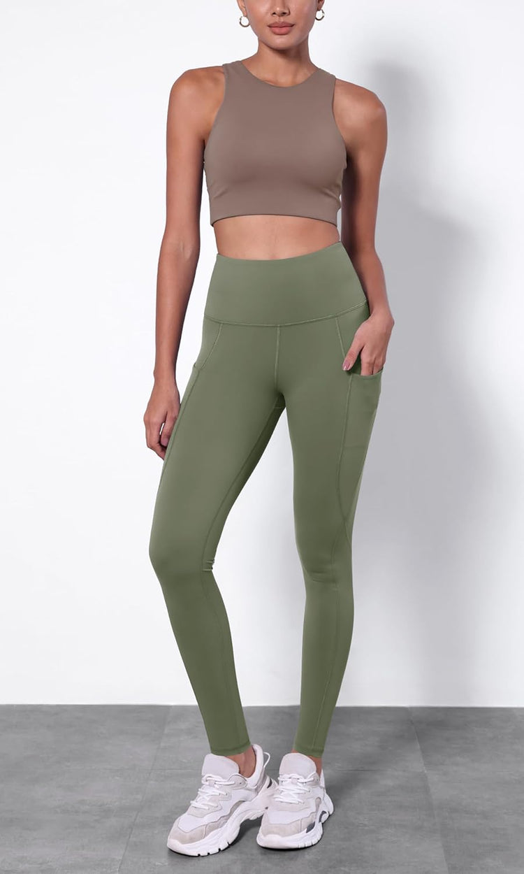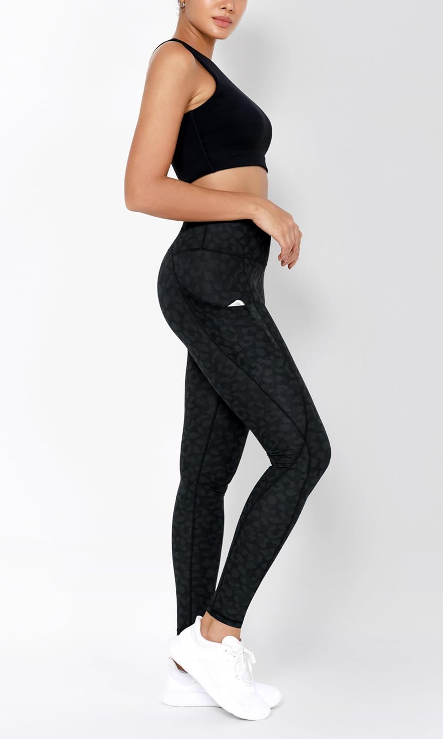 ODODOS Women's High Waisted Pattern Pocket Full-Length Yoga Leggings