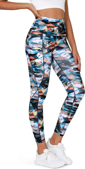 ODODOS Women's High Waisted Yoga Leggings with Pockets,Tummy Control Non See Through Workout Athletic Running Yoga Pants, Fine Art-25"inseam, L