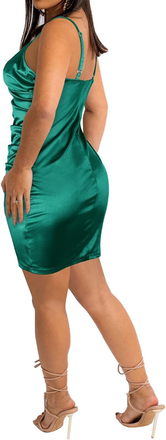 OLUOLIN Women's Satin Sleeveless Spaghetti Strap Mini Dress Ruched Bodycon Cocktail Party Dresses