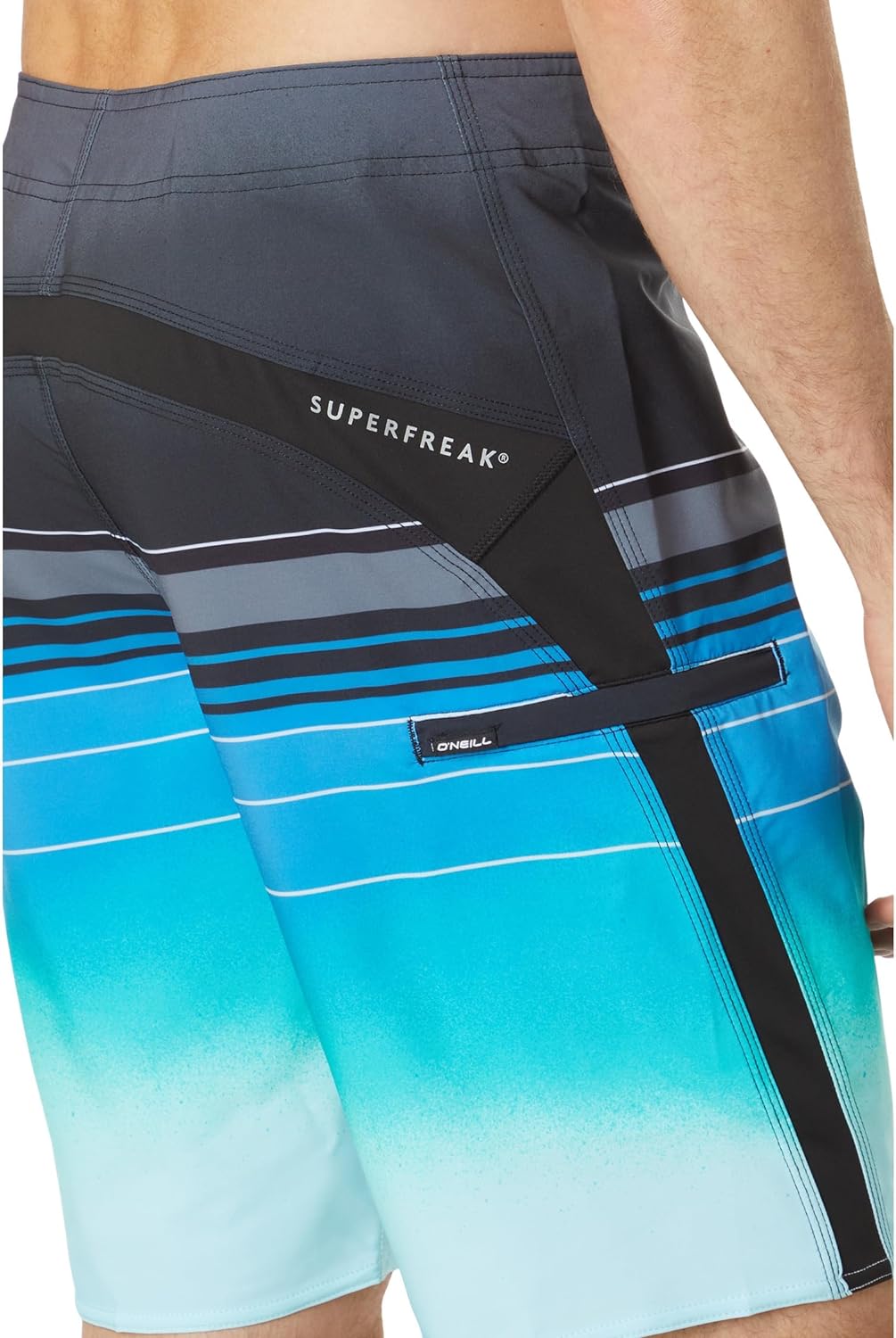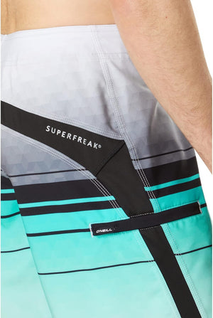 Superfreak is the original stretch board short that uses side stretch panels for added structure and flexibility. This O'Neill mens bathing suit features Hyperdry DWR and anti-rash Hyperthread technology to help improve drying time and maximize comfort. This product is made with recycled materials.